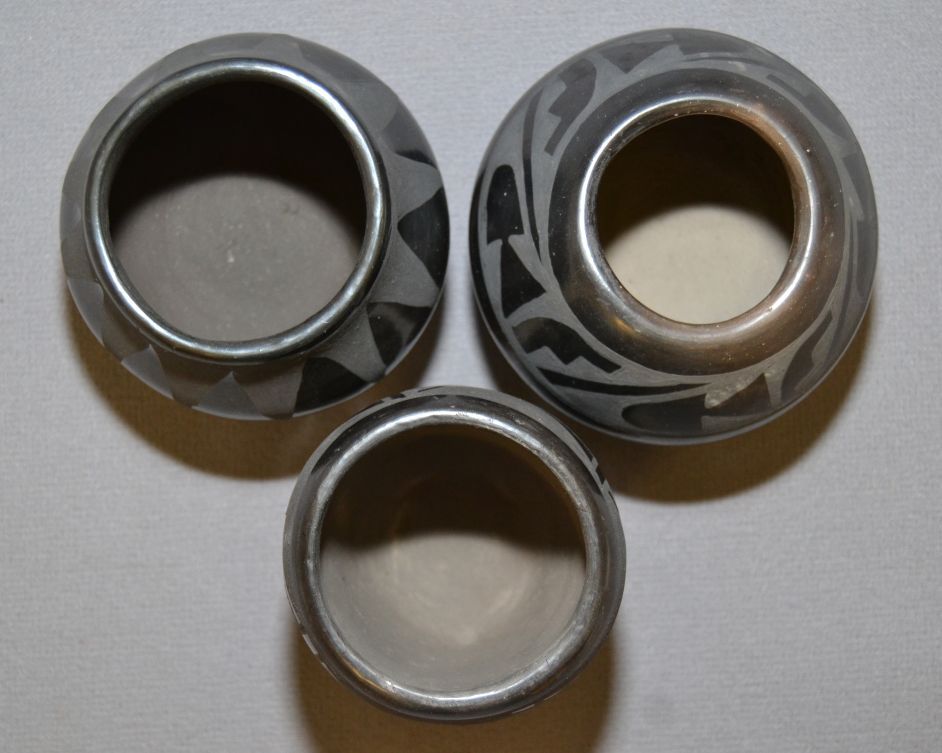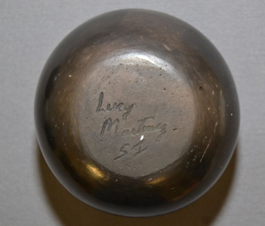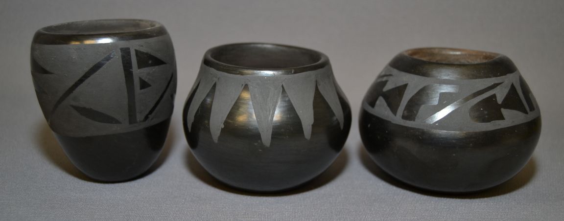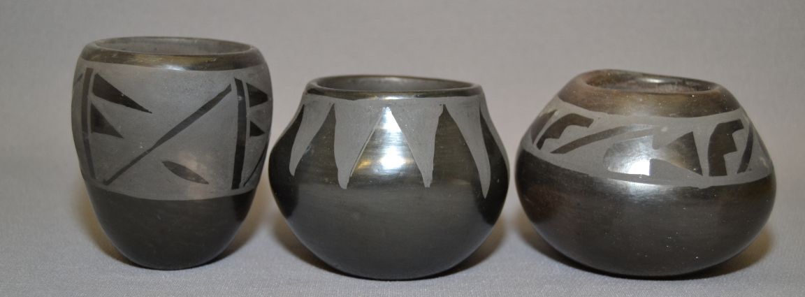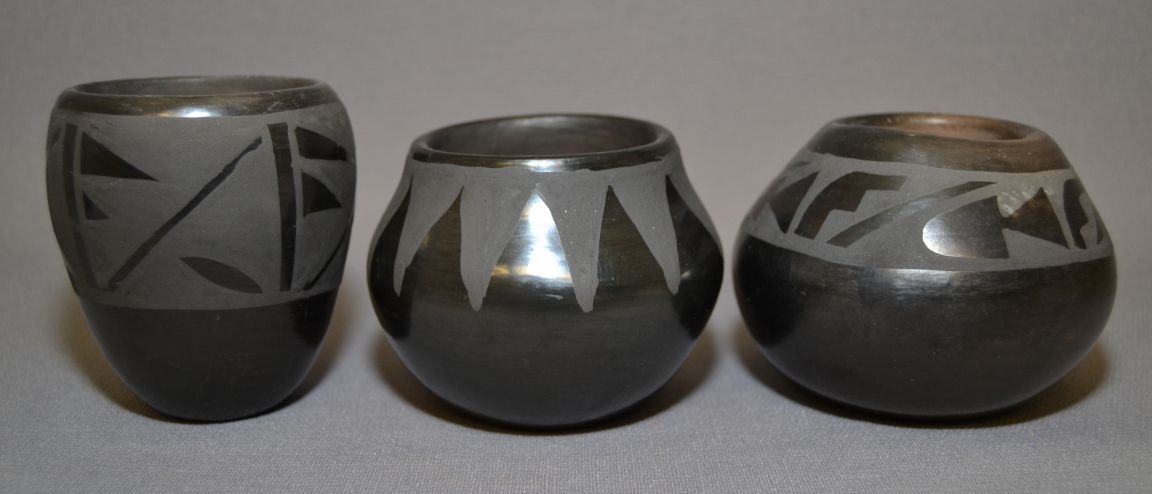 1980s 90s matte on black San Ildefonso 2.75"x4" signed Lucy Martinez vase signed Marie 3.5"x2.75" bowl 3"x3.5"
