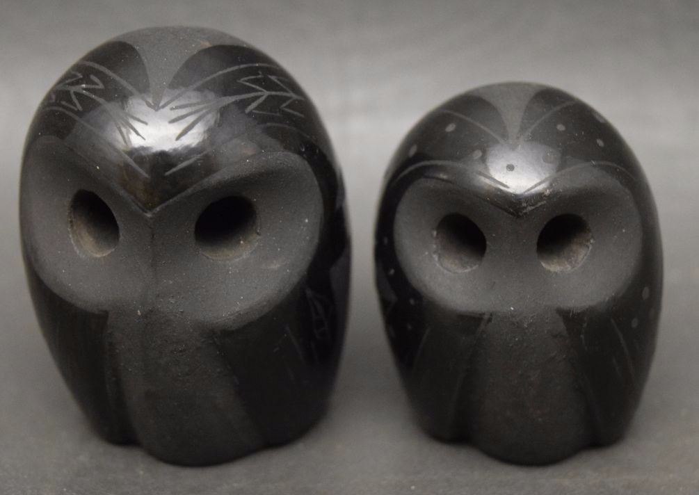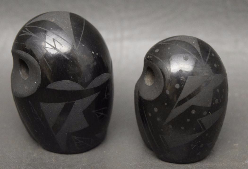 TWO SANTA CLARA POTTERY OWLS (MERTON)
