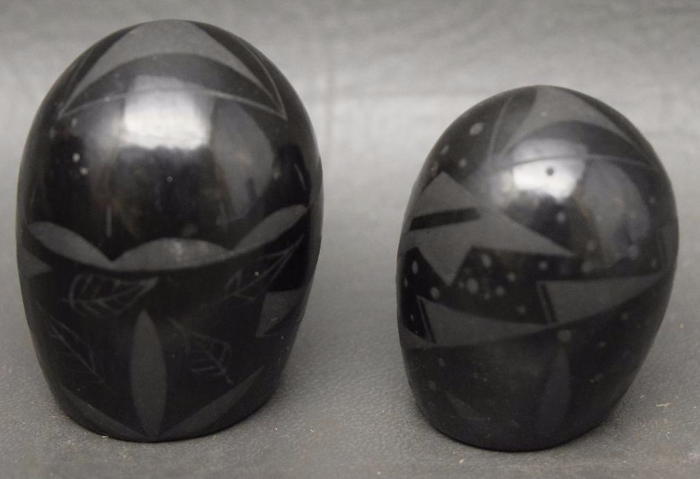 1990's matt on black painted design signed Merton 2'' and 2.5'' tall