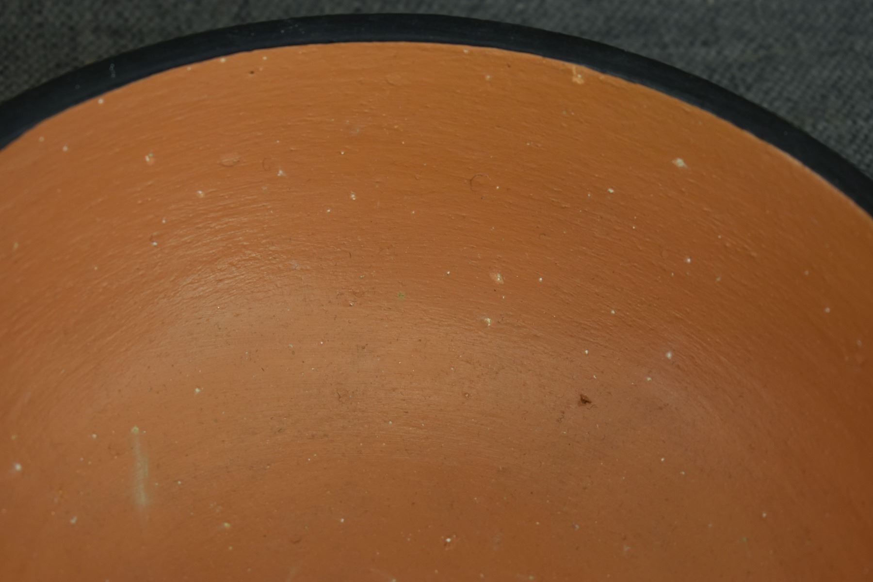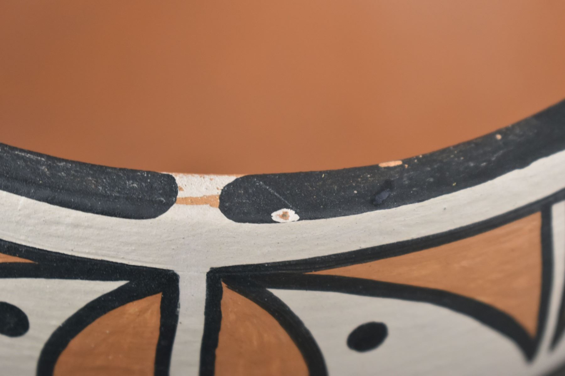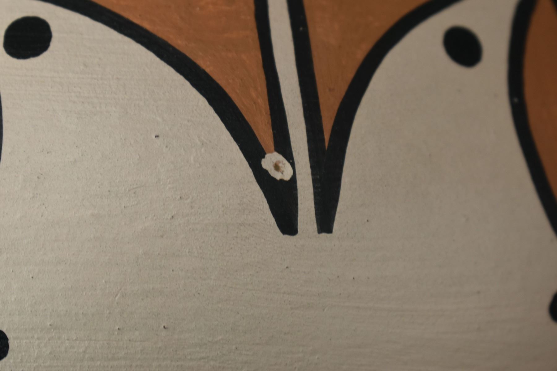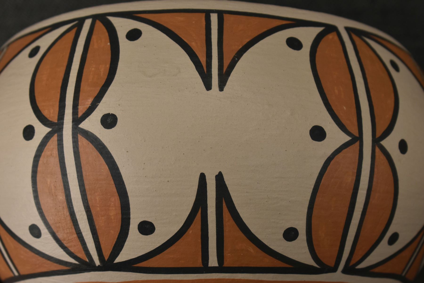 1990's Santo Domingo, hand coiled with polychrome painted design by Vicky Calabaza. Largest 5.75" x 9" both have pitting