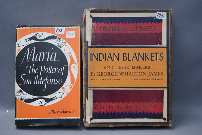 1961, 1937 One titled "Maria the pottery of San Ildefonso" hand signed Maria Poveka Other titled Indian blankets by George Worton James, largest 11" X 8"