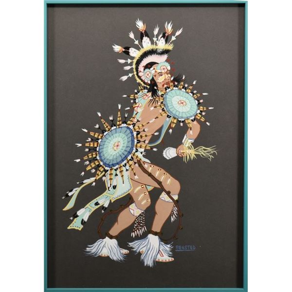 1970's Plains. Original on paper depicting fancy dancer. Signed Bensted. 16'' x 11'' frame size 18'' x 13''