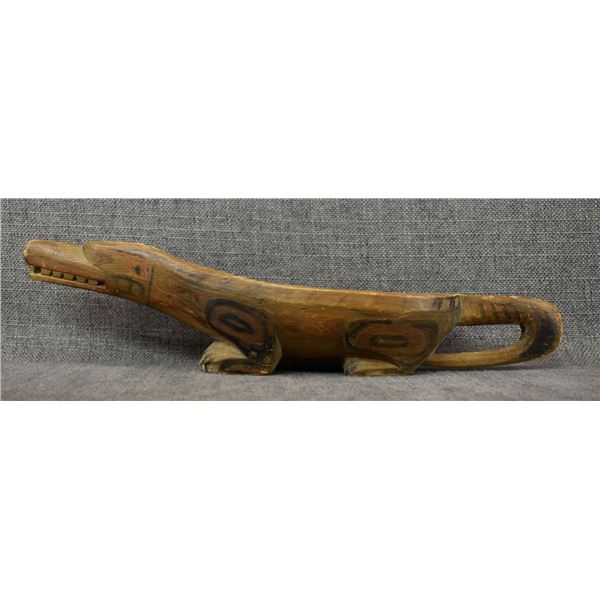 1950's Tlingit, hand carved cedar with painted animal effigy design 3.5" x 14.5" x 3.5"