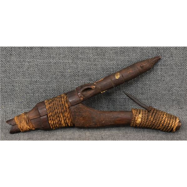 1920's Haida, hand made carved wood with metal pin and wrapped design 4.75" x 10.5" x 1.5"