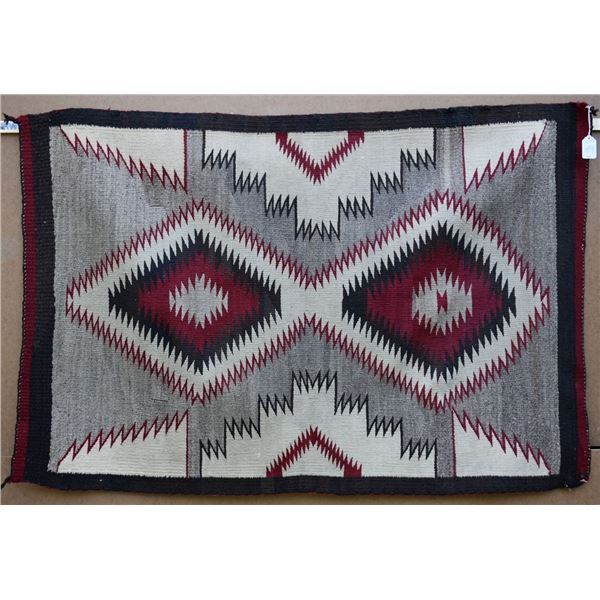 1920-30's Navajo, hand woven serrated diamond design 42" x 29", is dirty