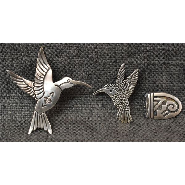1990's Navajo, sterling silver with stamped design hummingbirds signed RM and A Lee, largest 2.25" x 2.25". 1990's Hopi, sterling ...