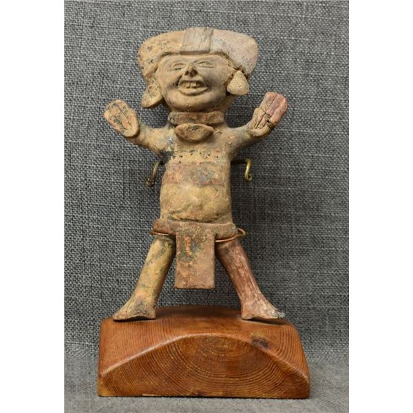 Prehistoric Mayan, hand made pottery figure 8" x 5" has restoration and includes stand