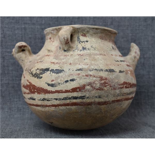 prehistoric, pre-Columbian, hand made with raised and painted design 3" x 4.25" as found condition
