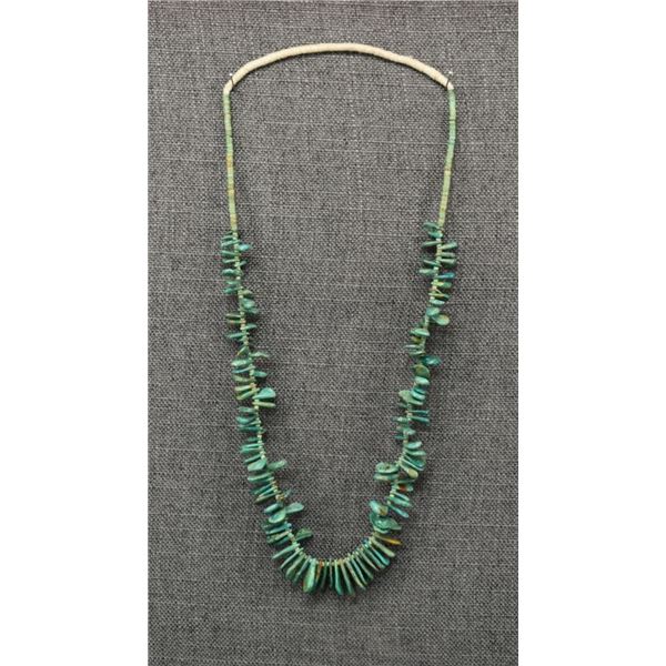 1960's Navajo. Single strand turquoise tab necklace 30'' long