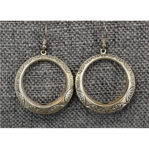 1980's Navajo. Sterling silver earrings, 1.5'' dia. Total weight 15 grams
