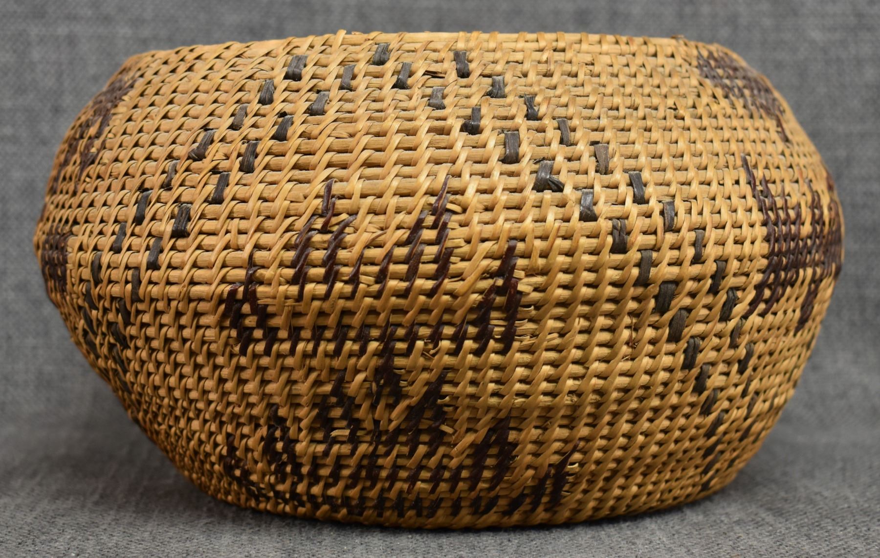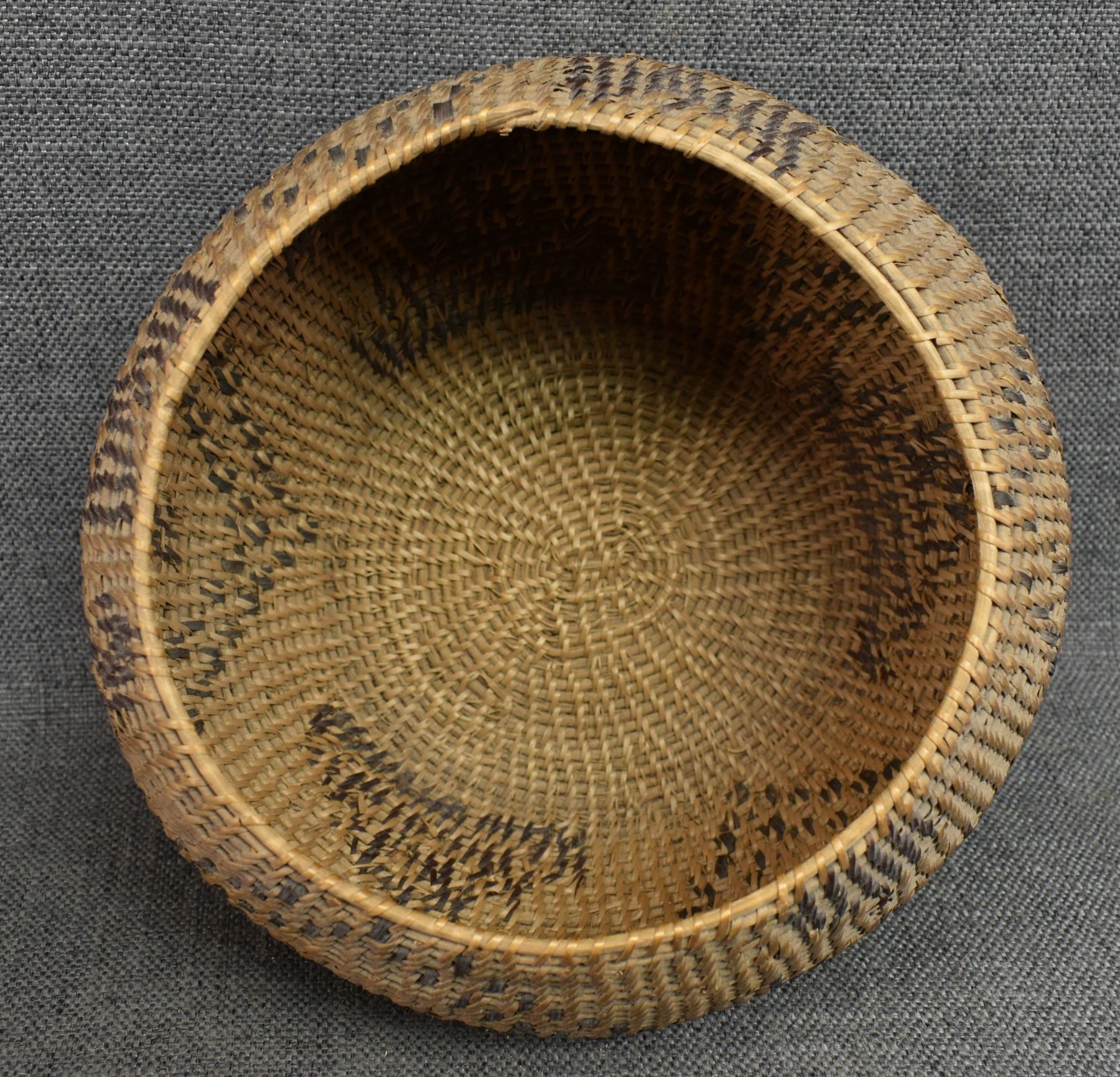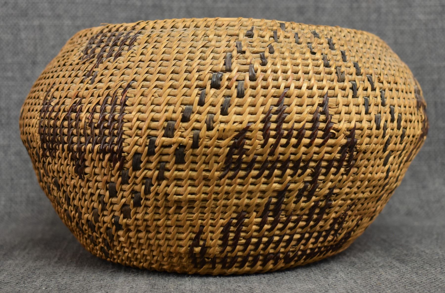 1920's Washoe. Hand woven polychrome design single rod basket. 6'' x 9''