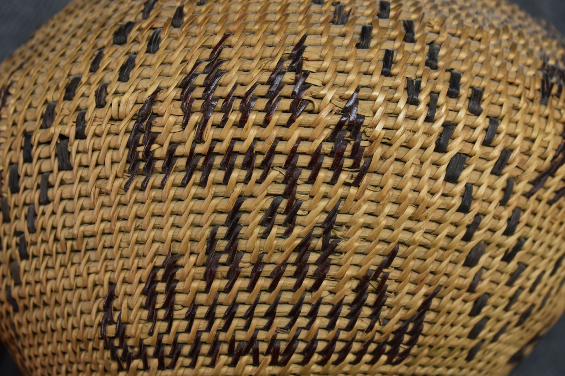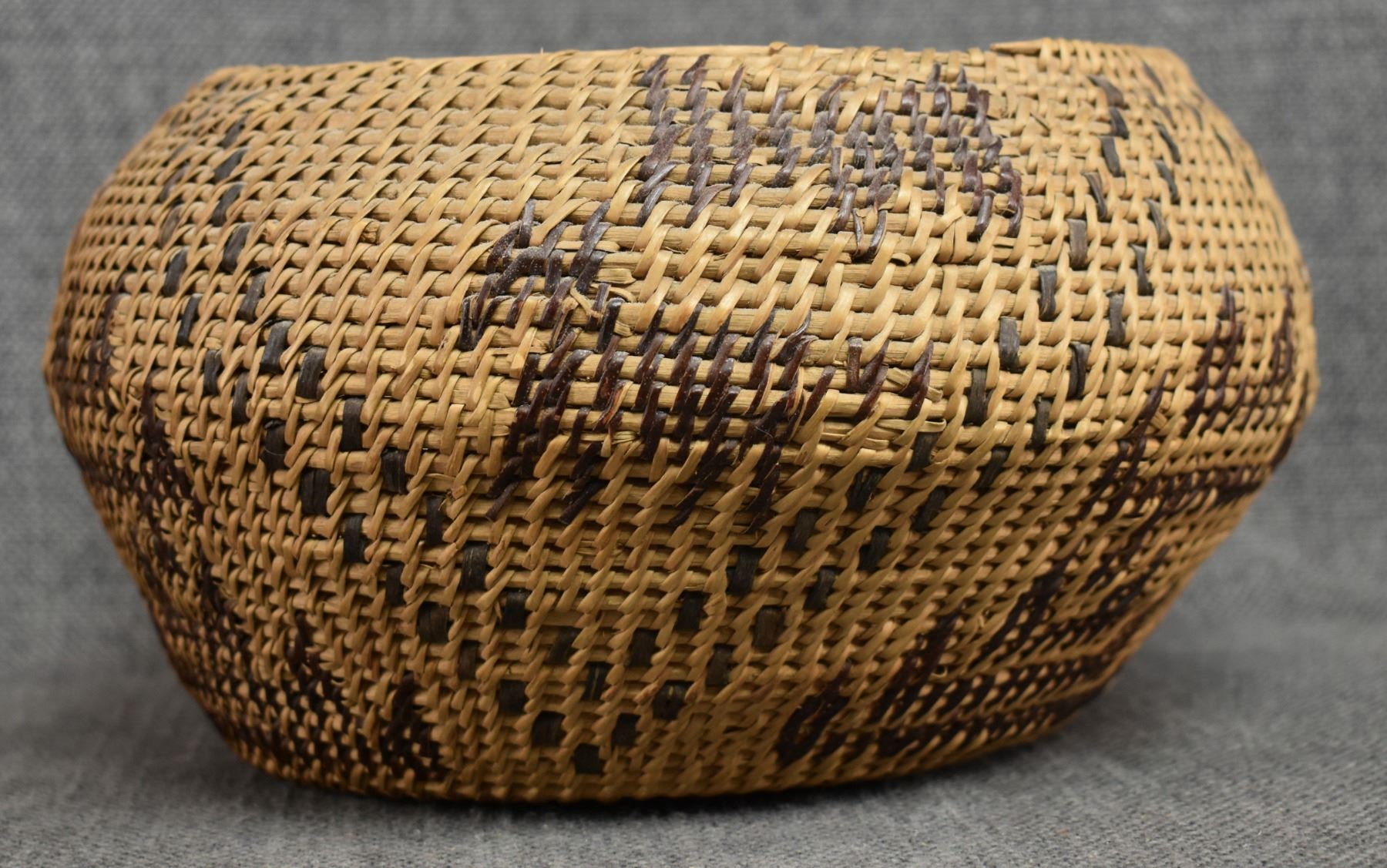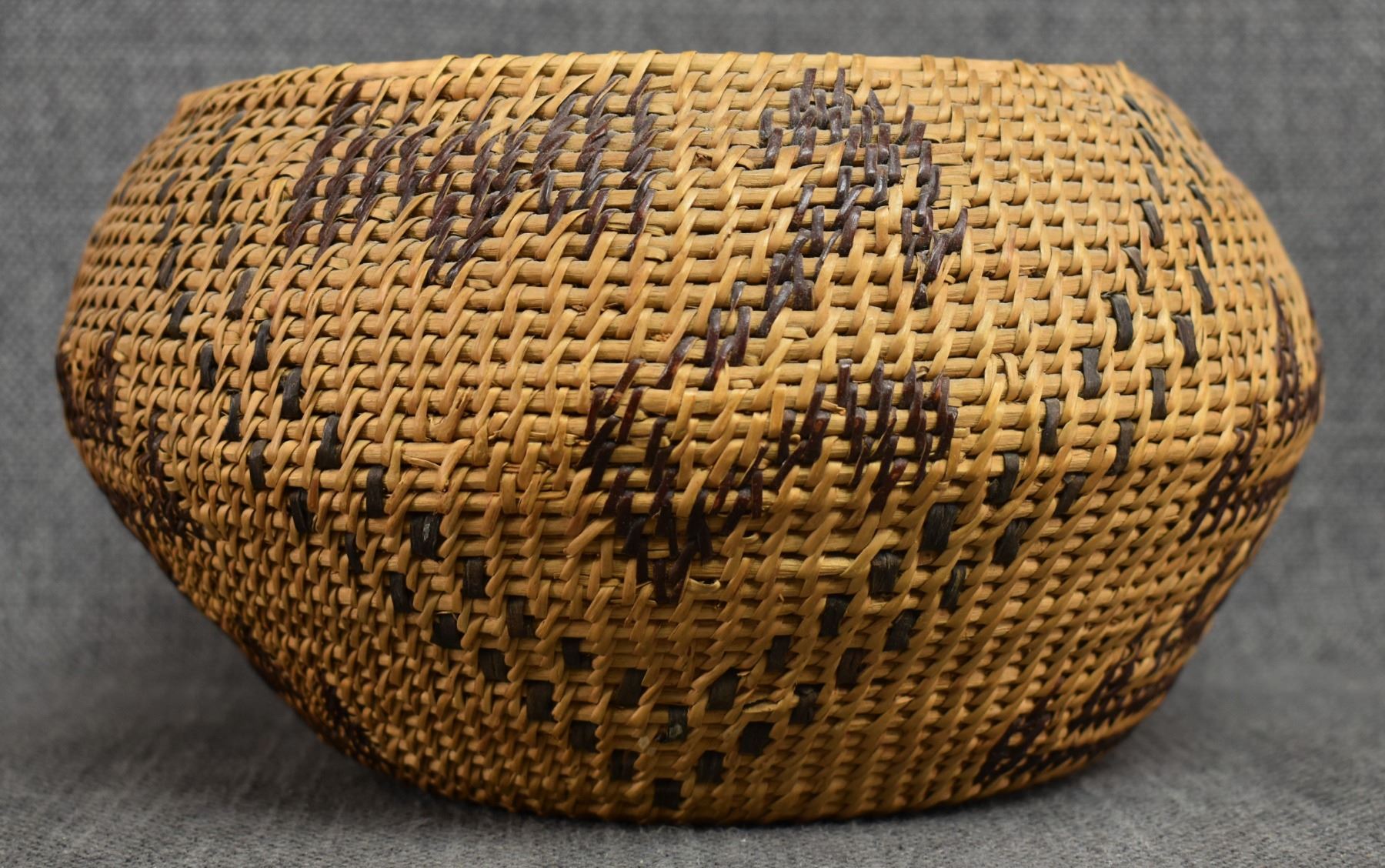 1920's Washoe. Hand woven polychrome design single rod basket. 6'' x 9''