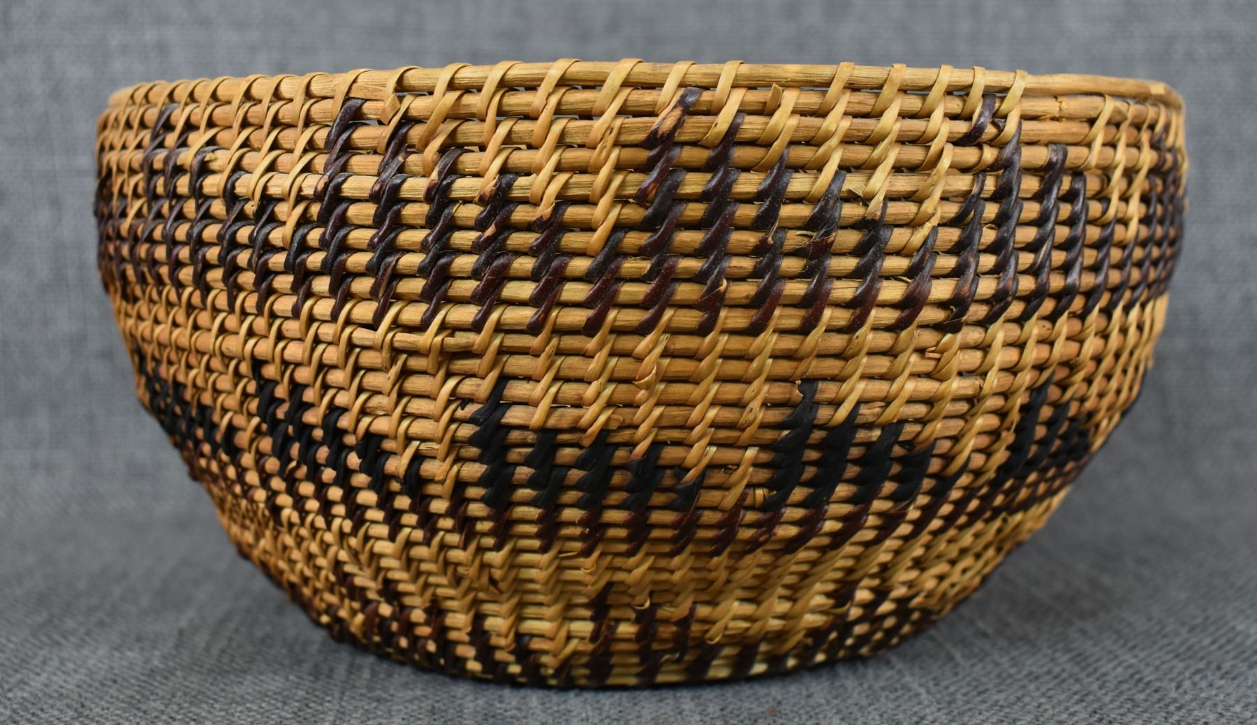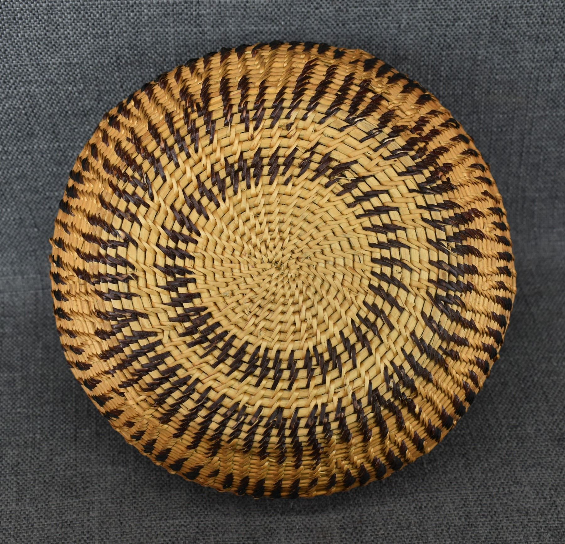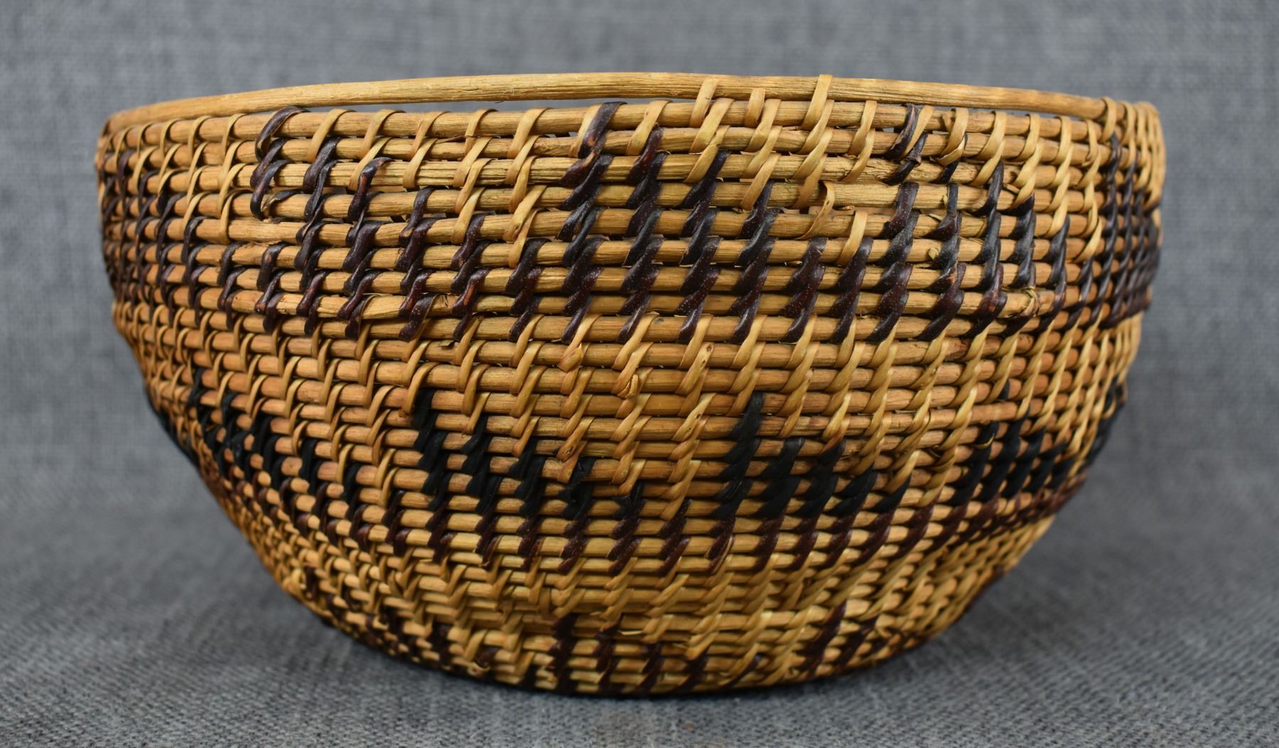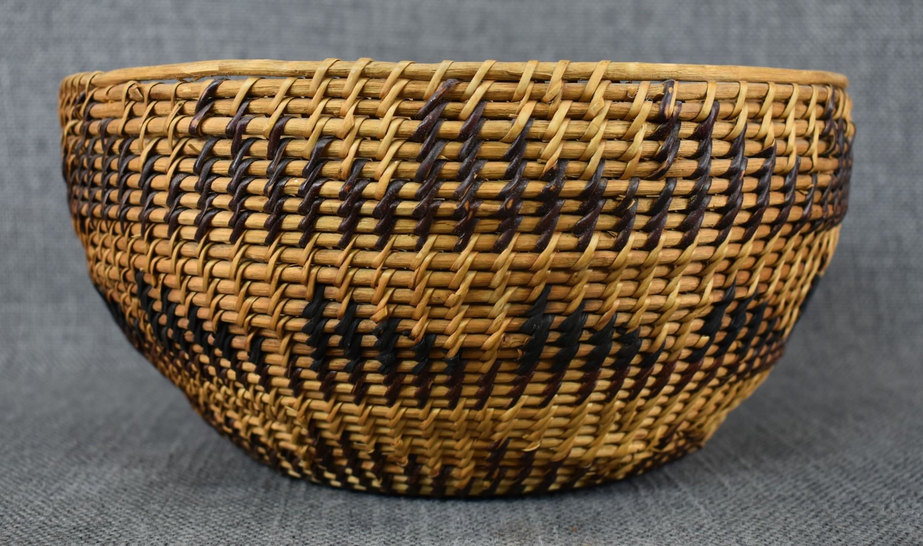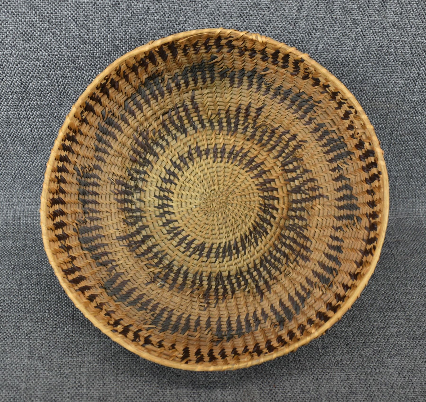 1940's Washoe. Hand woven single rod basketry bowl. 4'' x 9'' has missing stitches