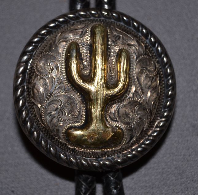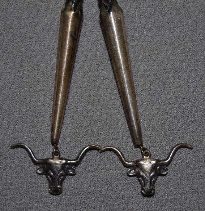1960s 70s sterling silver and 14K gold marked Edward H Bohlin 1.75" diameter with sterling silver longhorn tips