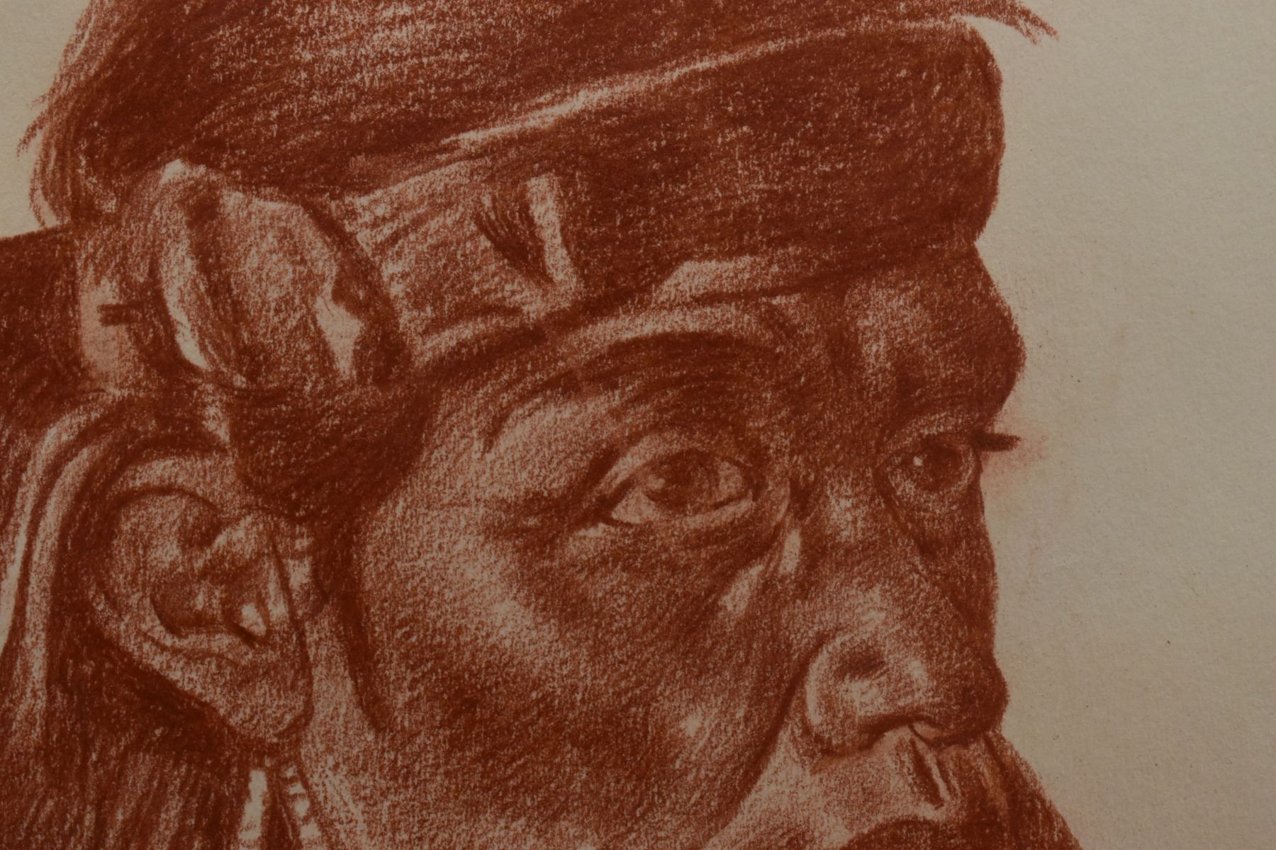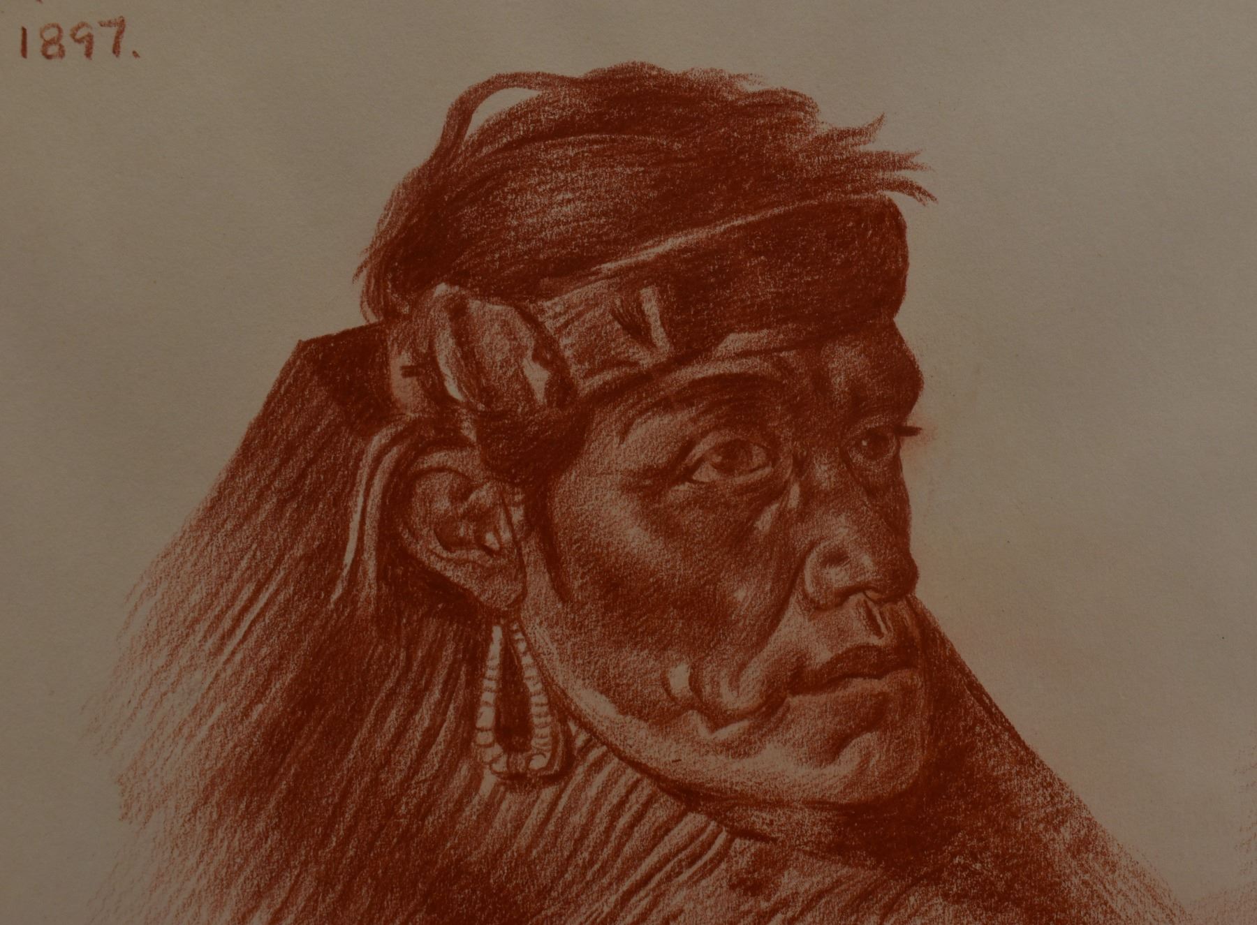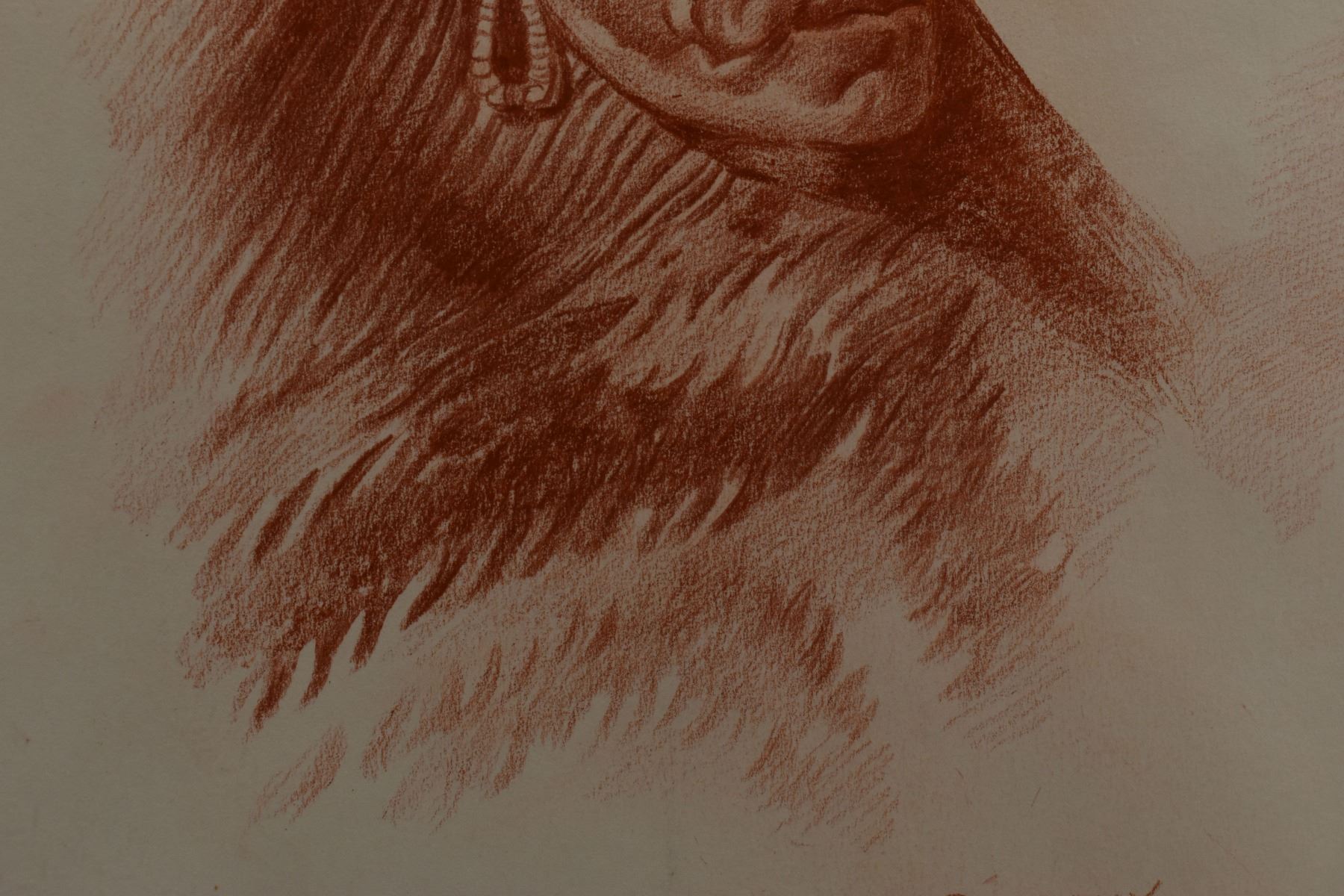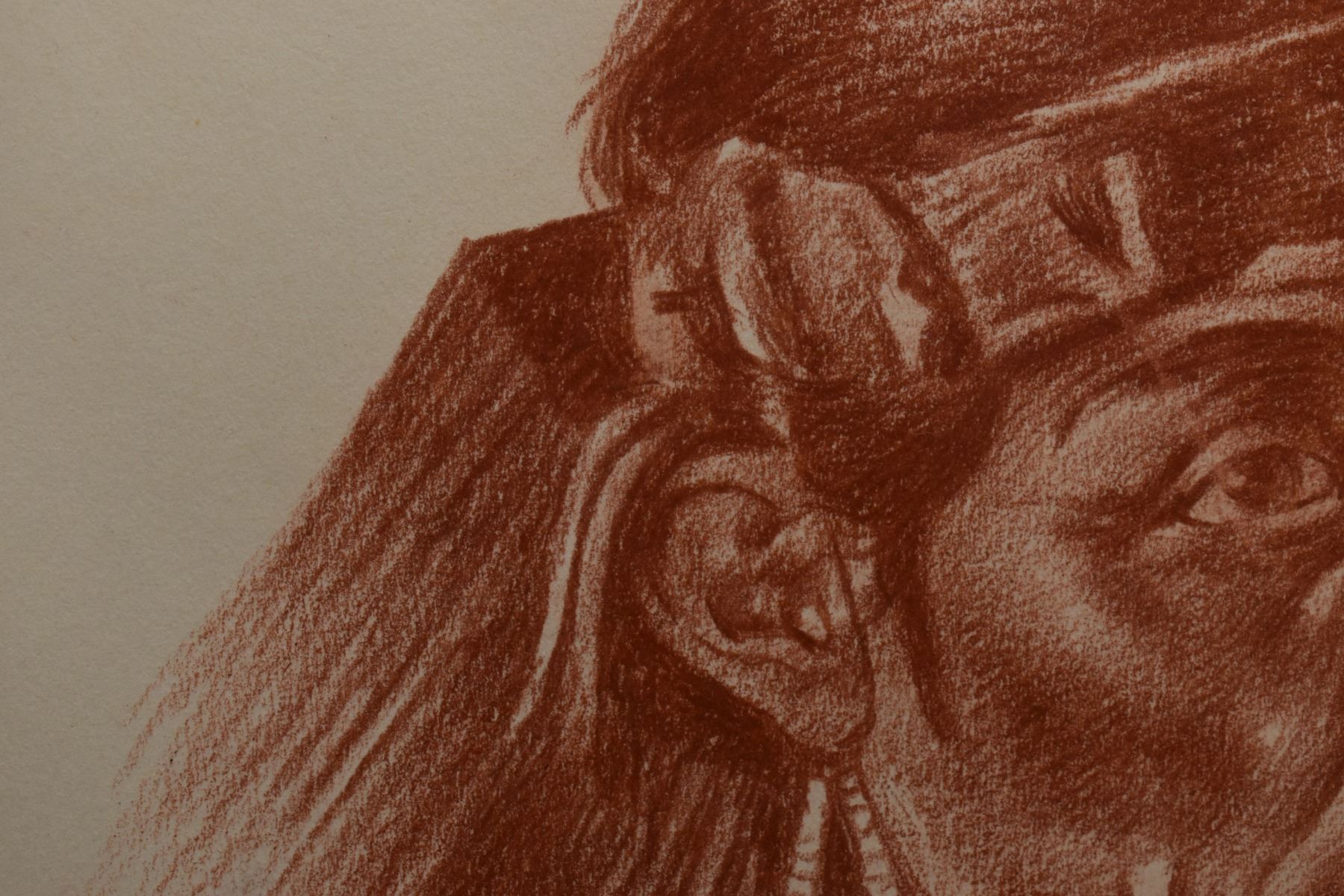 1897 western conte crayon. Original on paper depicting Navajo man titled Has-Tin-Nez signed E. A. Burbank. 13.25" x 10.25" framed to 17" x 15"