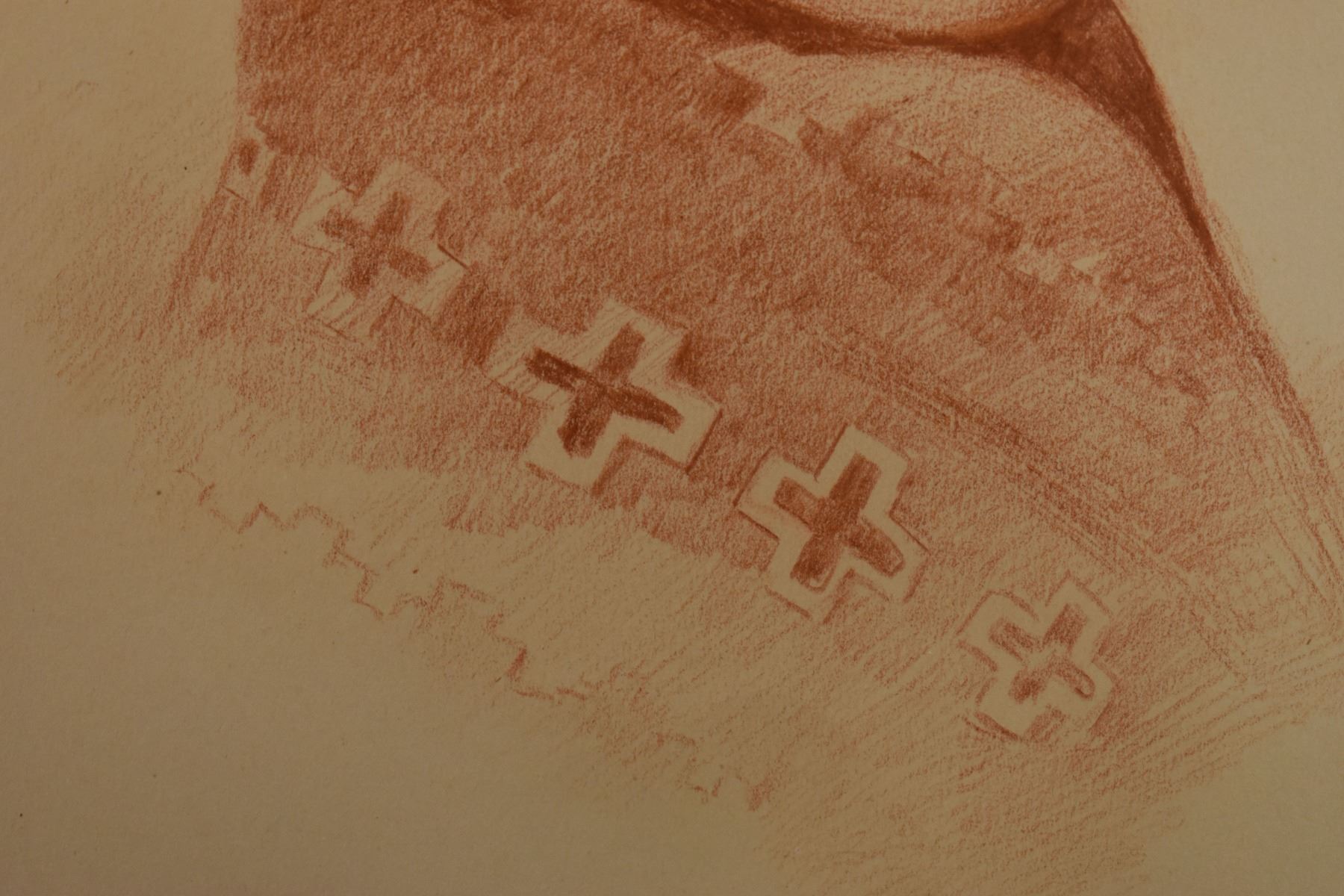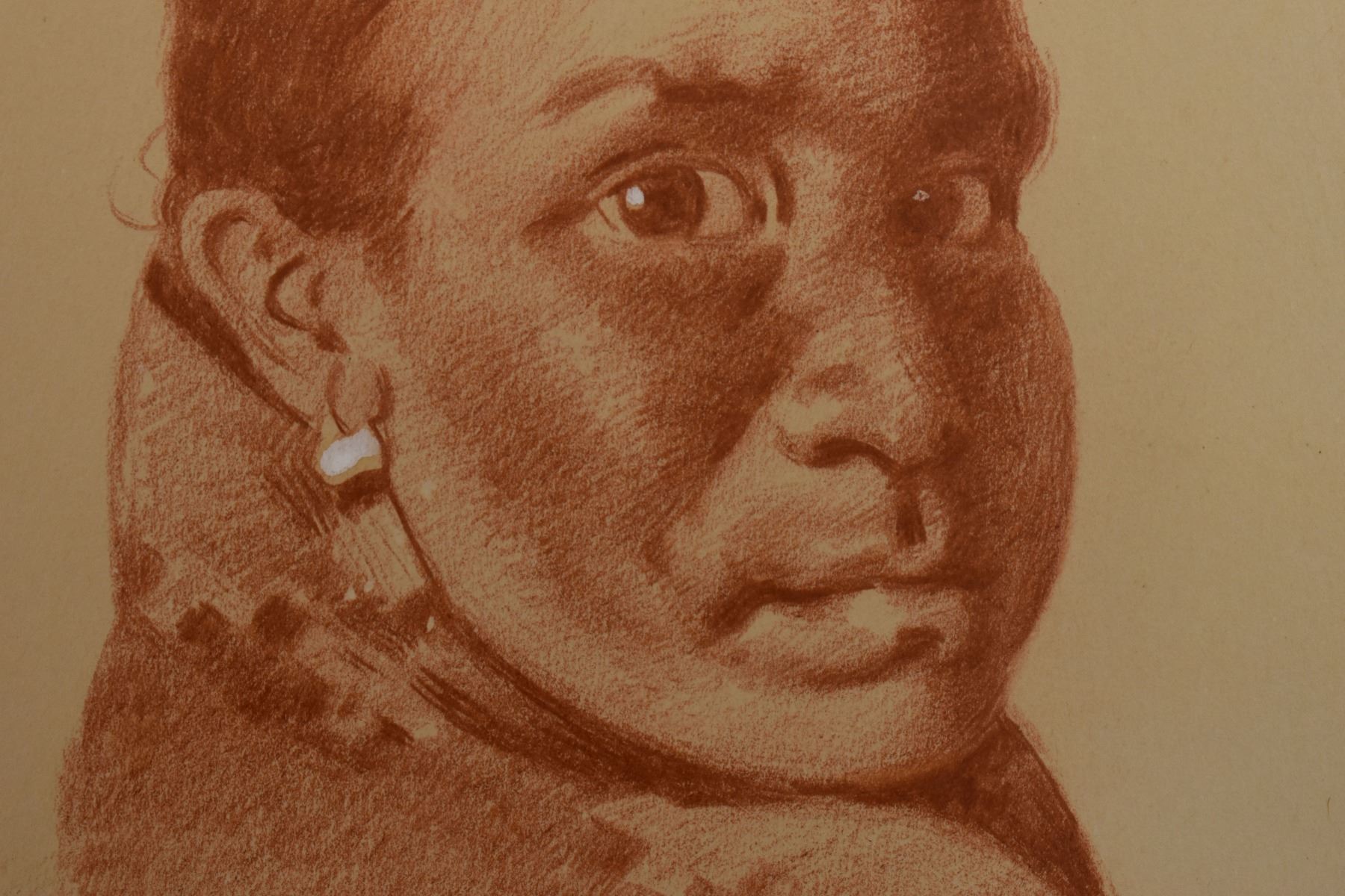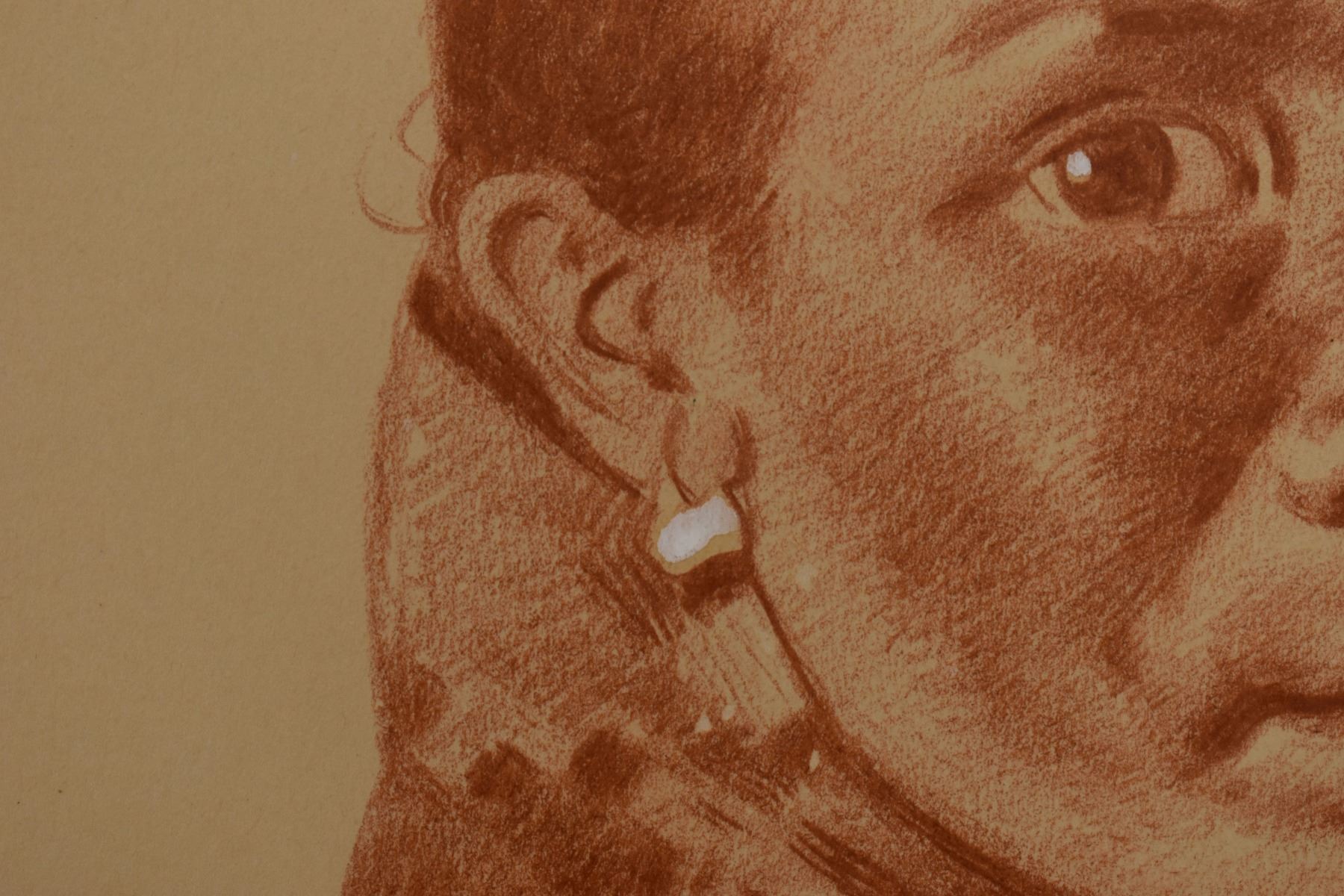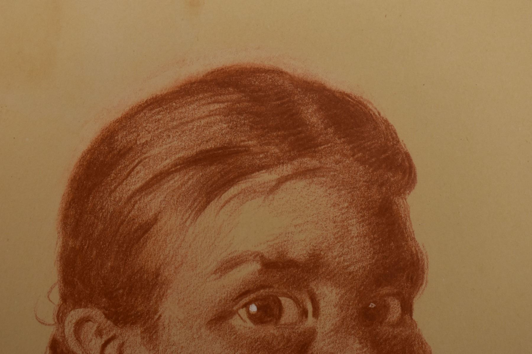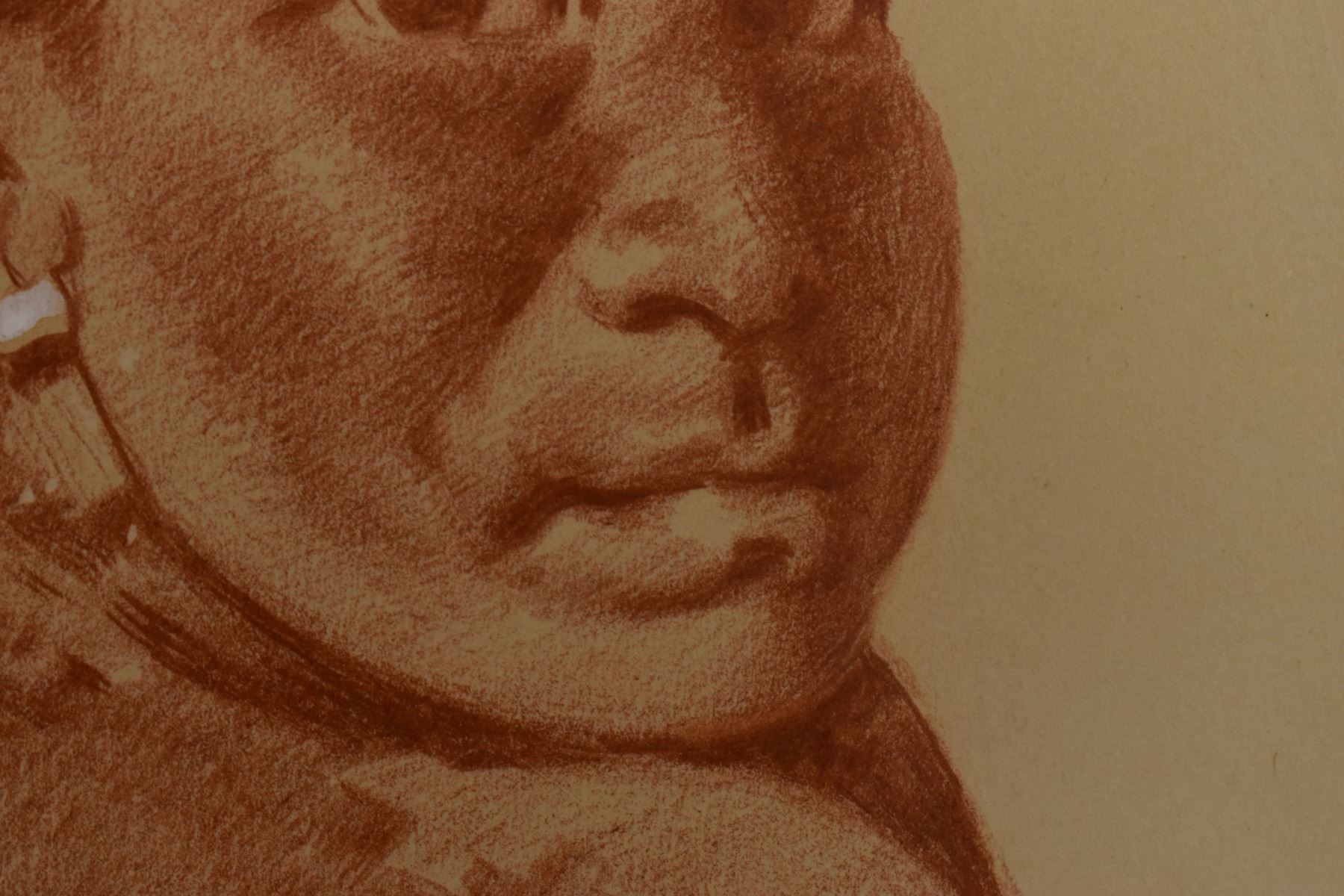 1897 western conte crayon. Original on paper depicting Navajo woman titled AH-GE -PAH, signed E. A. Burbank. 13.25" x 10.5" framed to 17" x 14"