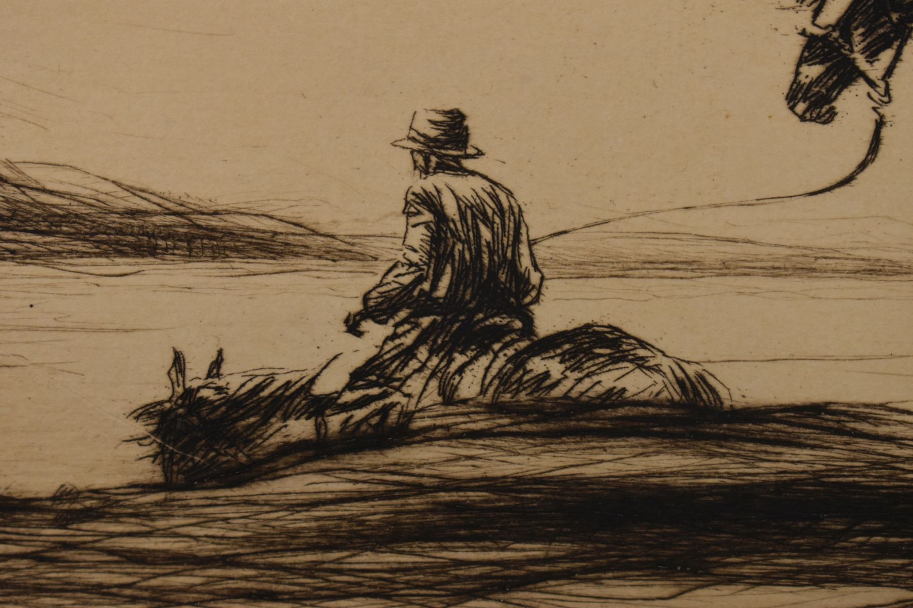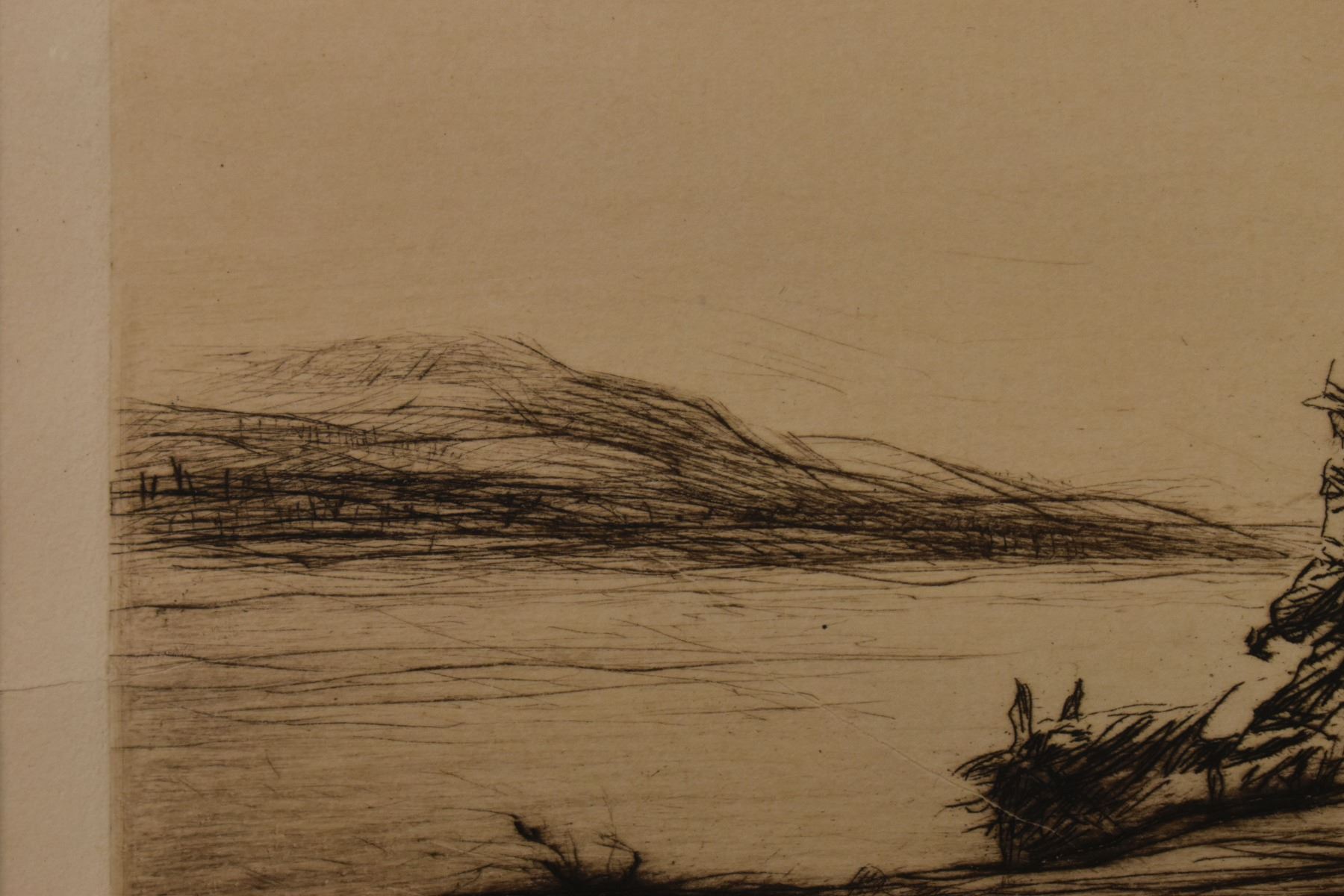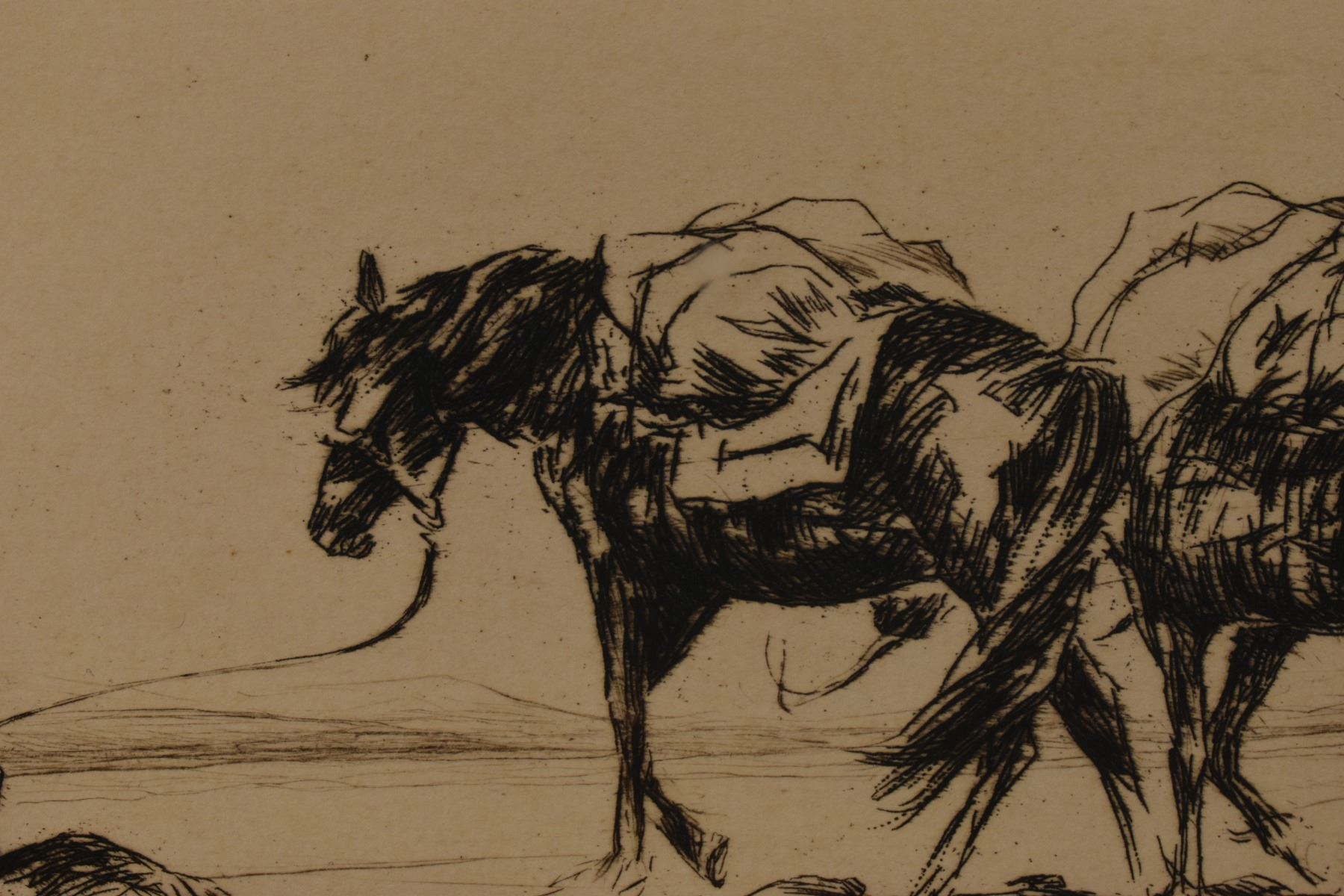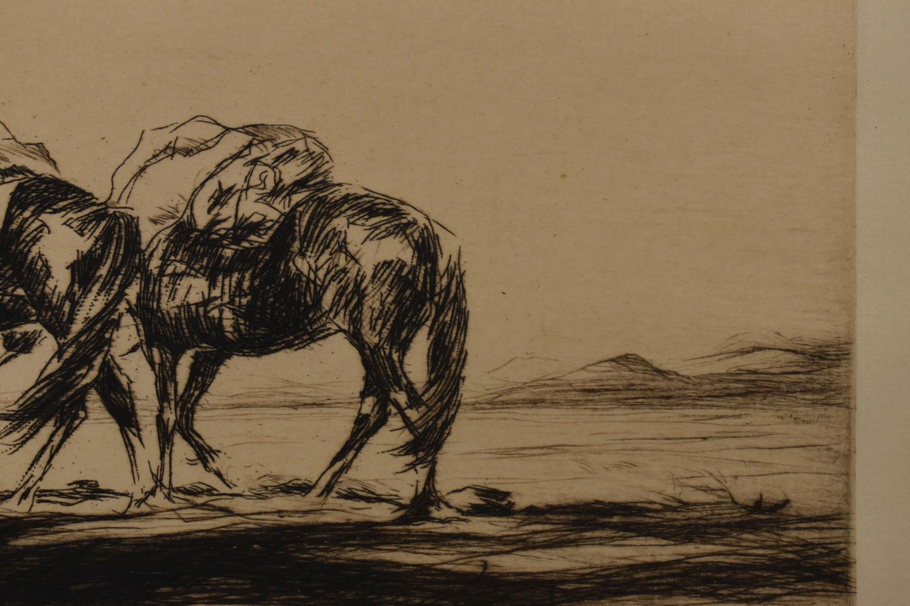 1928 etching titled "The Prospector" by Levon West number 70/100. 9" x 11.5" framed to 17.5" x 19.5"