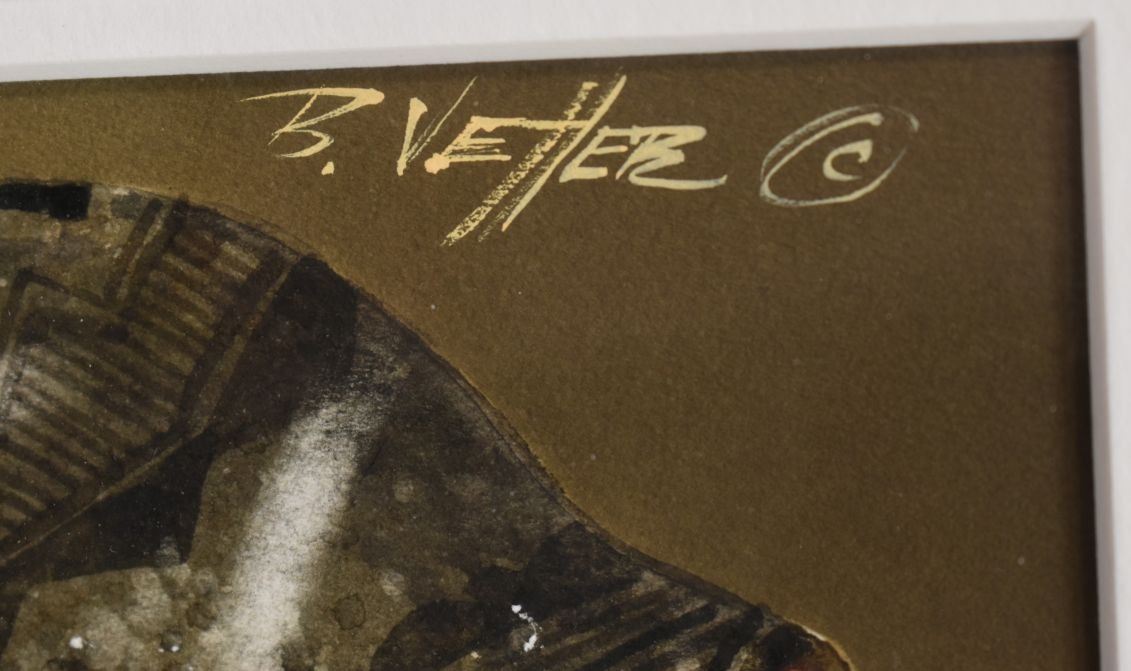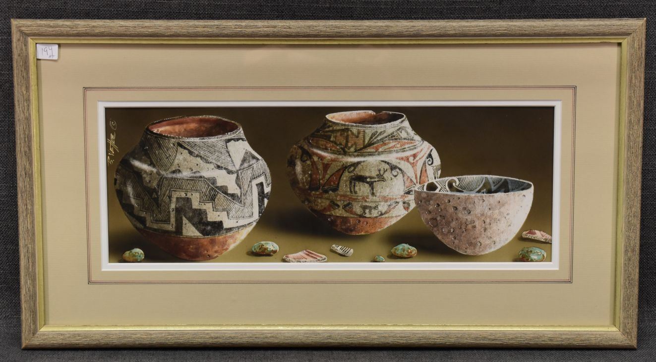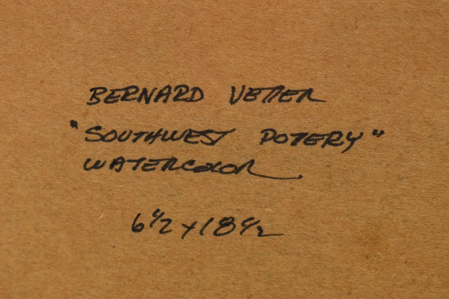 1990's Western. Original on paper depicting native pottery signed B Vetter. 7'' x 18'' frame size 14'' x 26''