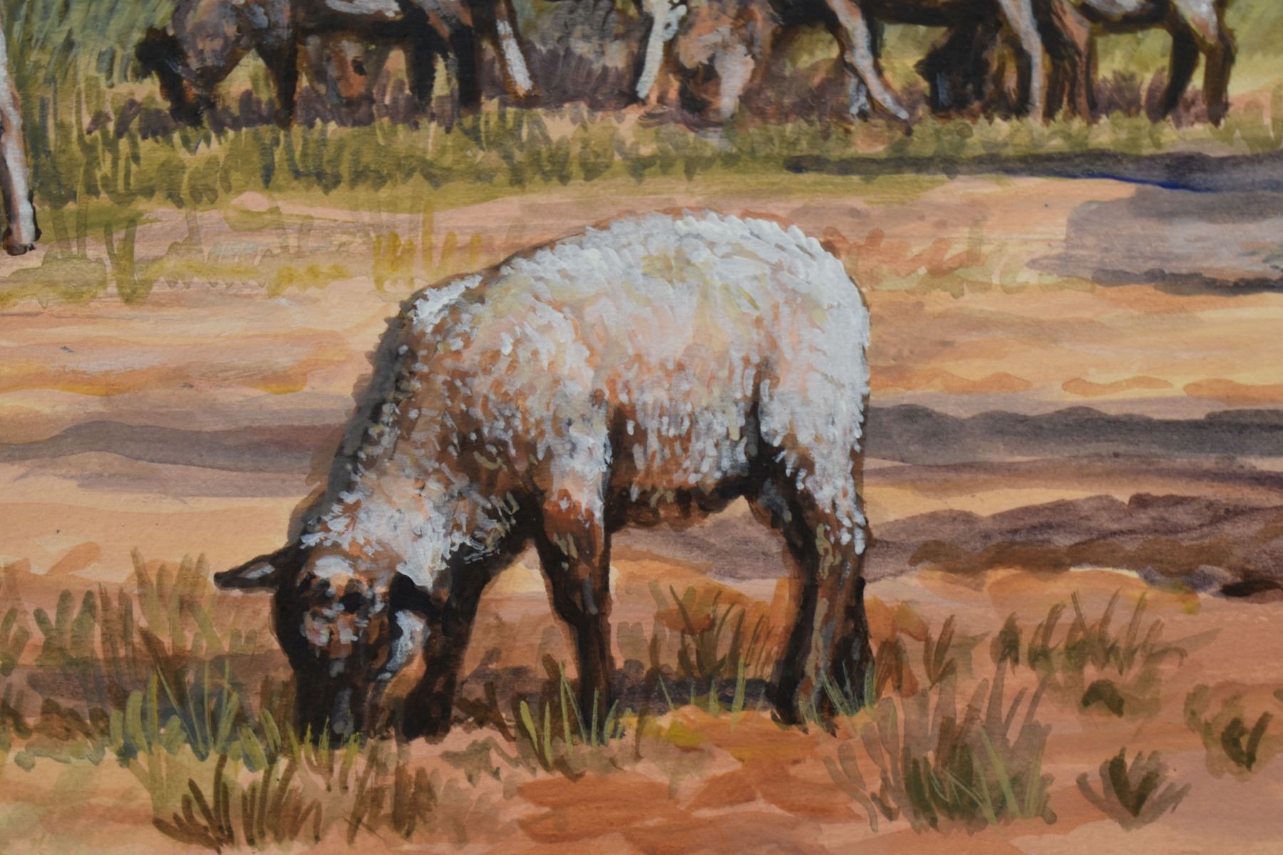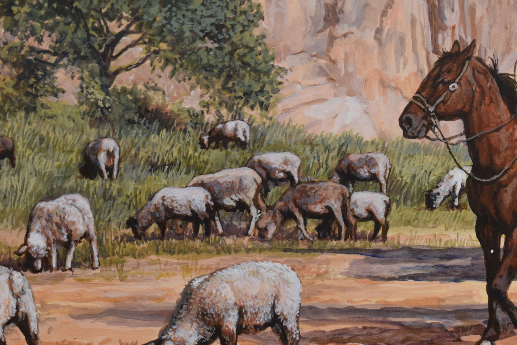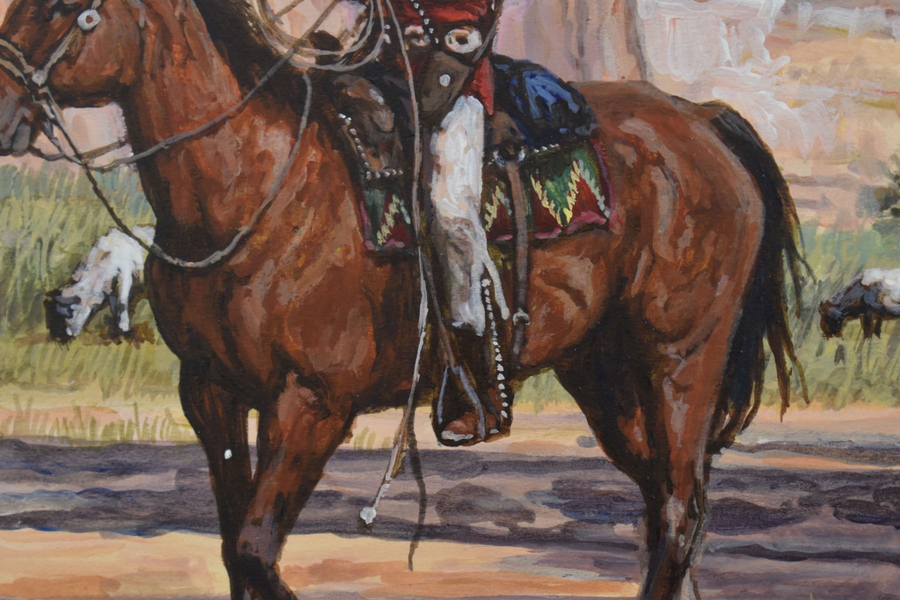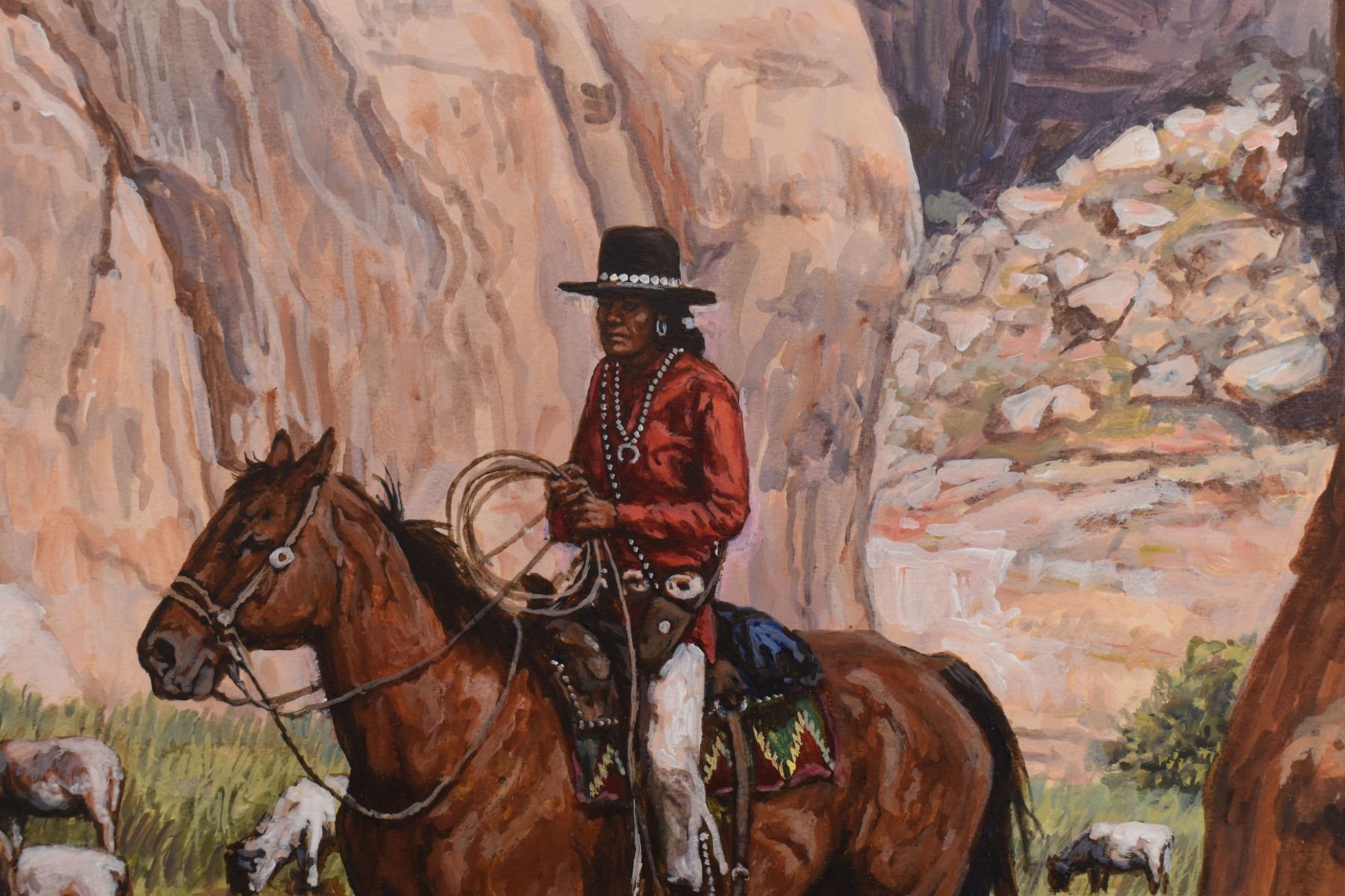 1983 western. Original on artist board depicting Navajo sheepherder, signed H. Wackermann. 14'' x 18'' frame size 21'' x 25''
