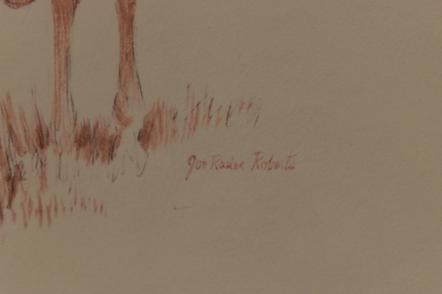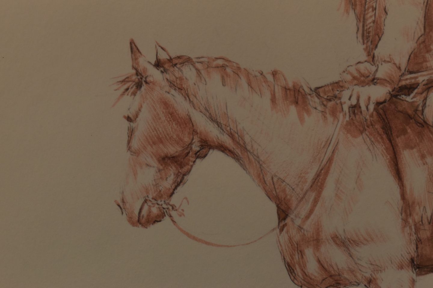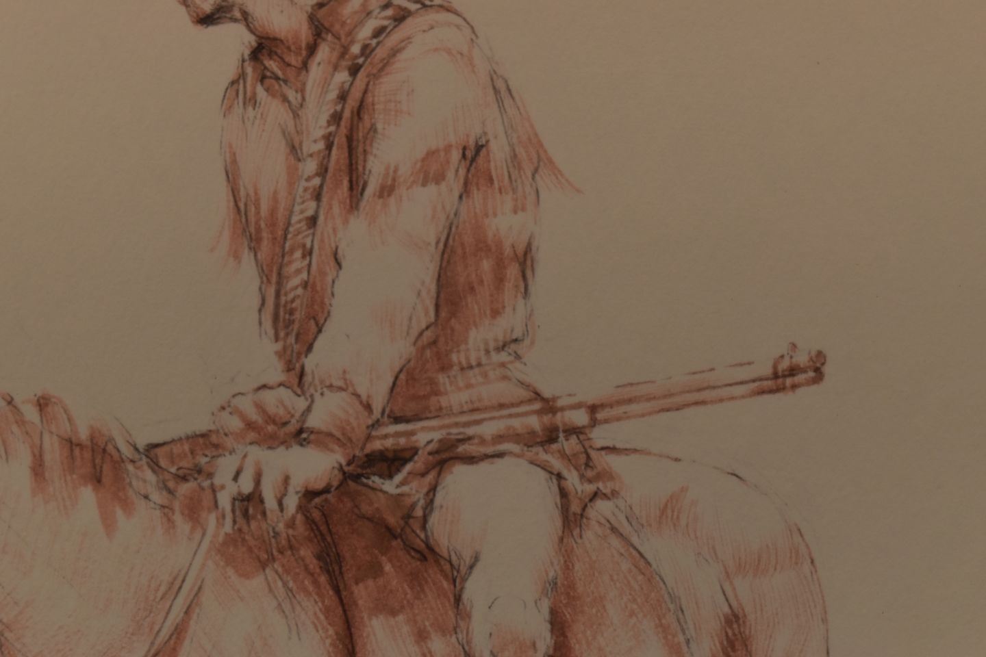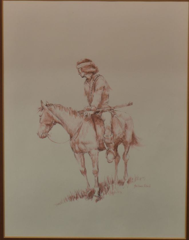 1950-60's Texas Artist, original red pencil sketch 13.5" x 10.5" matted and framed to 19" x 15"