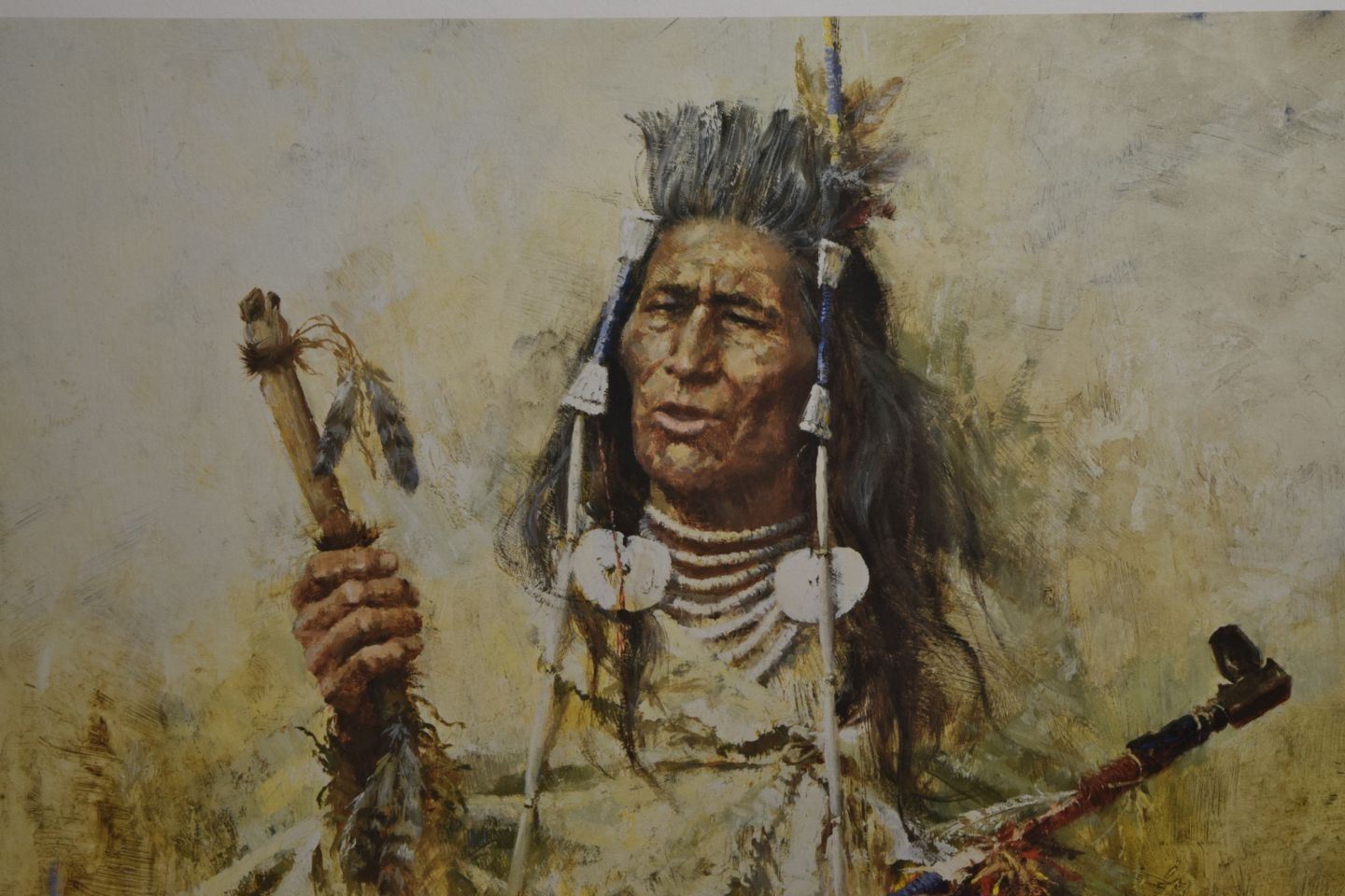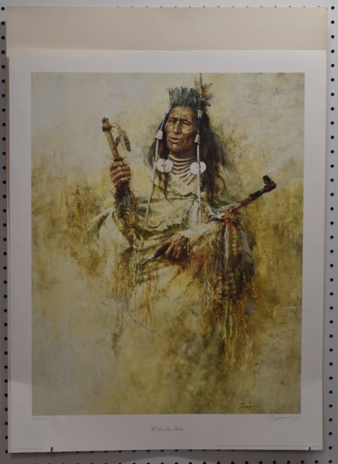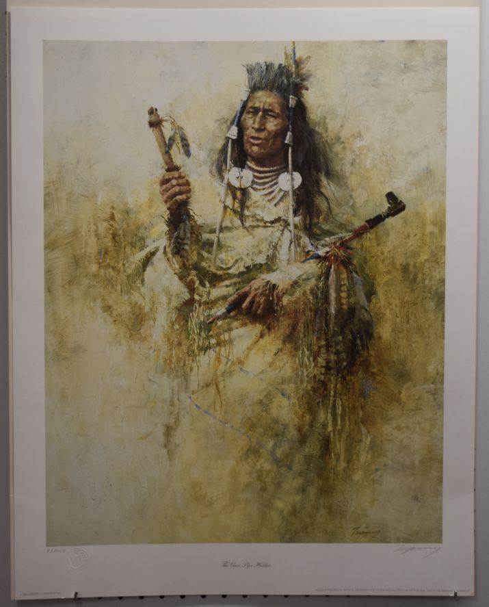 1984  Howard Terpning,  Hand signed Limited Edition # 93 / 750, depicting Crow Pipe Holder. 24'' x 19''