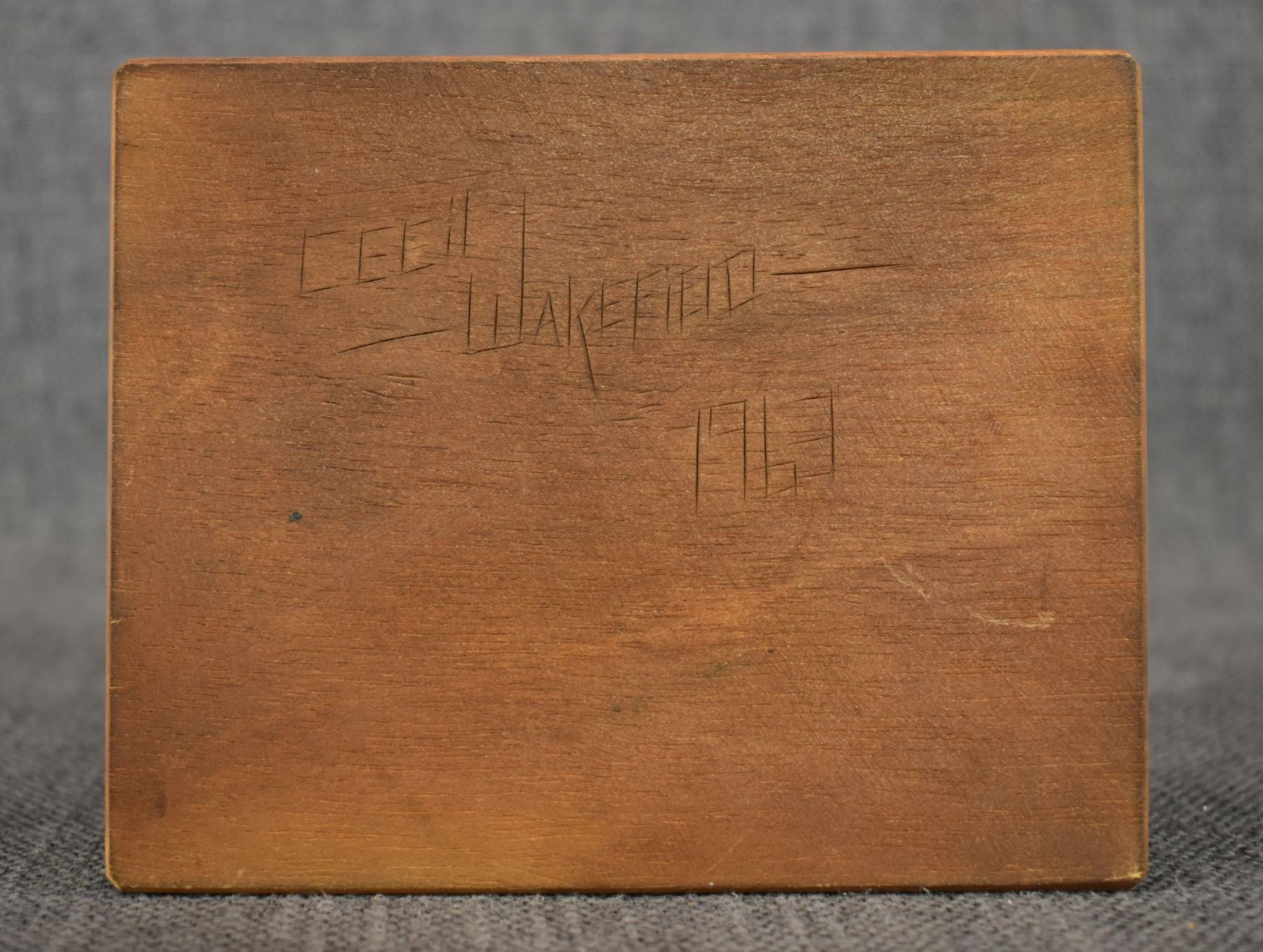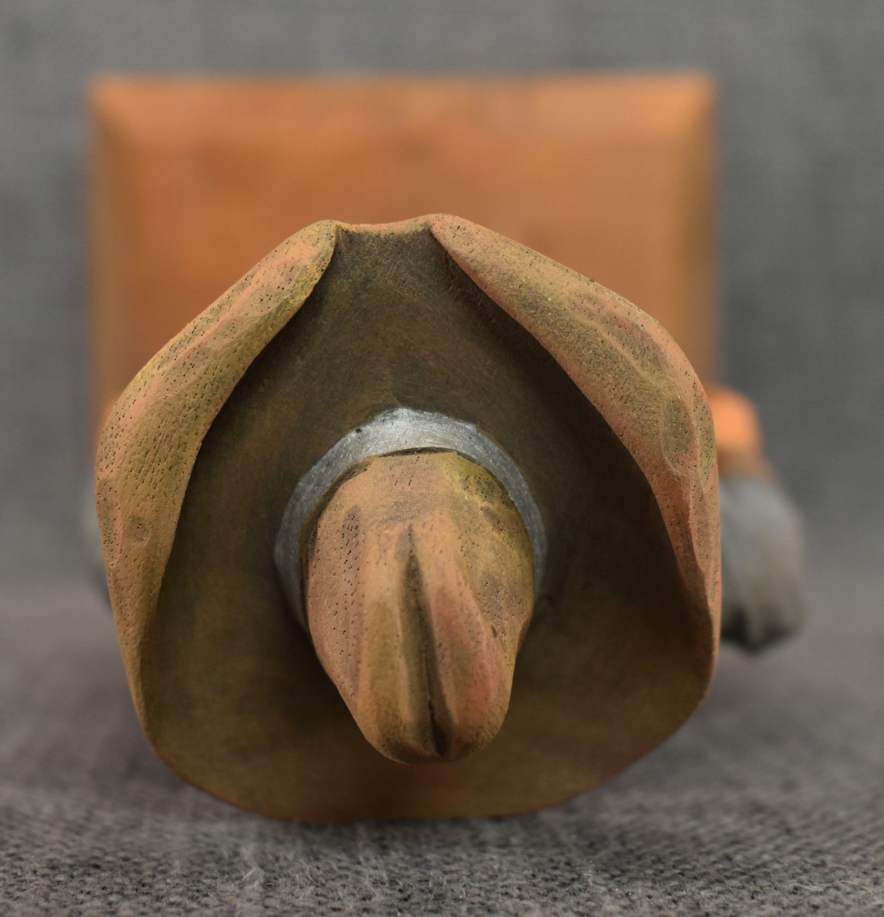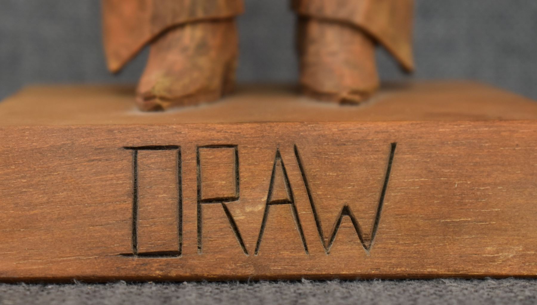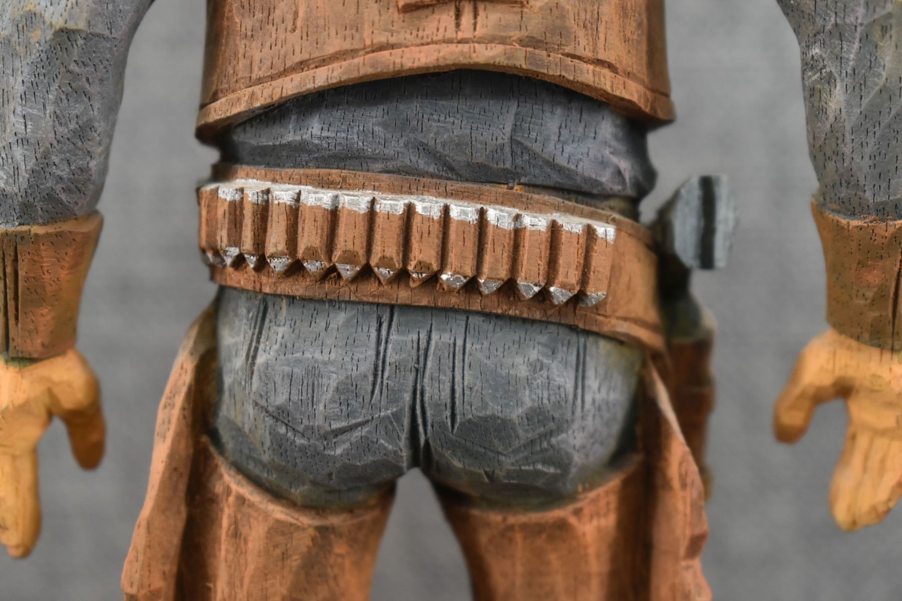 1963. western. hand carved and painted wood depicting cowboy signed Cecil Wakefield. 11'' tall