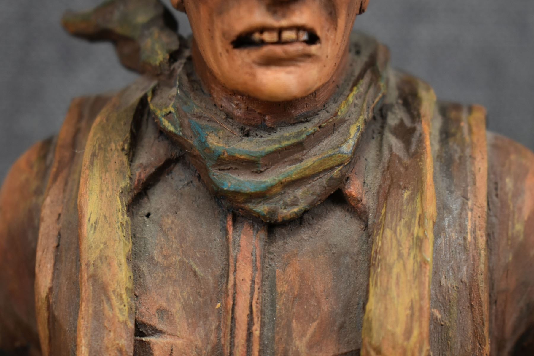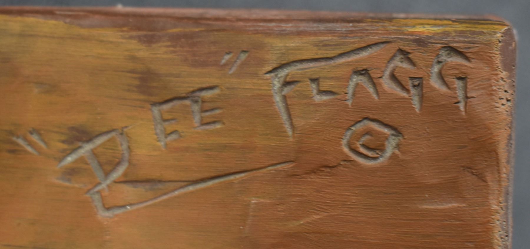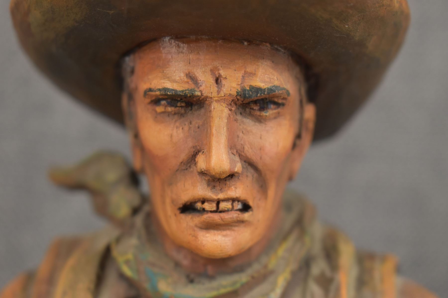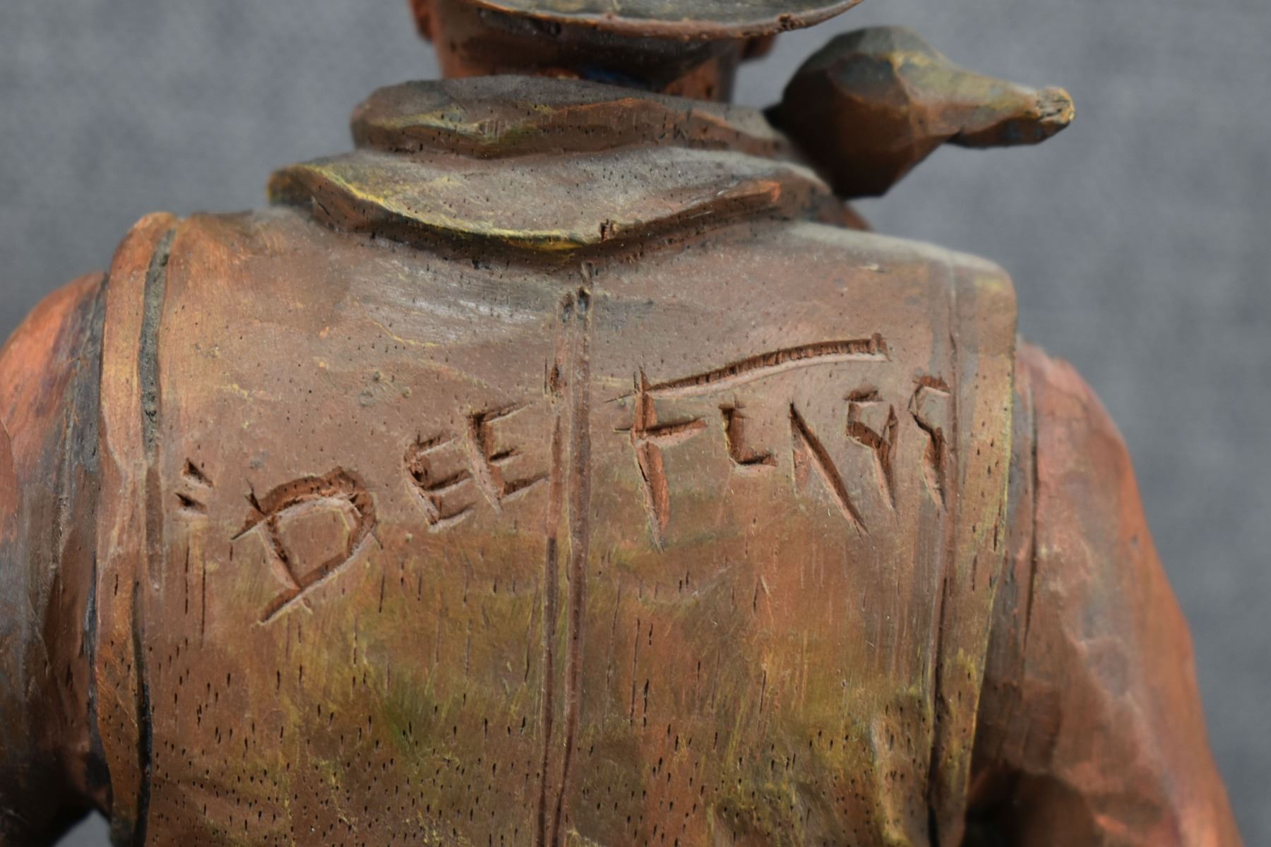 1960's Western. Hand carved wood depicting Jessie James. Signed Dee Flagg. 15'' tall