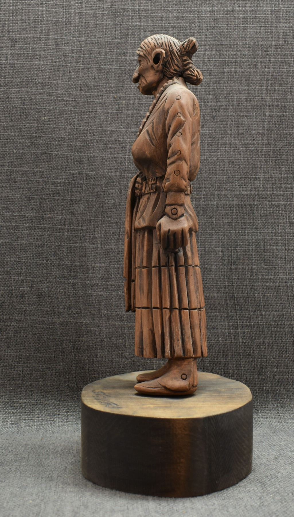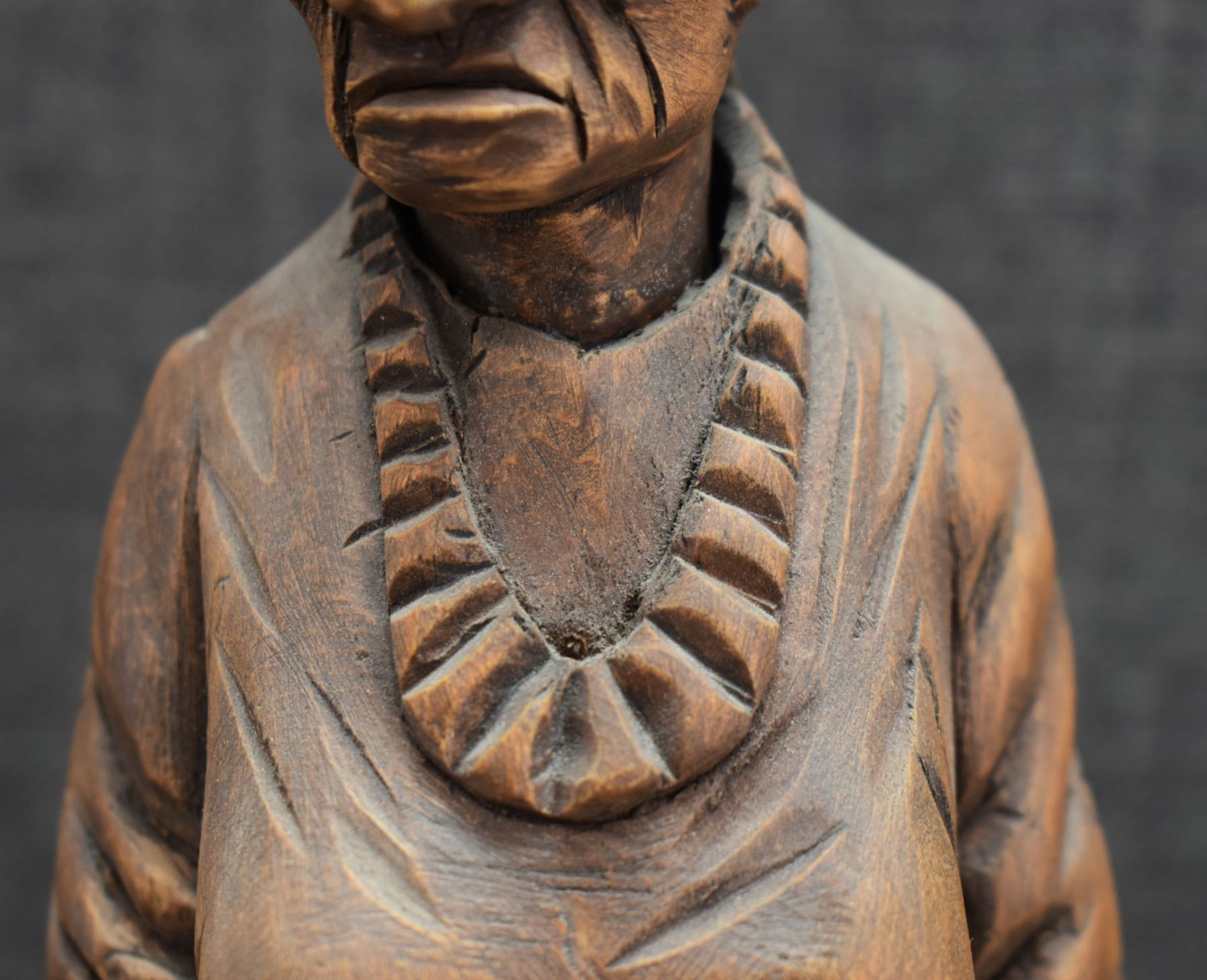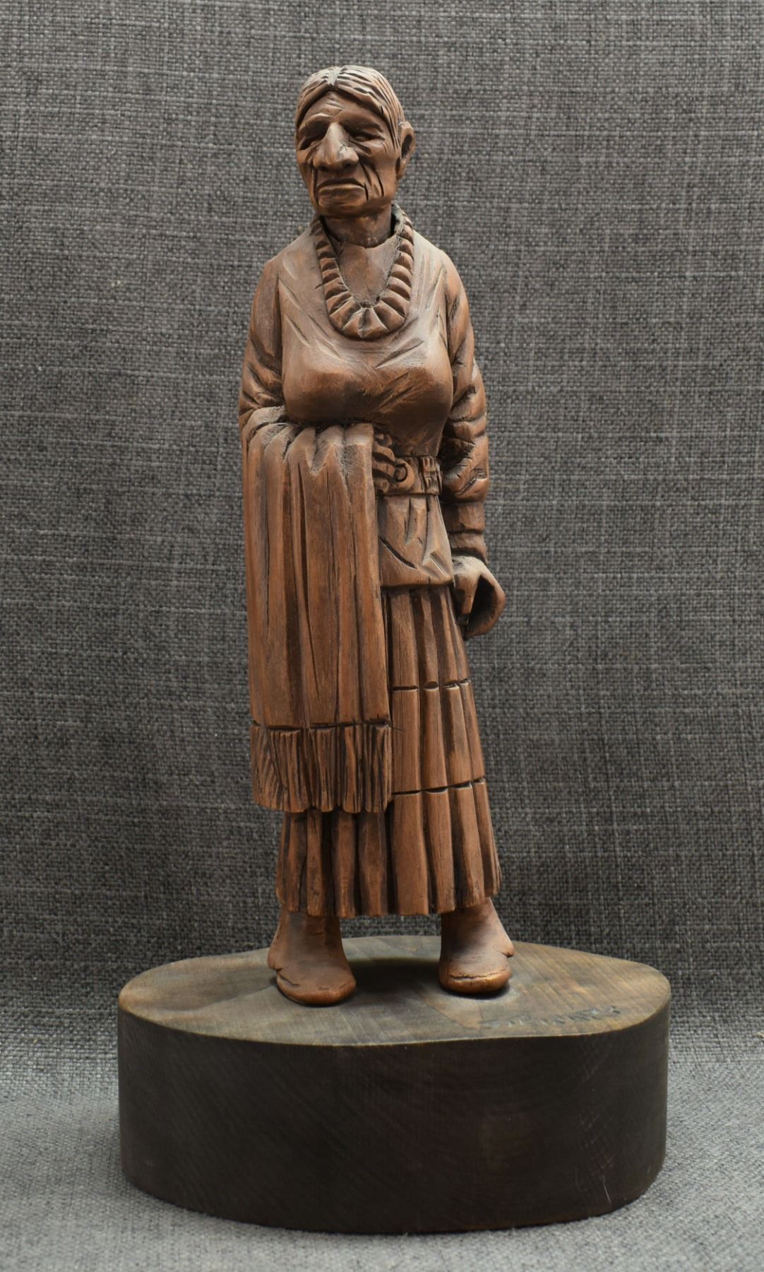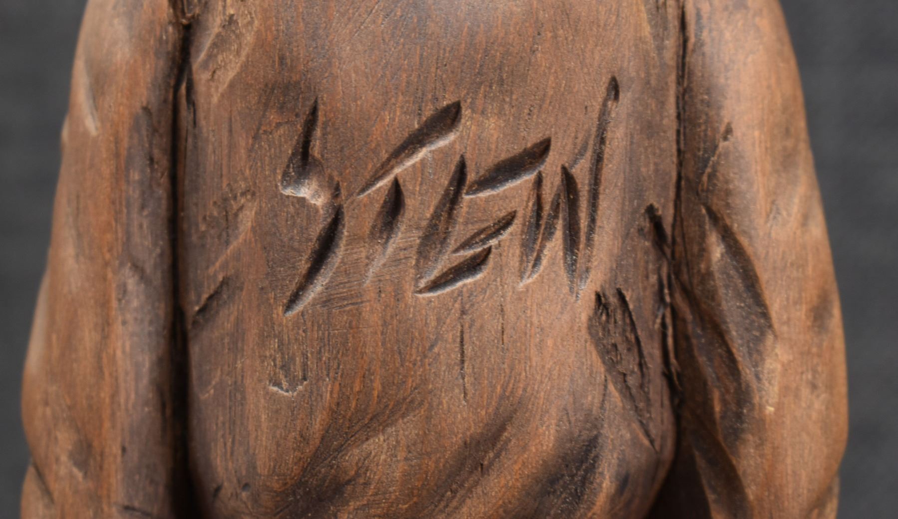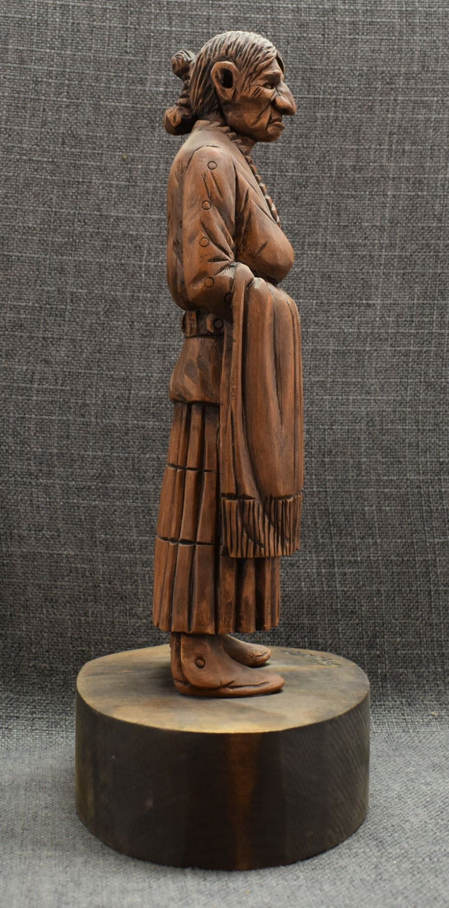 1970's Western. Hand carved wood depicting Native woman. Signed Stewart. 13.5" tall