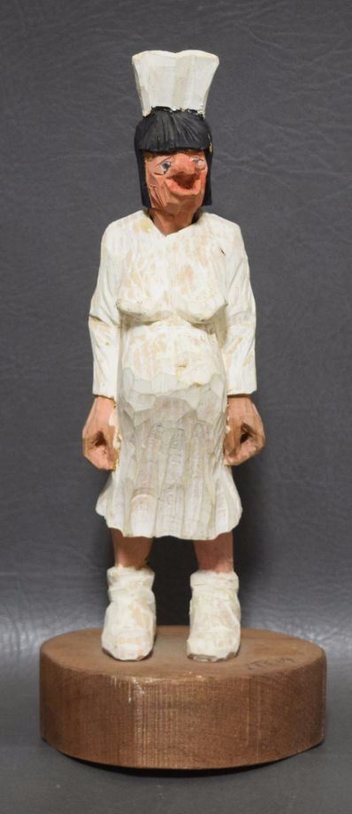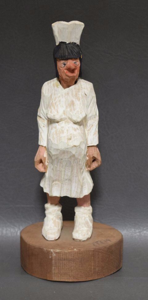 19780's hand caved wood depicting nurse signed Stew 11'' x 5''