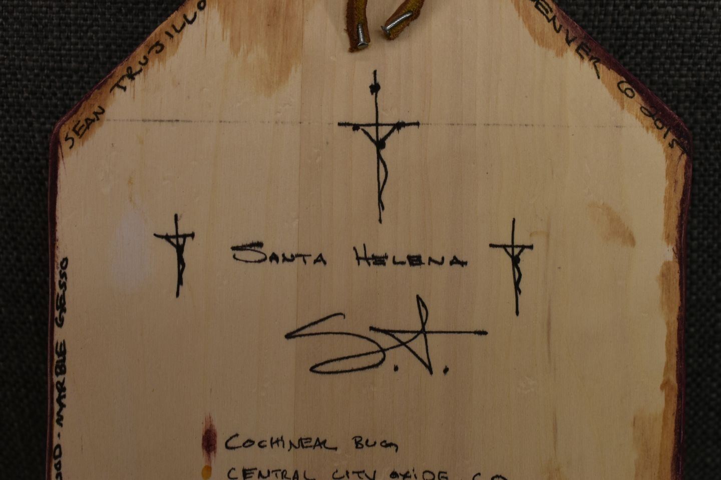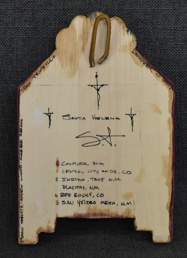 2015 hand made and painted retablo signed Sean Trujillo. 9'' x 6''
