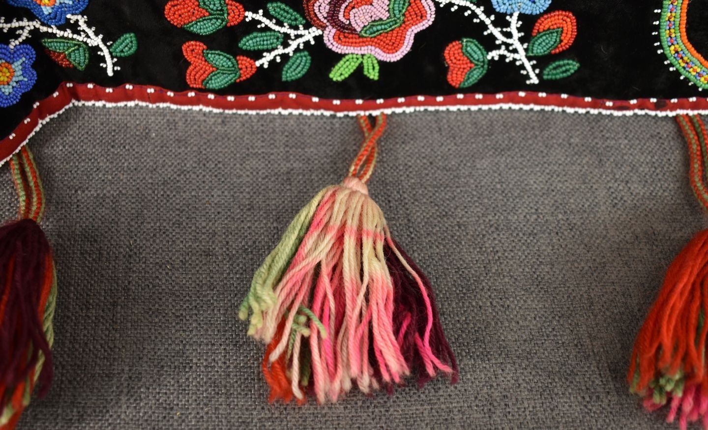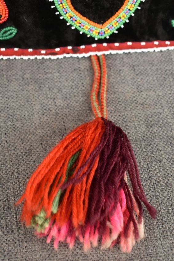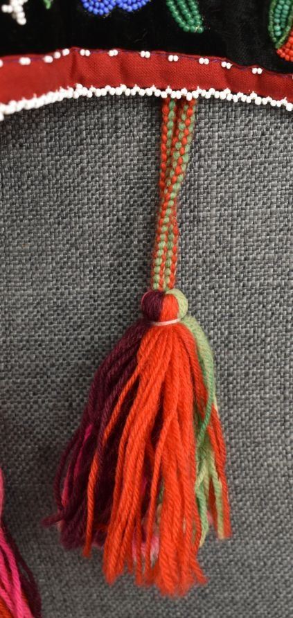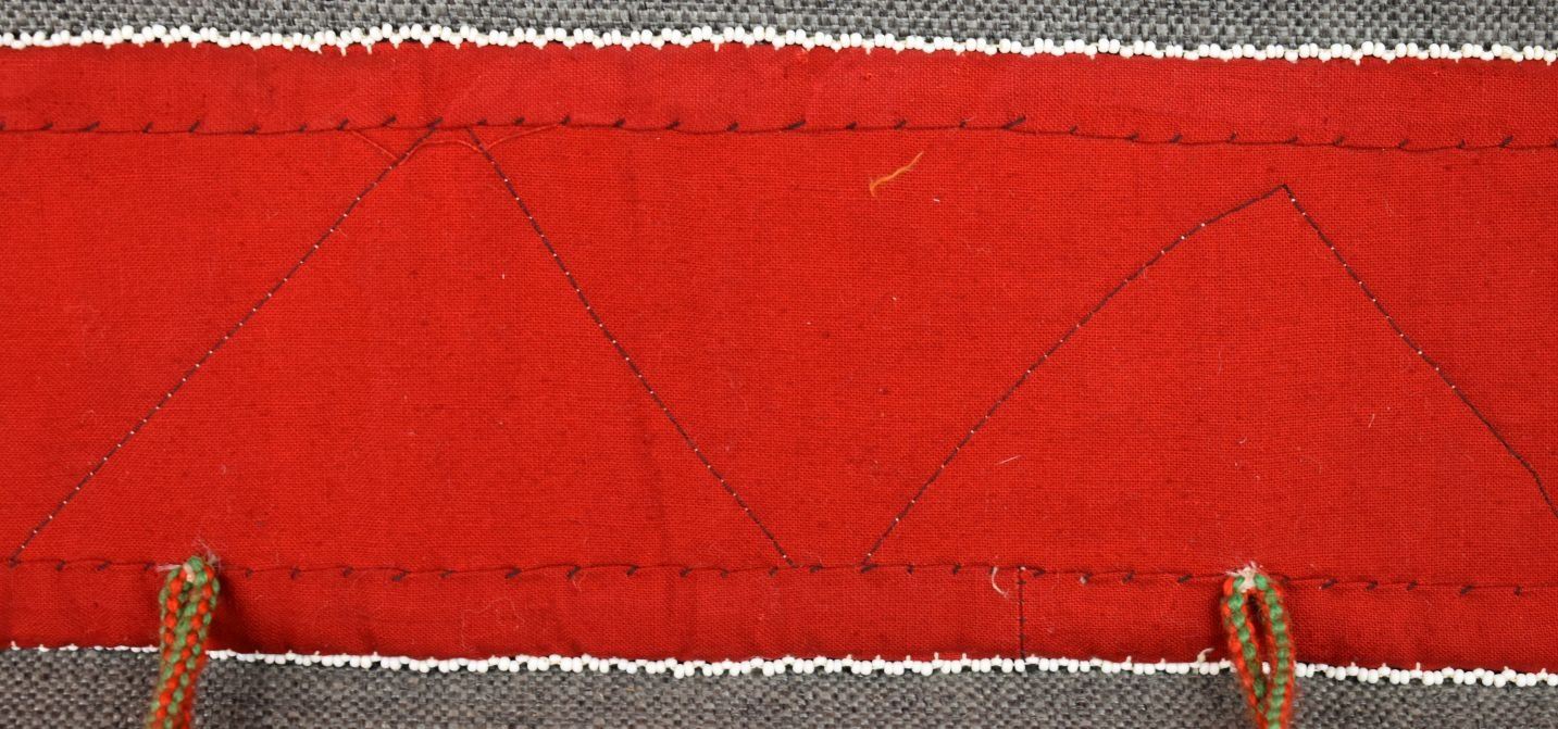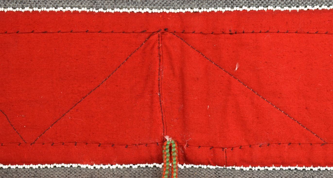 20th century woodland Indian, hand made with thread sown floral design on velvet and trade cloth 4.5" x 39" plus leather buckle