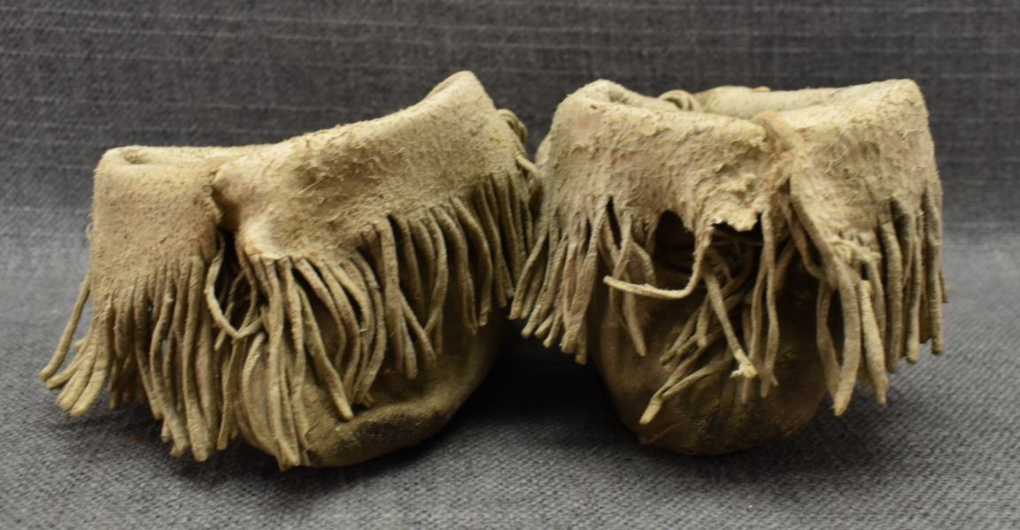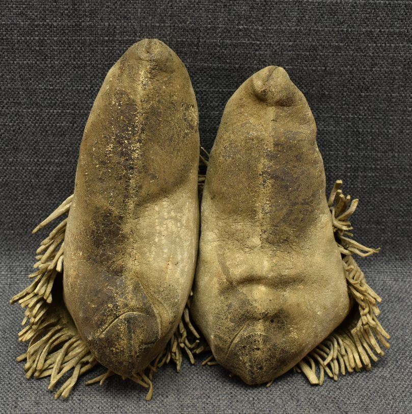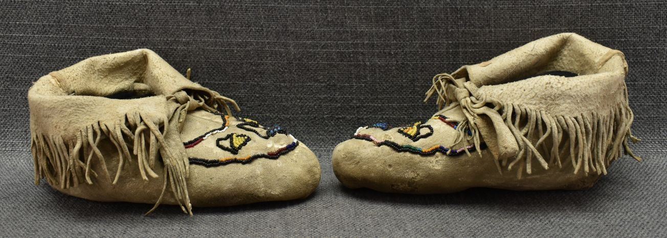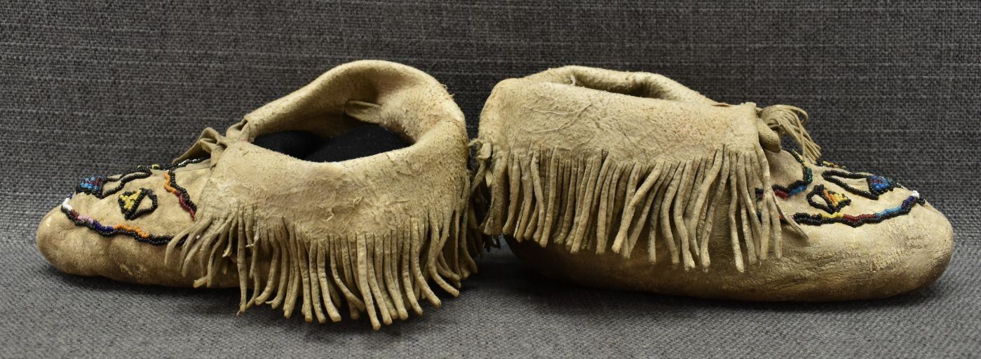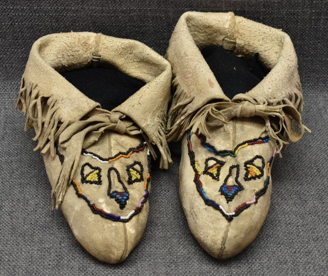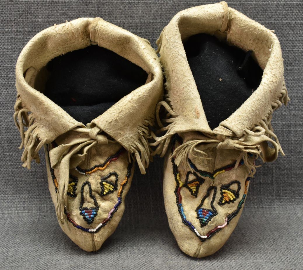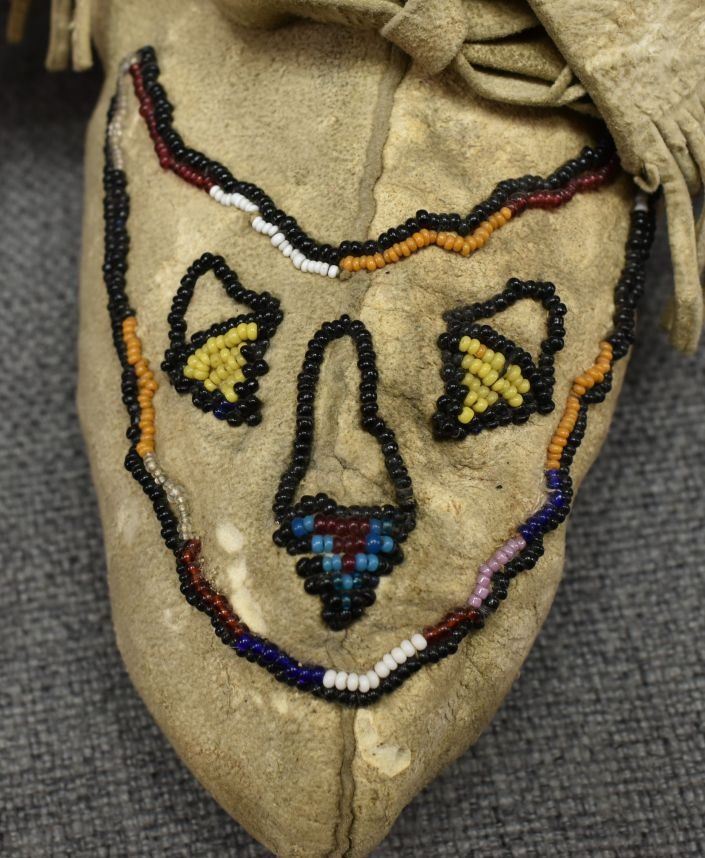 20th century woodlands Indian, hand made from native tanned leather with sinew sewn beaded design. 4" x 8" x 3"