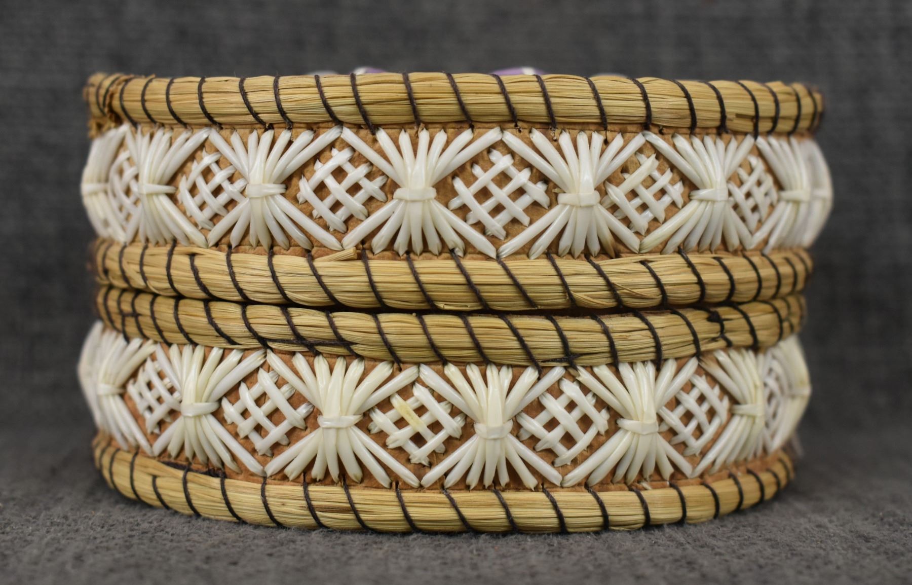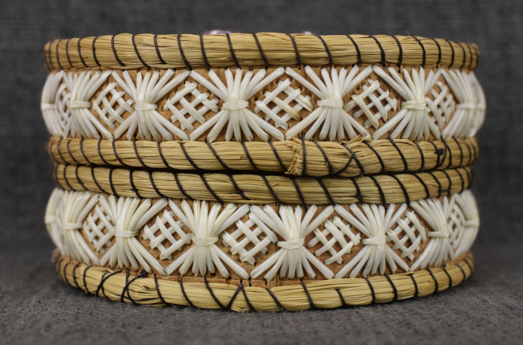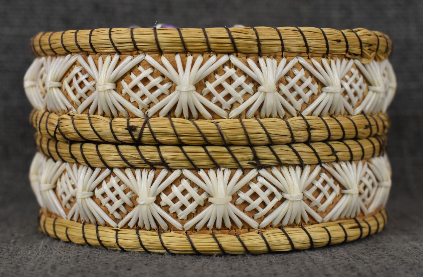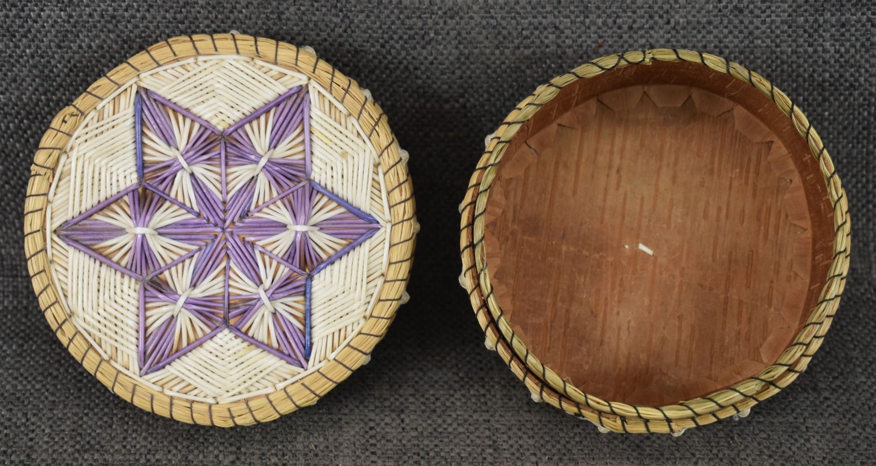 1970's woodland Indian, hand made from birchbark with quilled star design 2.25" x 4.25"