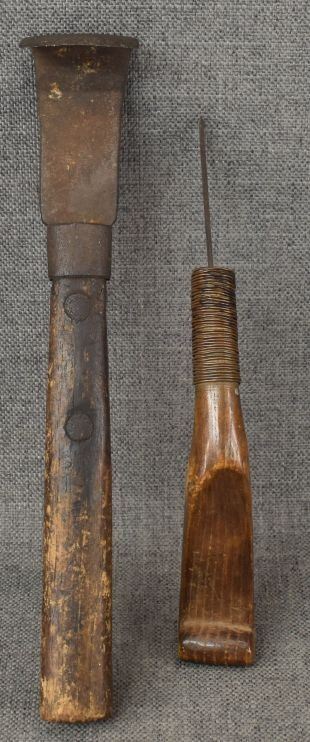 1900's Woodlands. Hand made crooked knife11'' long and hide scraper 12.5'' long