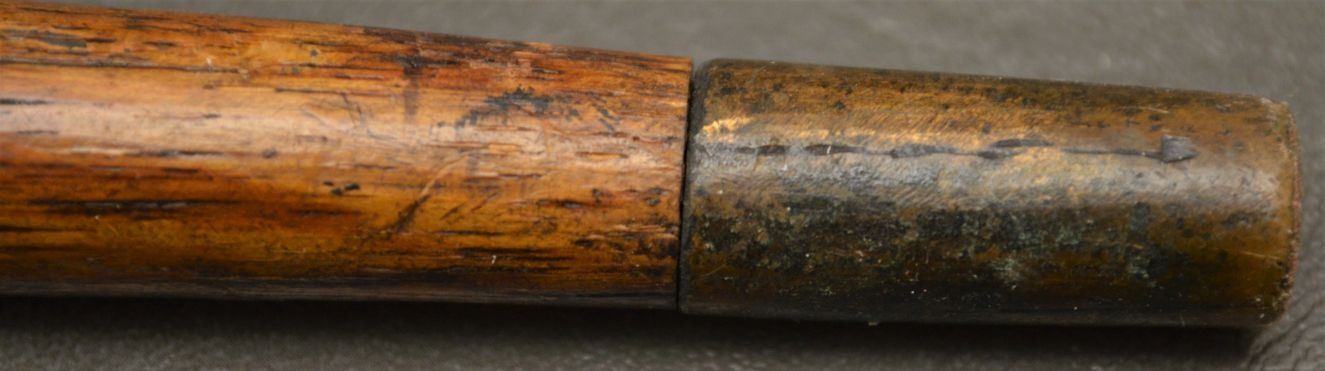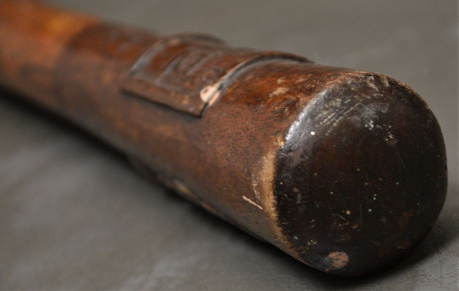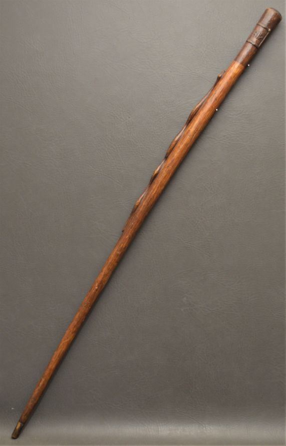 1812 woodlands Indian hand carved wooden cane with snake and Indian head design. 35'' long