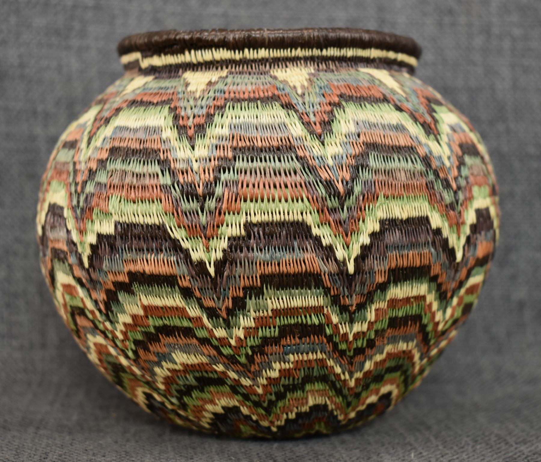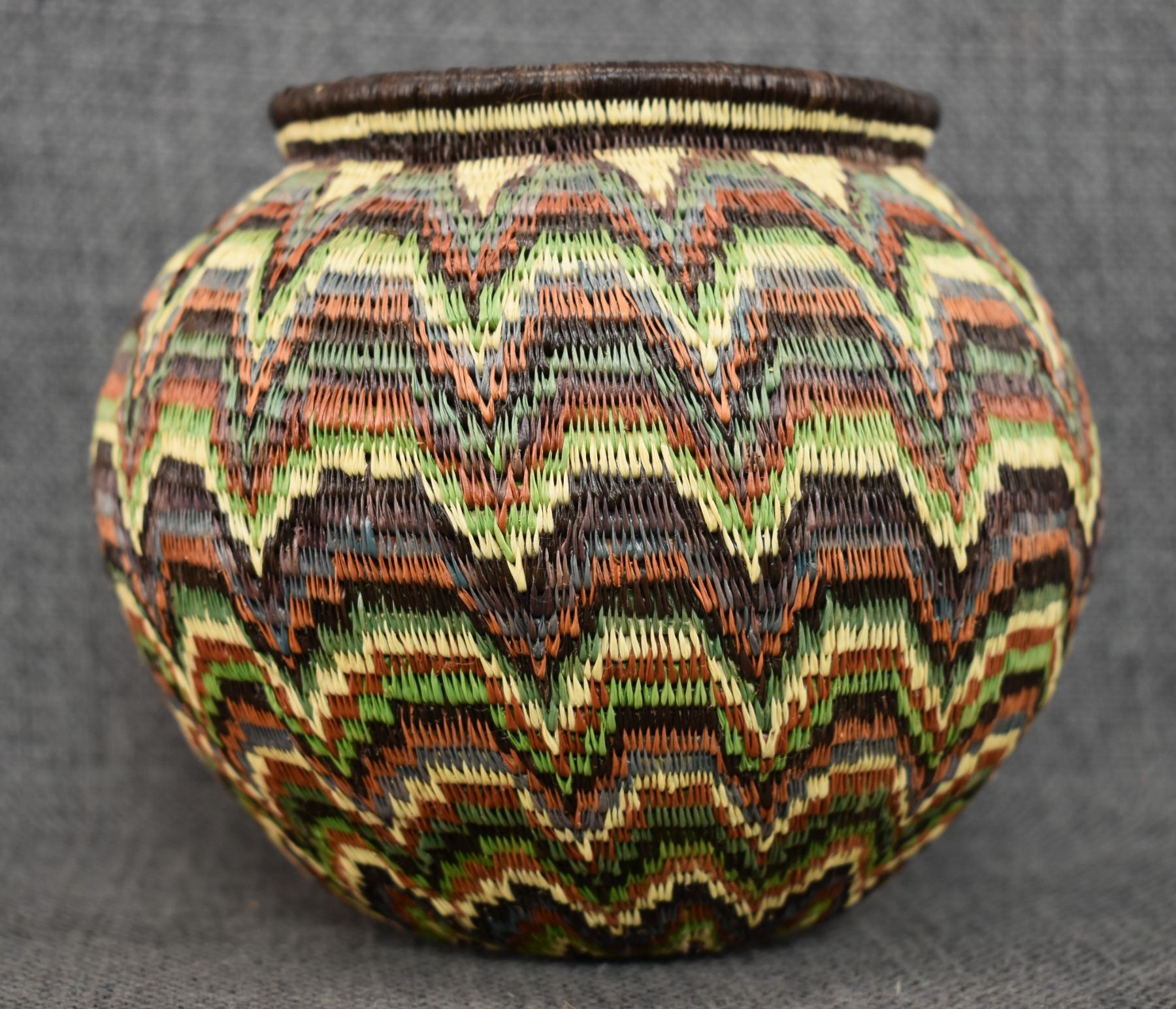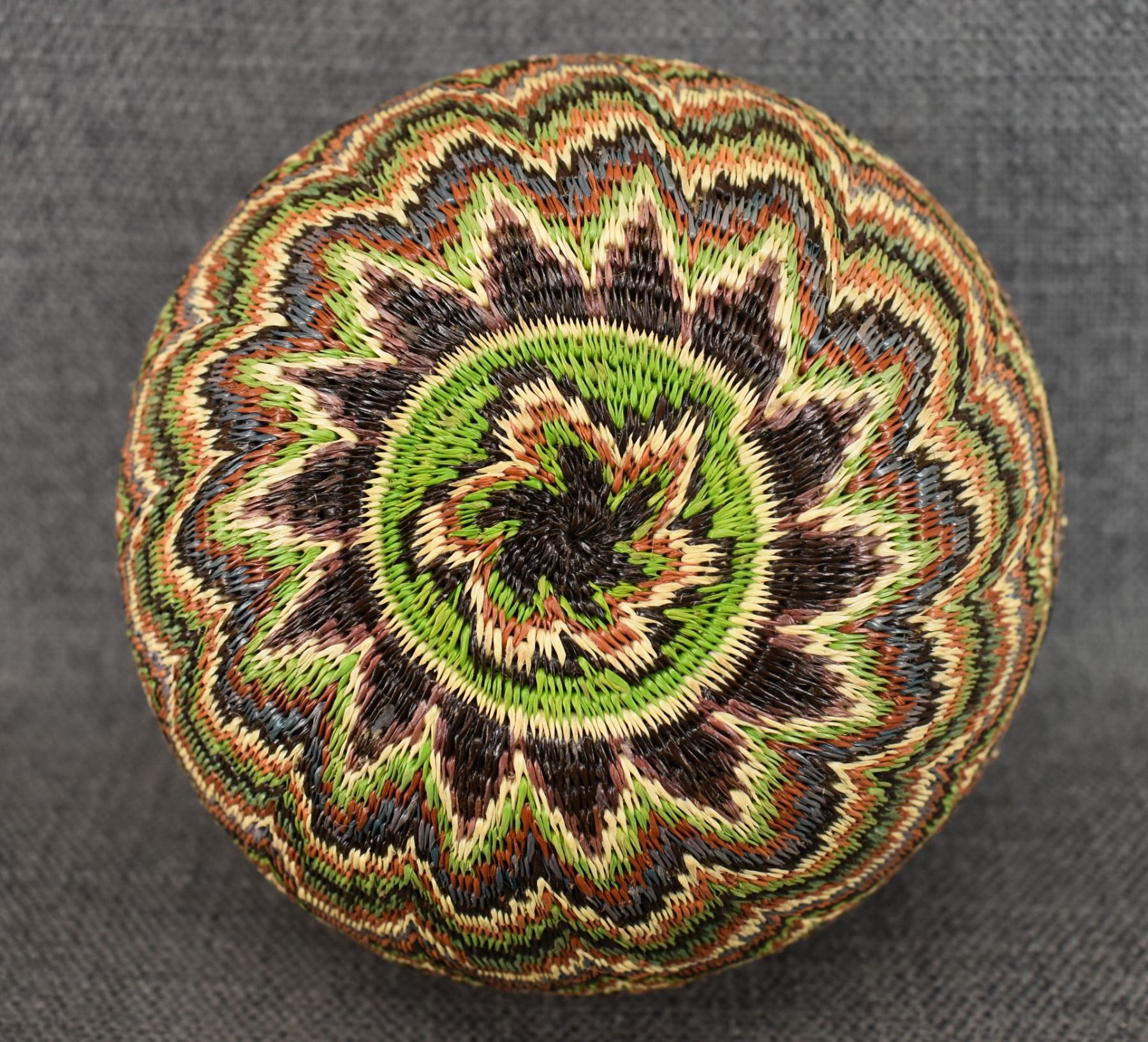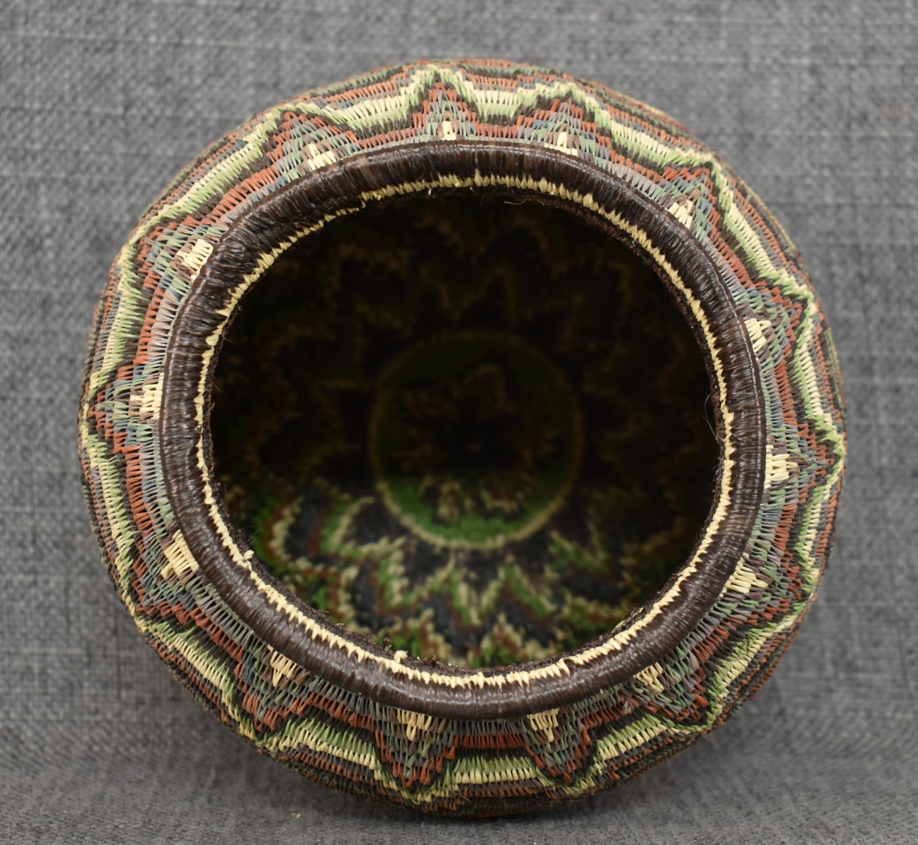 1980's Wounaan Rain Forest. Hand coiled geometric design. 5.5'' x 6.5''