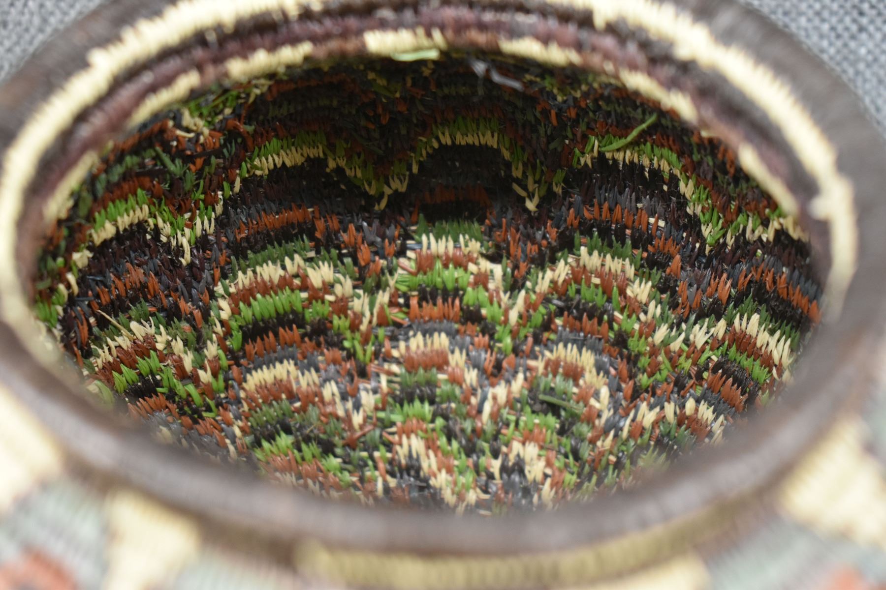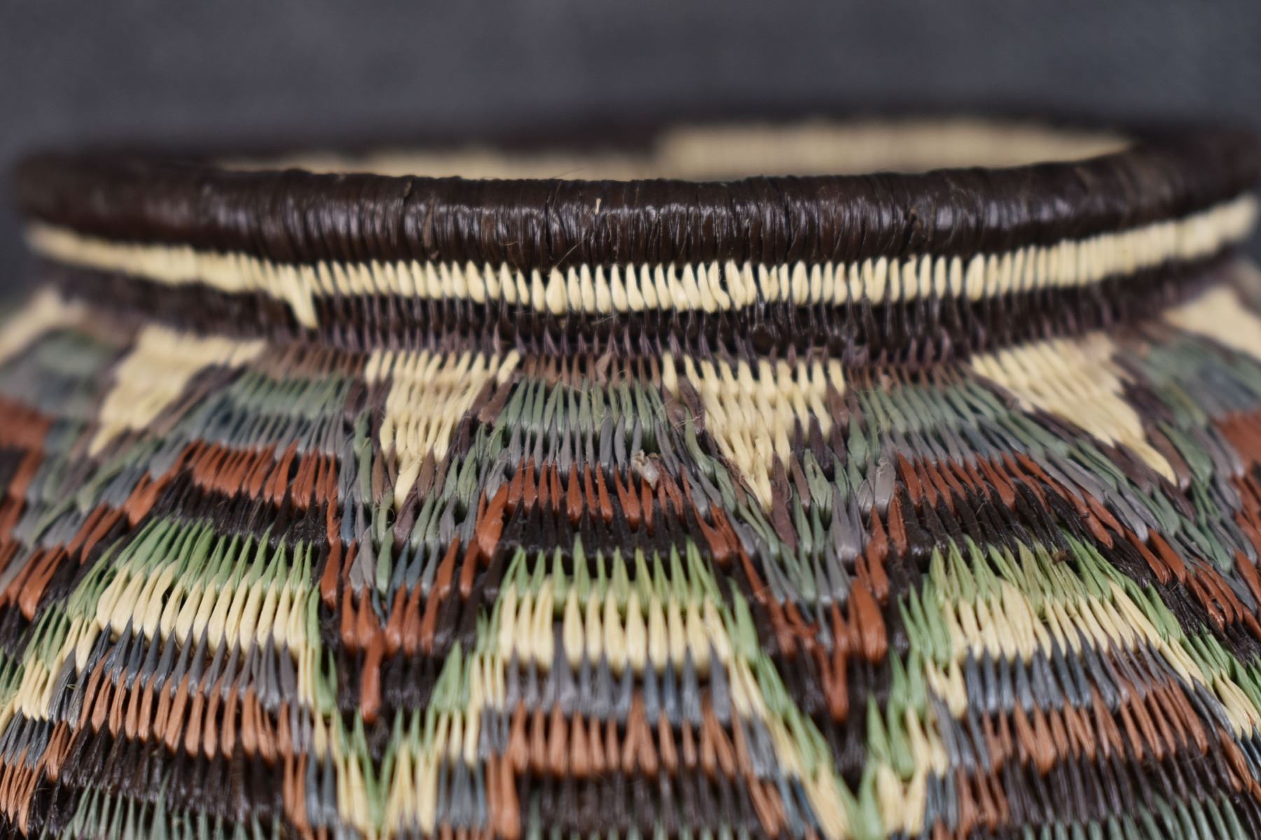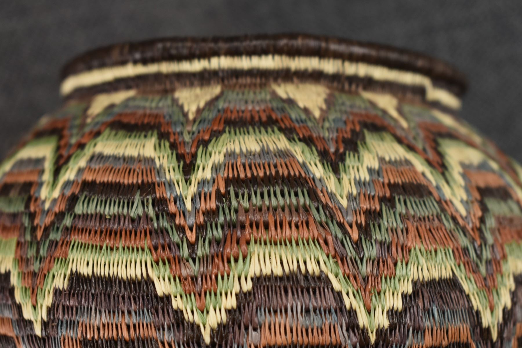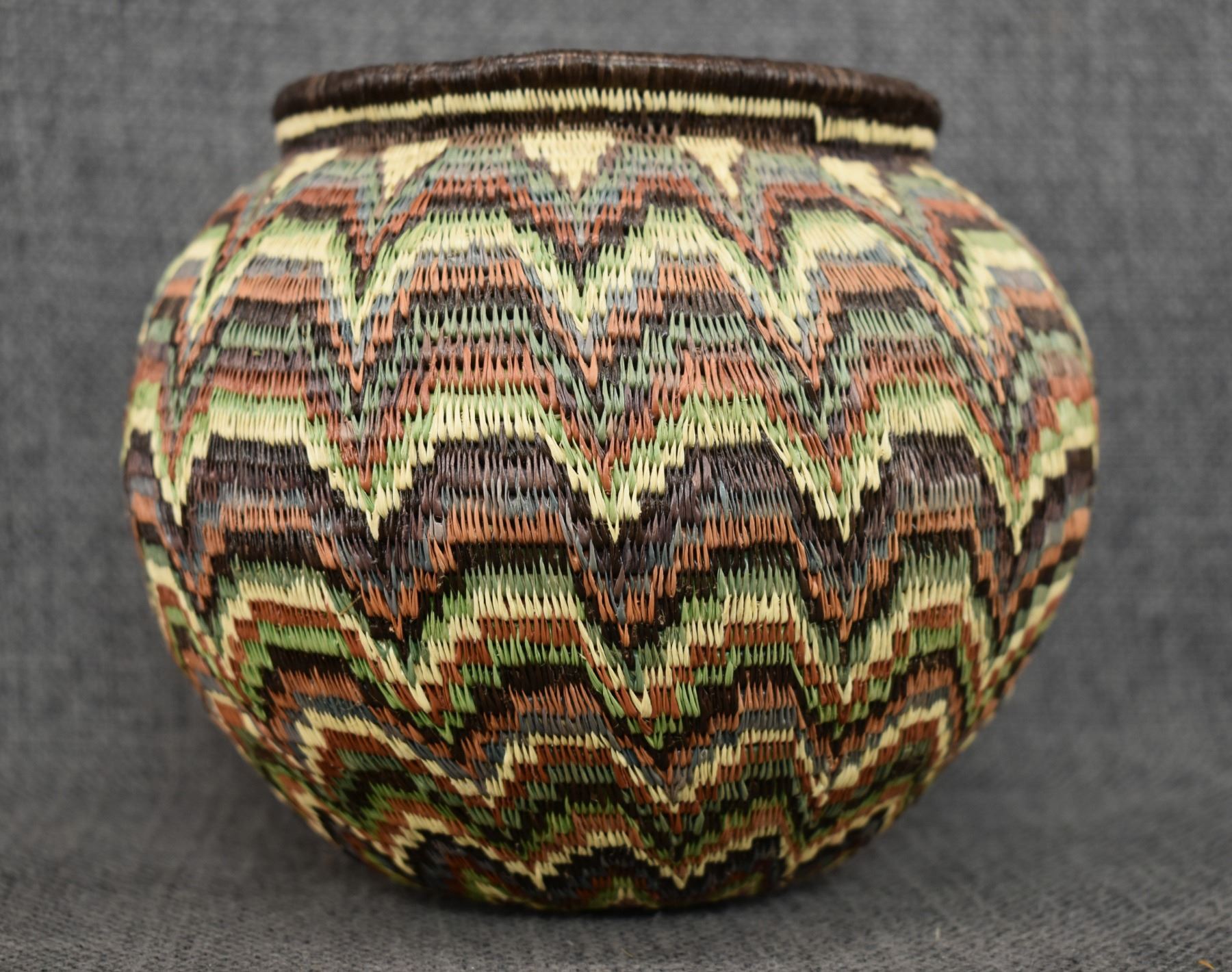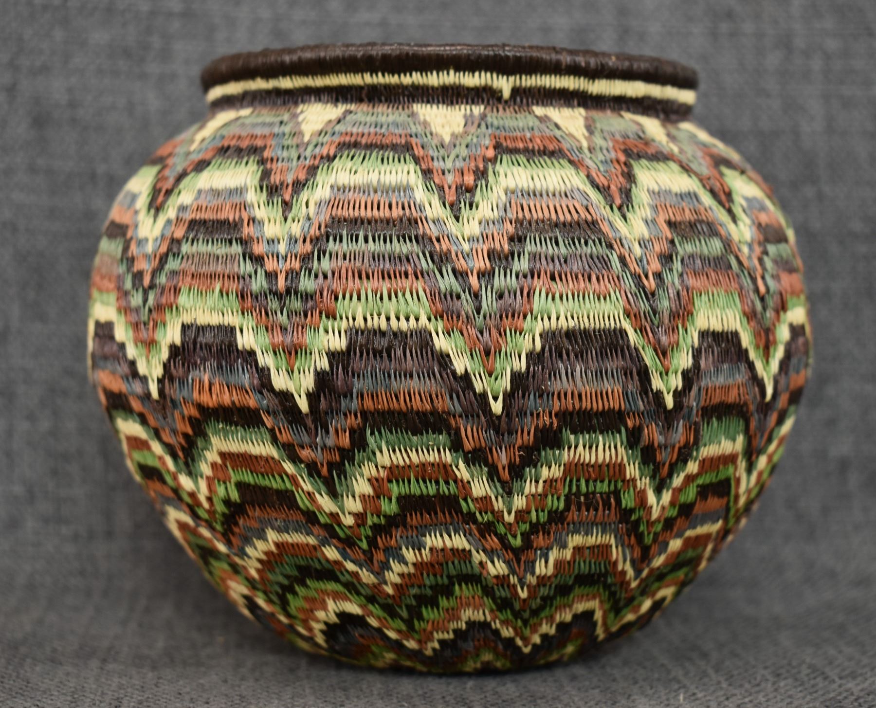 1980's Wounaan Rain Forest. Hand coiled geometric design. 5.5'' x 6.5''