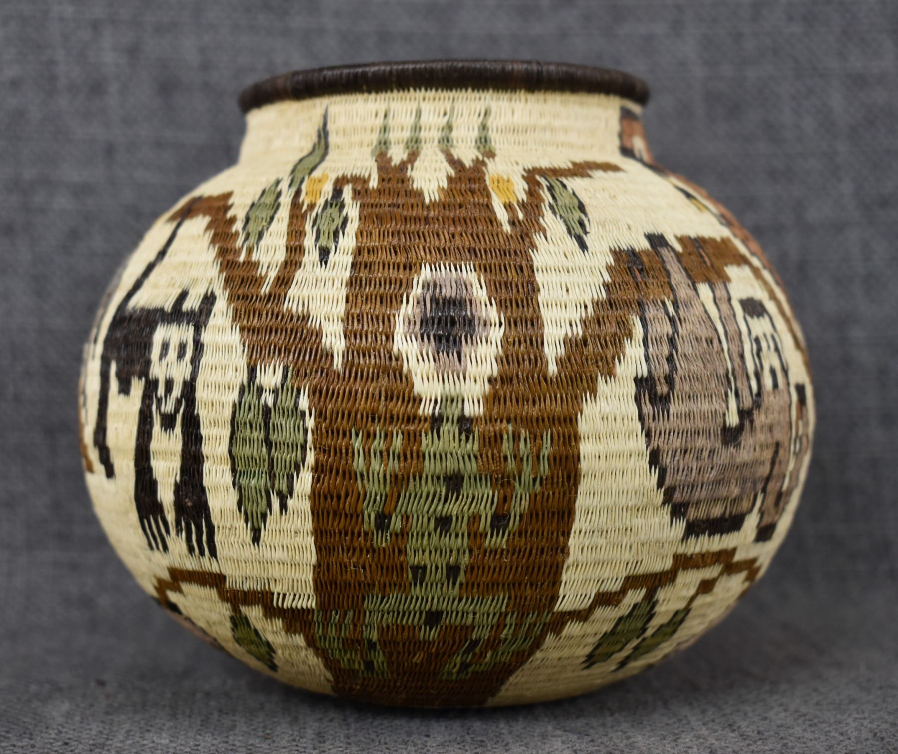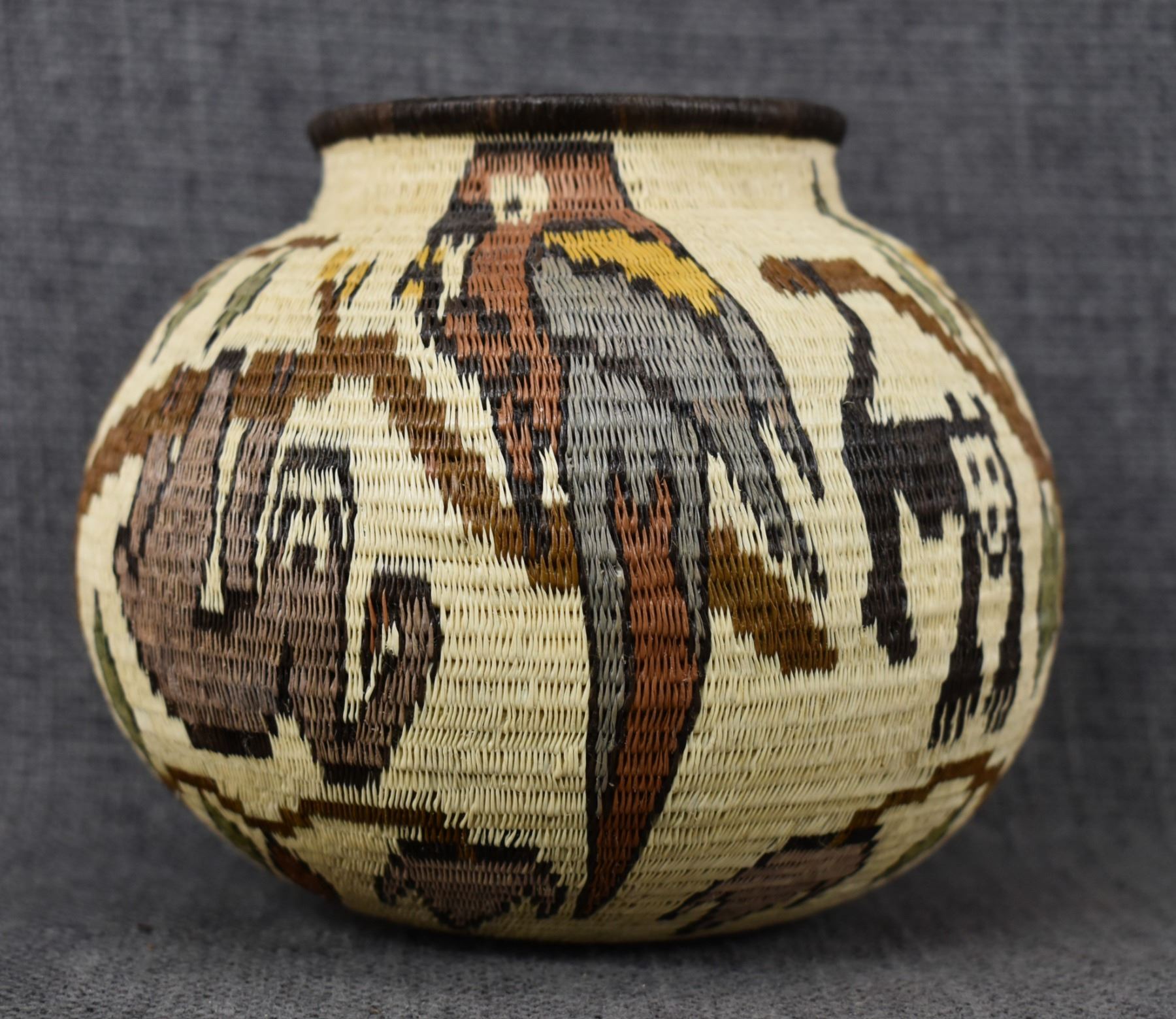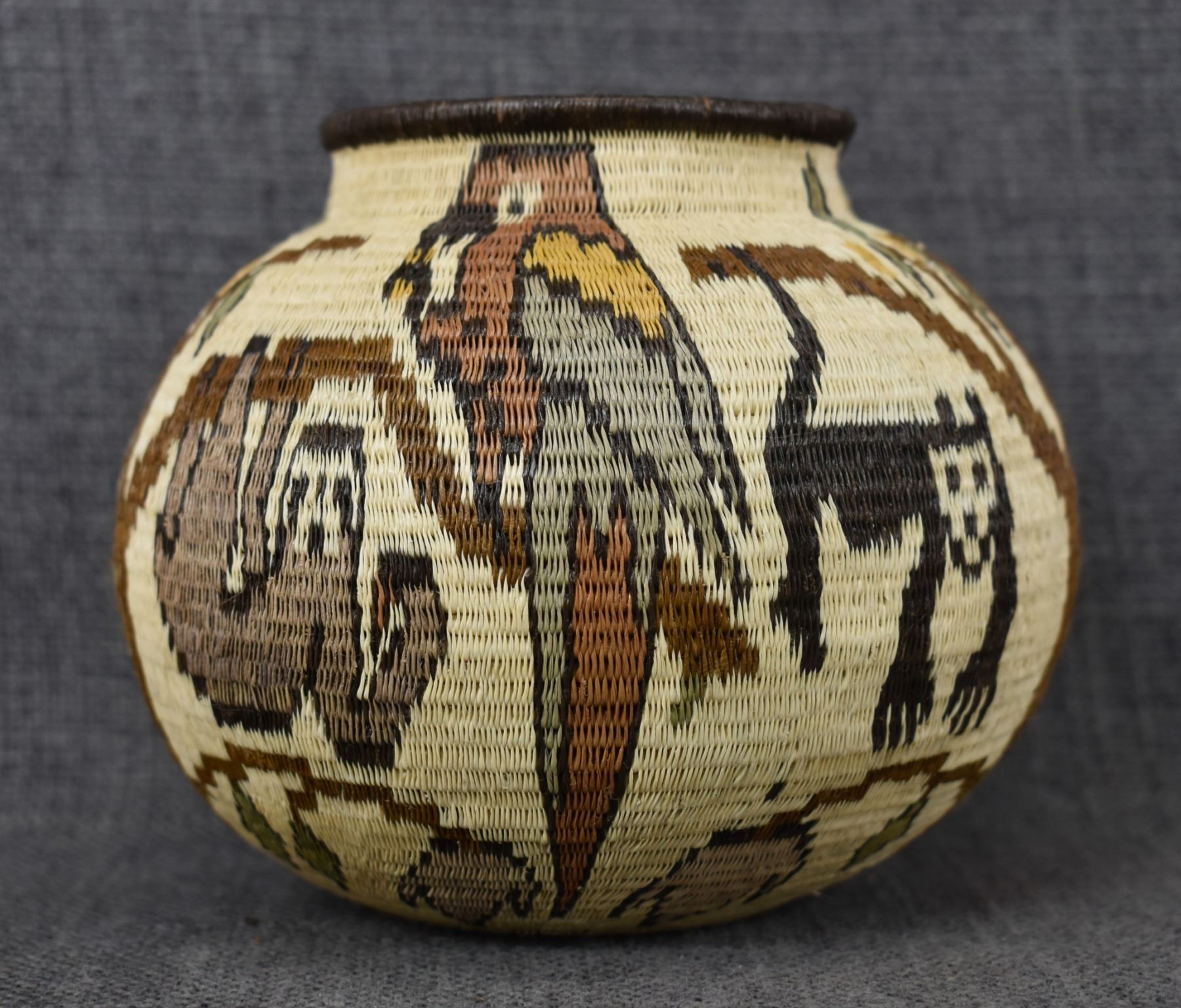 1980's Wounaan Rain Forest. Hand woven design depicting animals and trees. 4.5" x 5"
