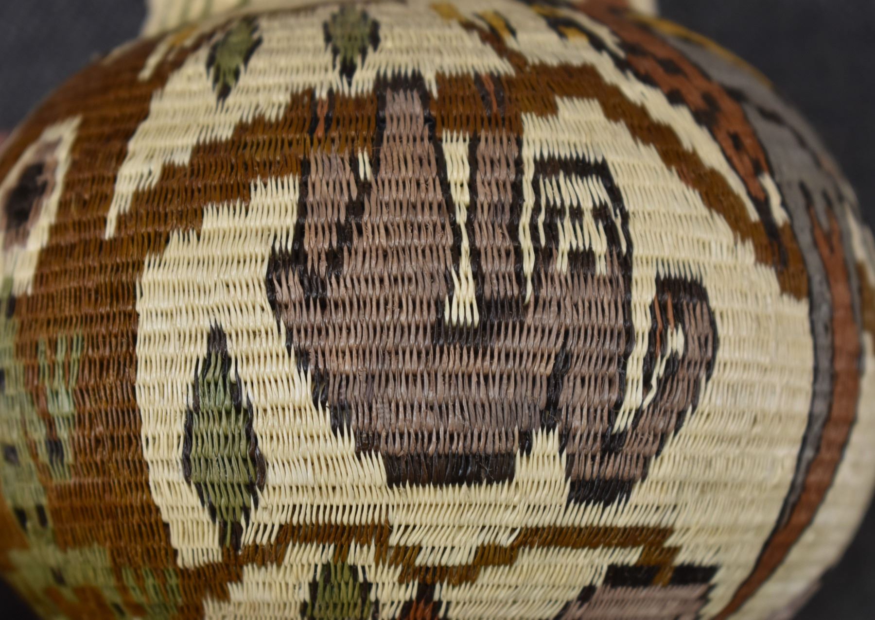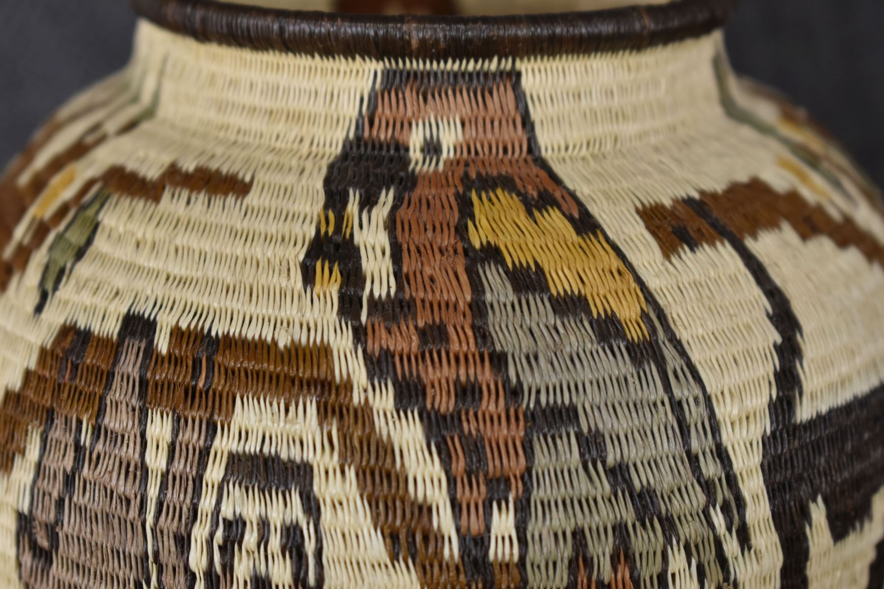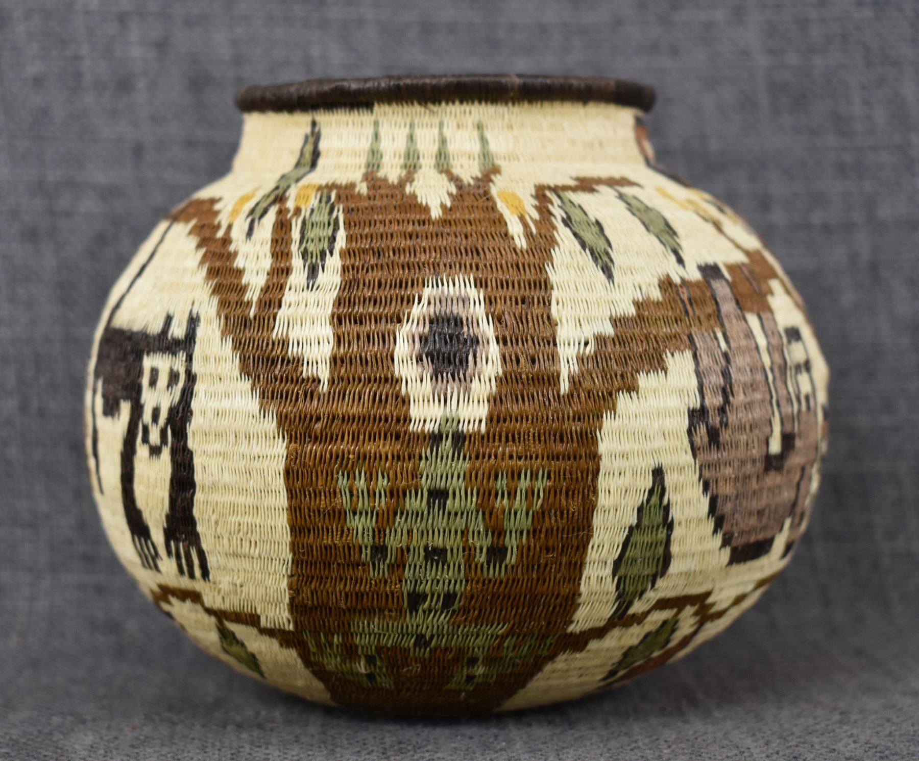 1980's Wounaan Rain Forest. Hand woven design depicting animals and trees. 4.5" x 5"