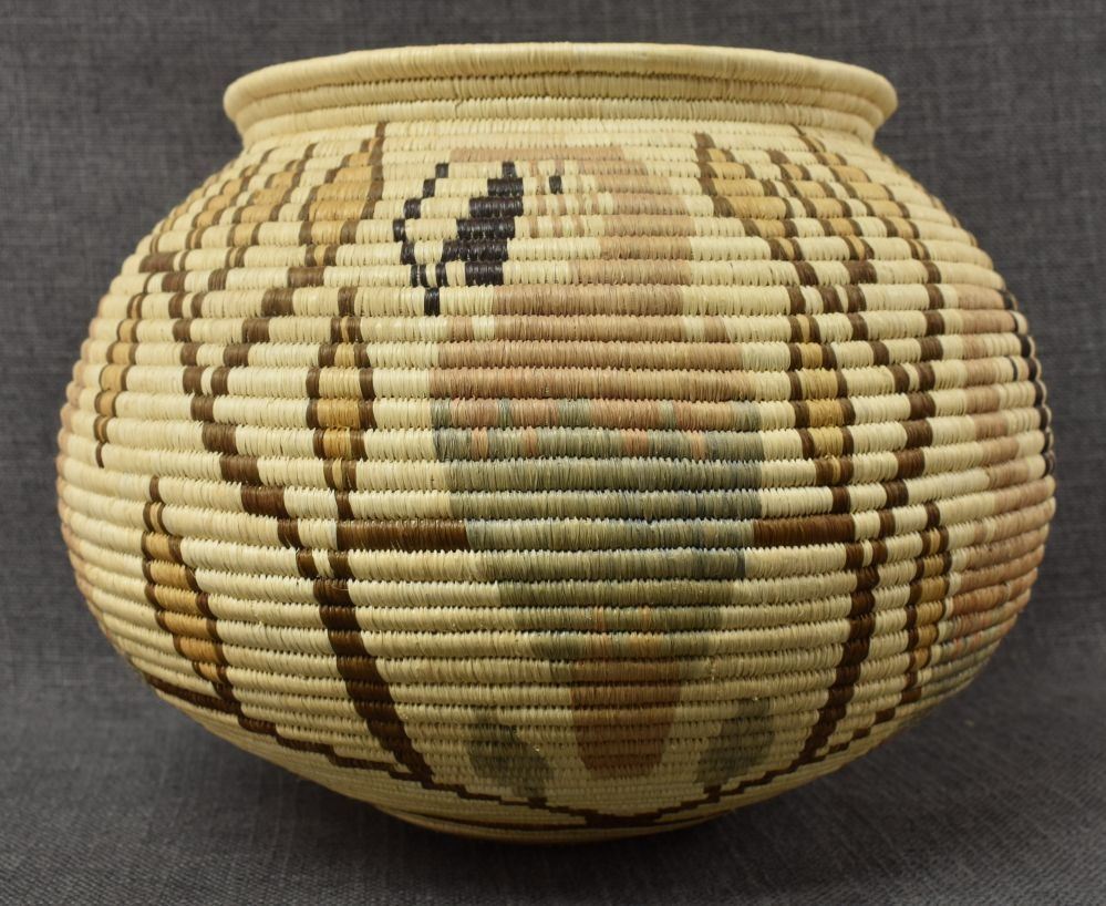 1980-90's Wounaan rainforest, hand woven polychrome parrot and floral design 8.25" x 10"