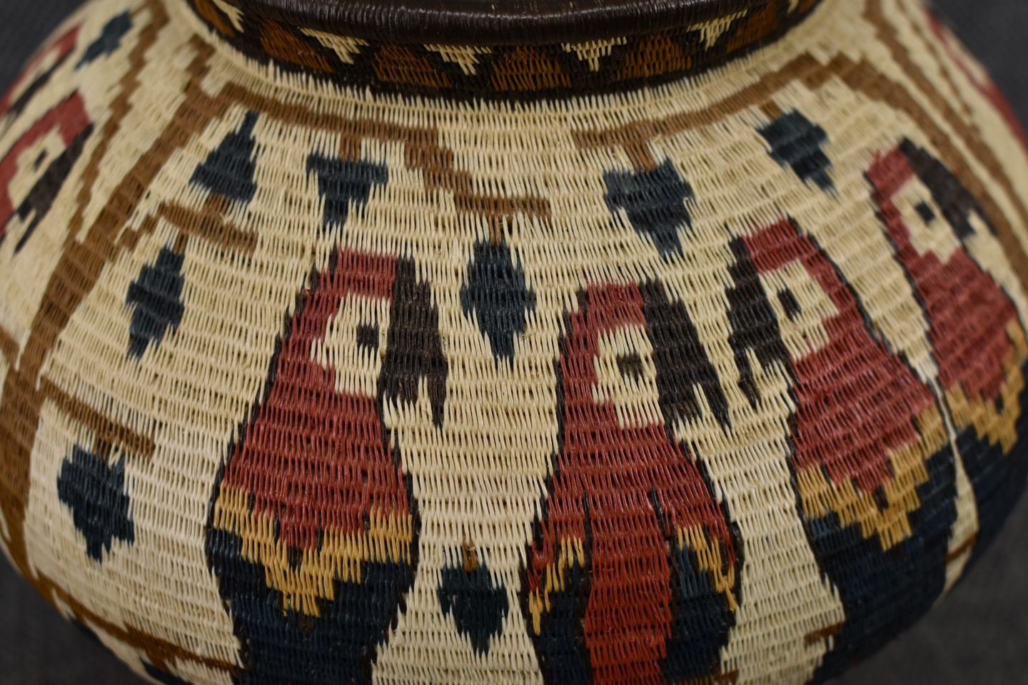 1980-90's Wounaan rainforest, hand woven polychrome parrot design 5.75" x 7.25" includes photo of the maker