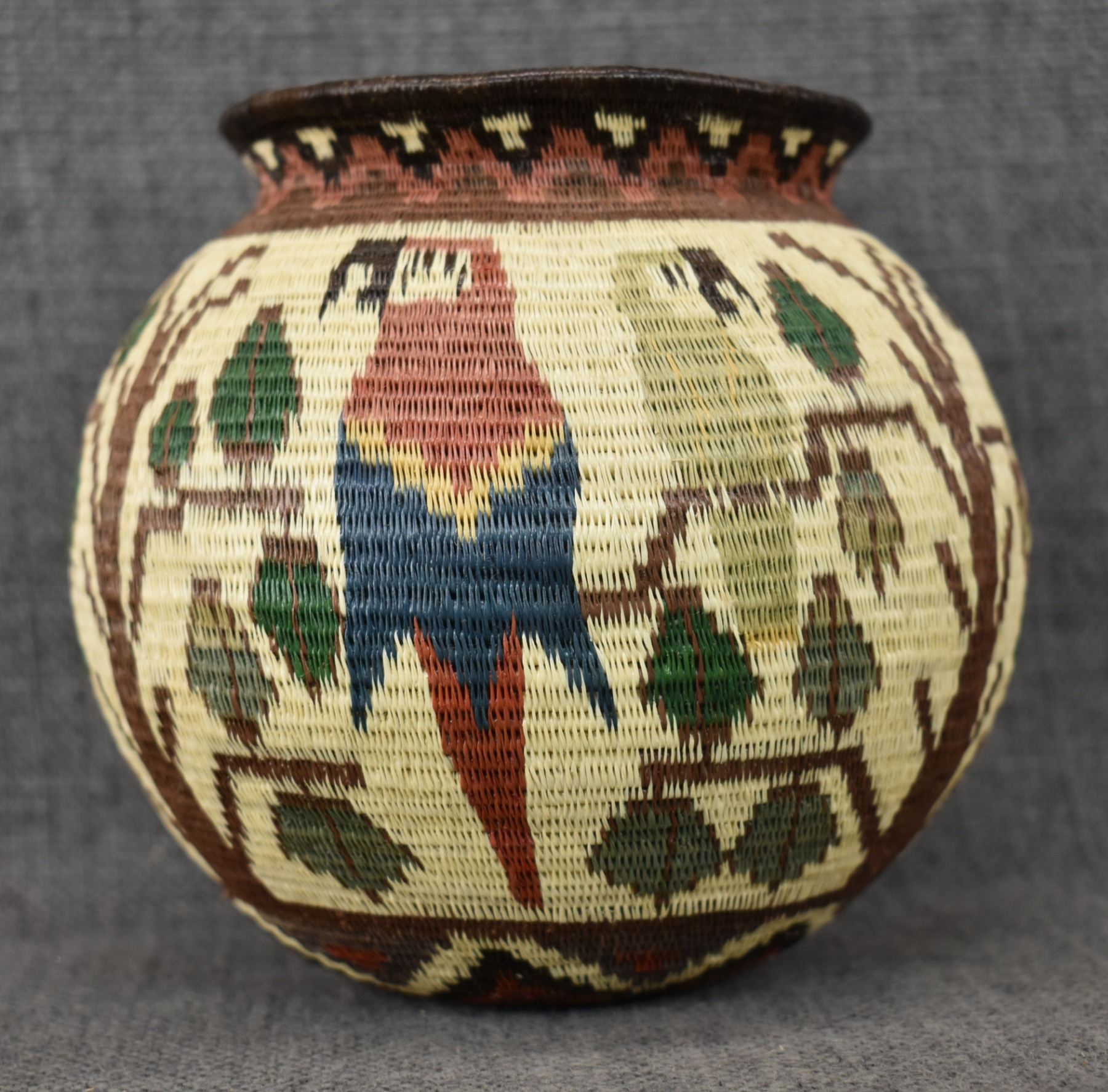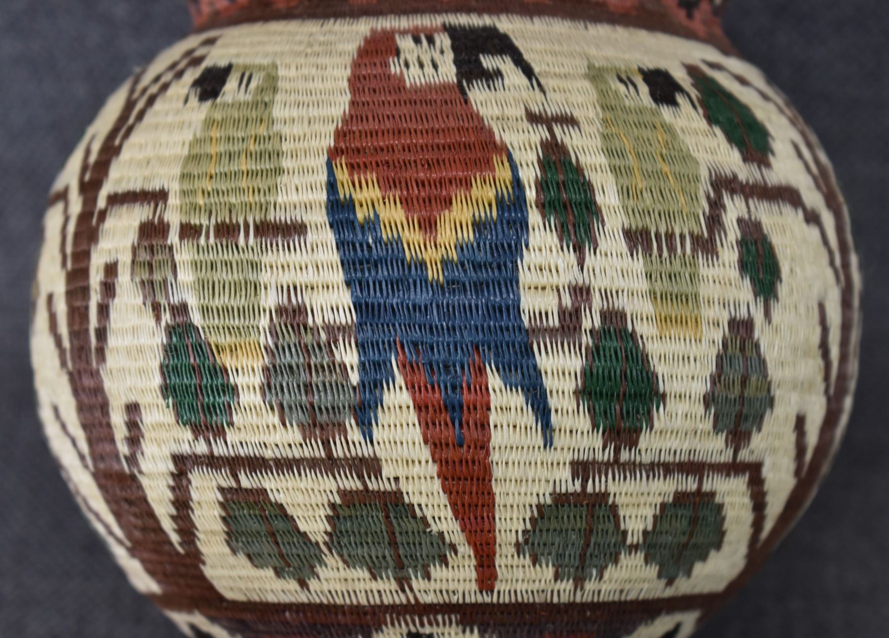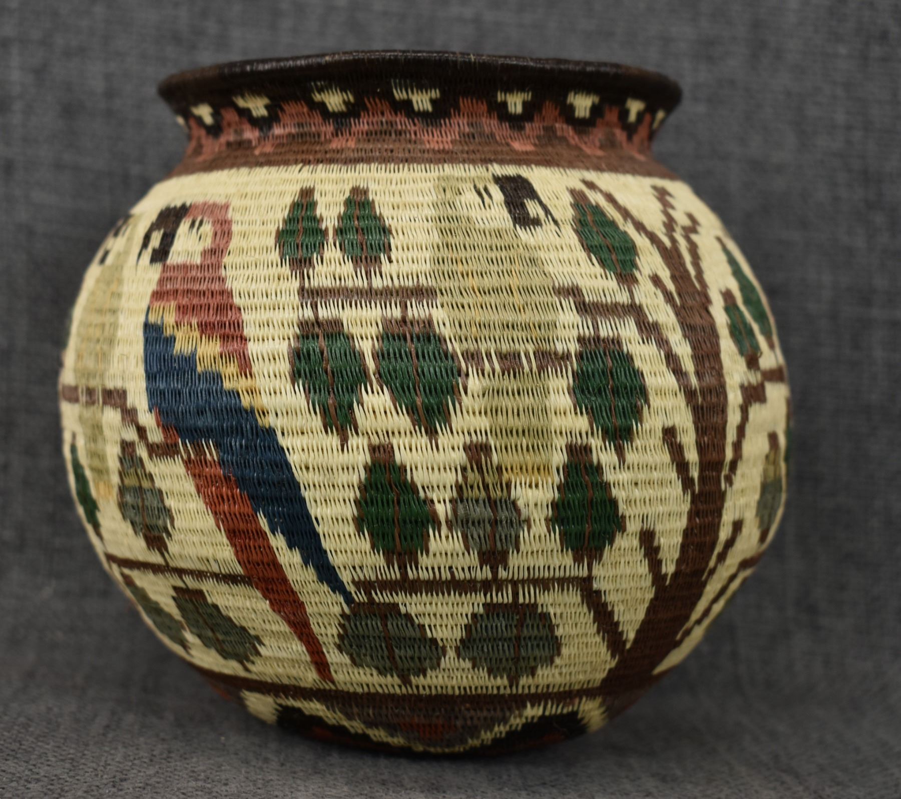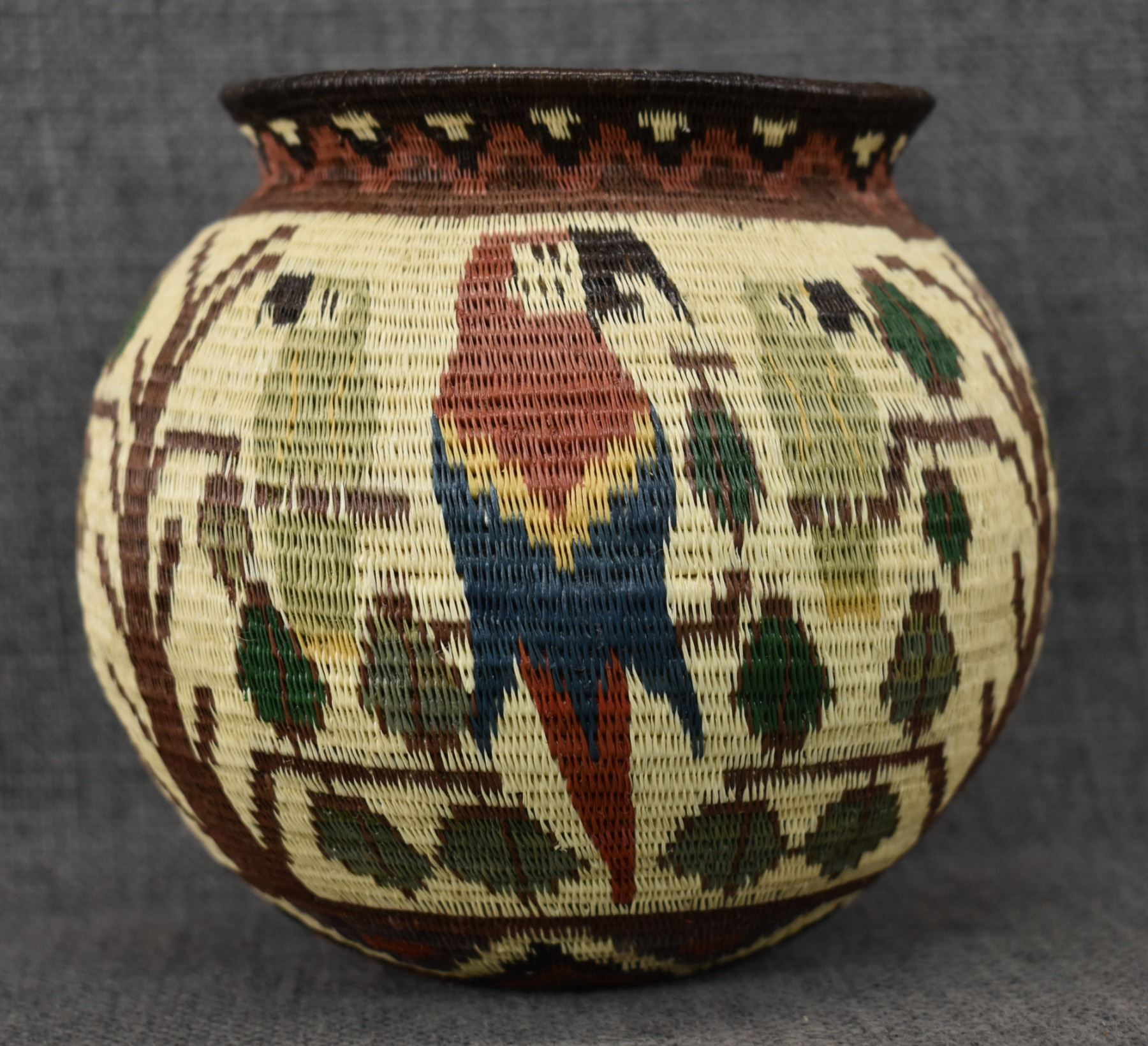 1990-2000's Wounaan rainforest, hand woven polychrome parrot design 5" x 5.25"