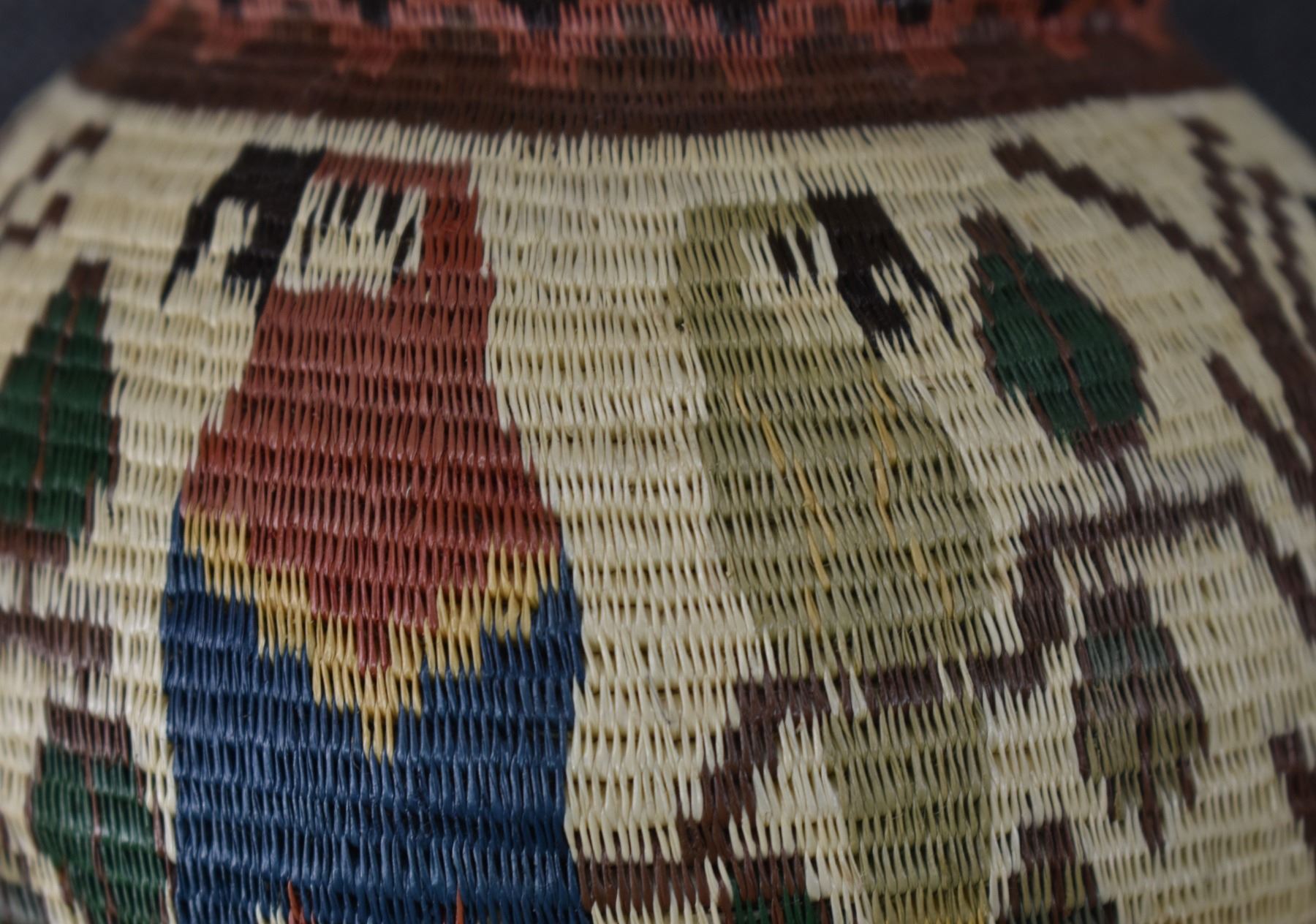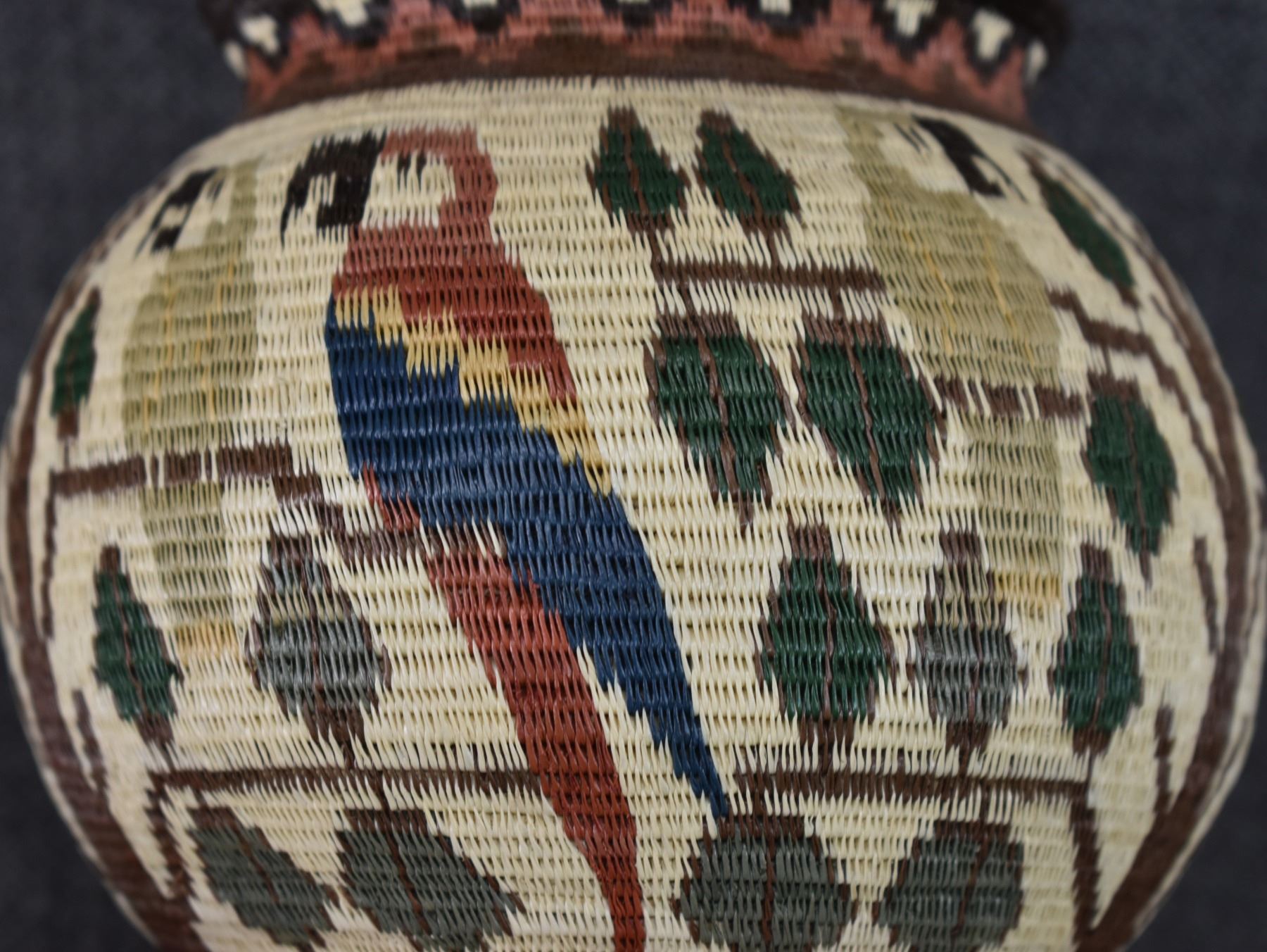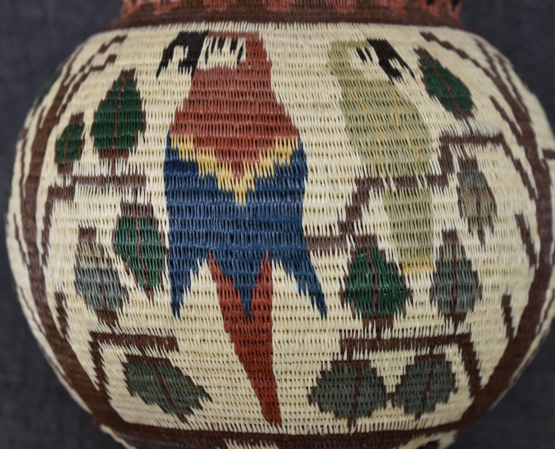 1990-2000's Wounaan rainforest, hand woven polychrome parrot design 5" x 5.25"