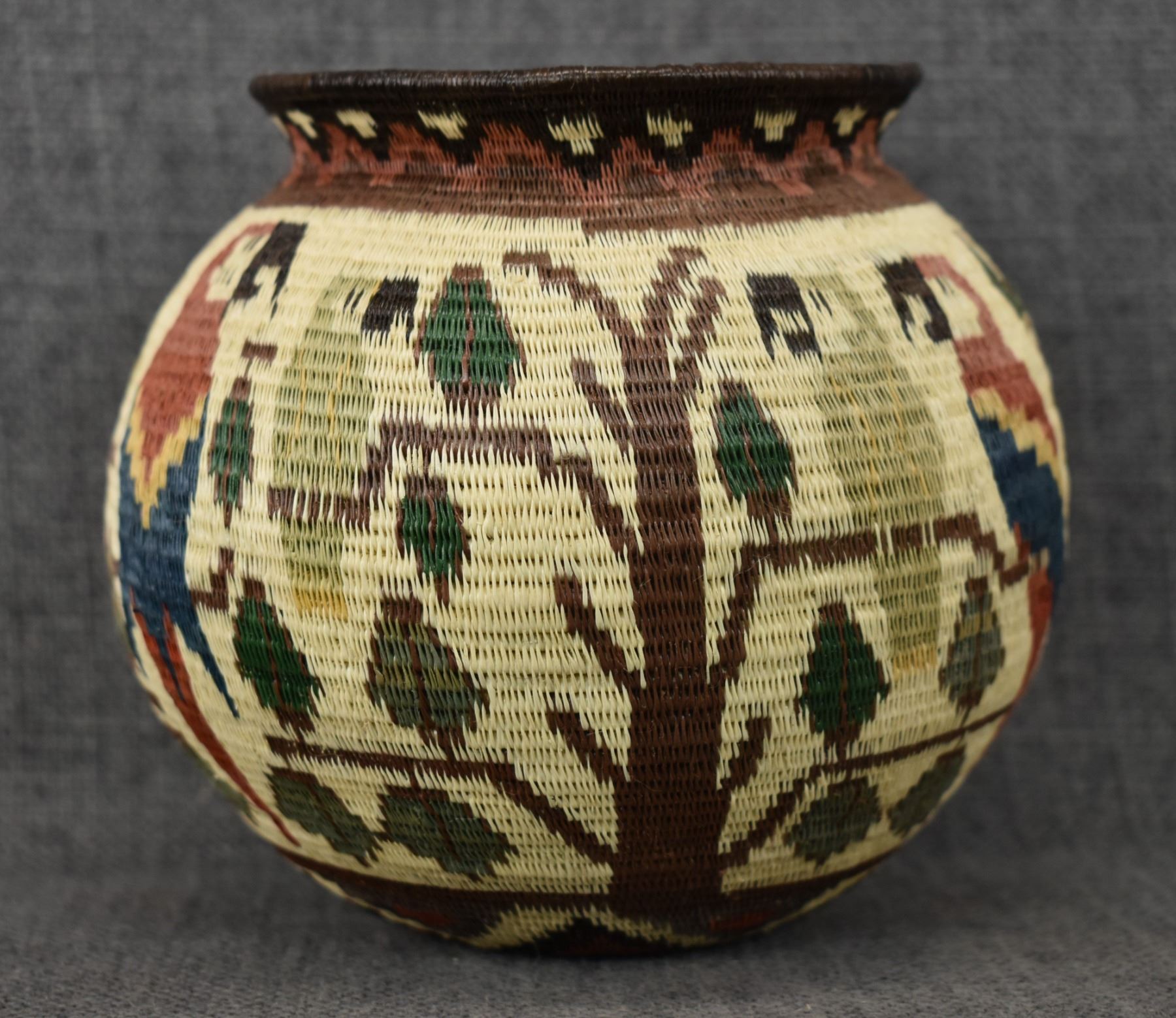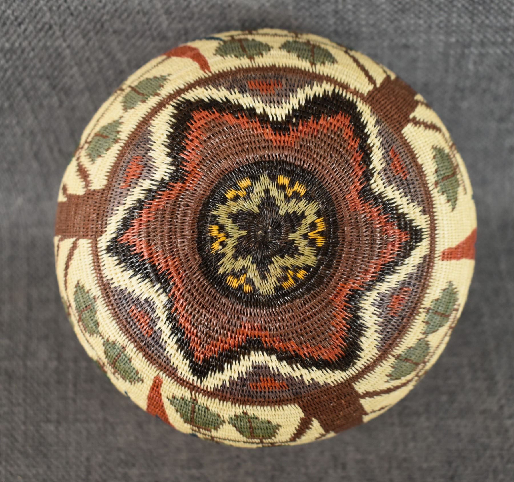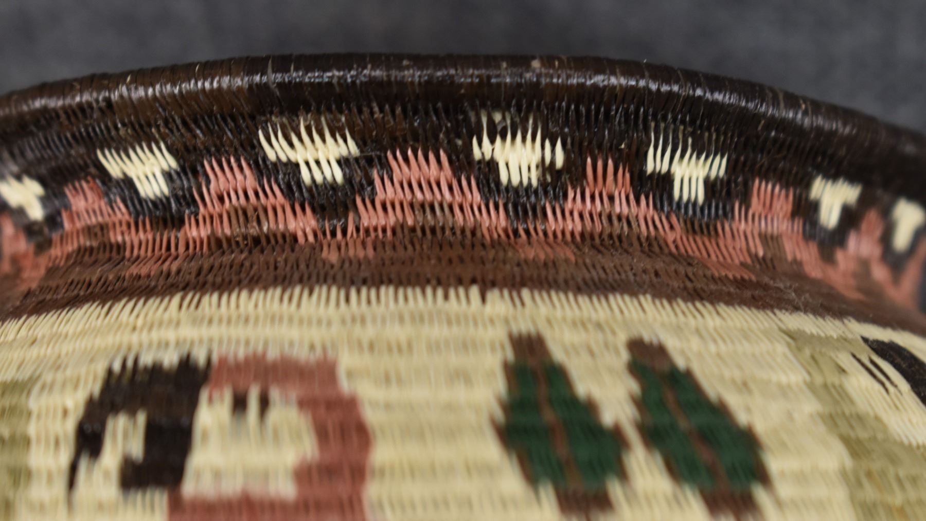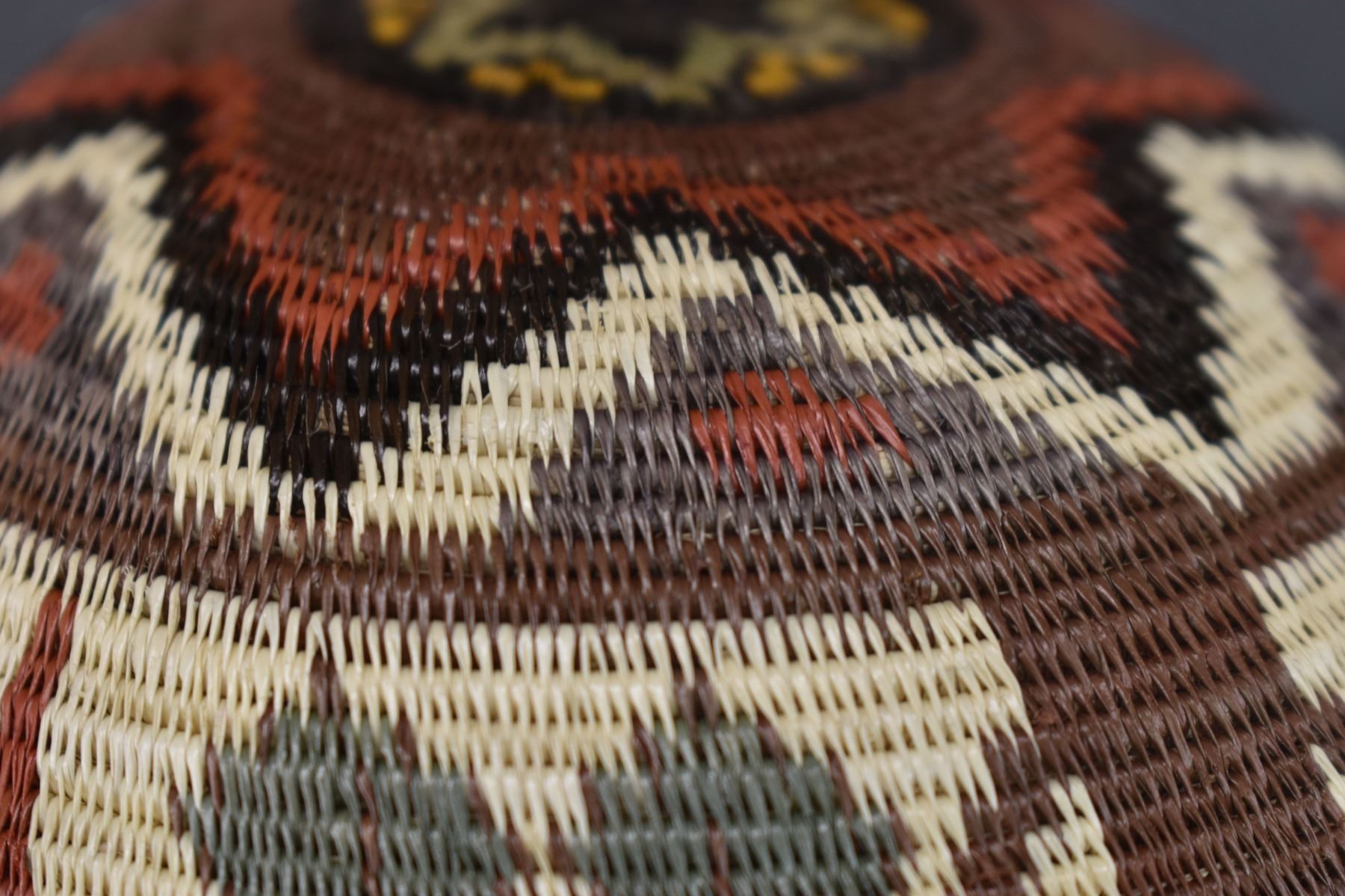 1990-2000's Wounaan rainforest, hand woven polychrome parrot design 5" x 5.25"