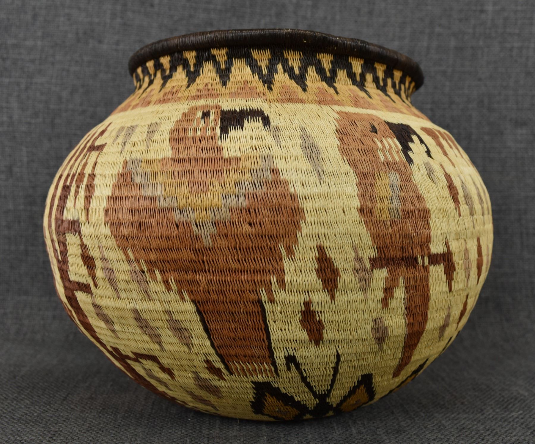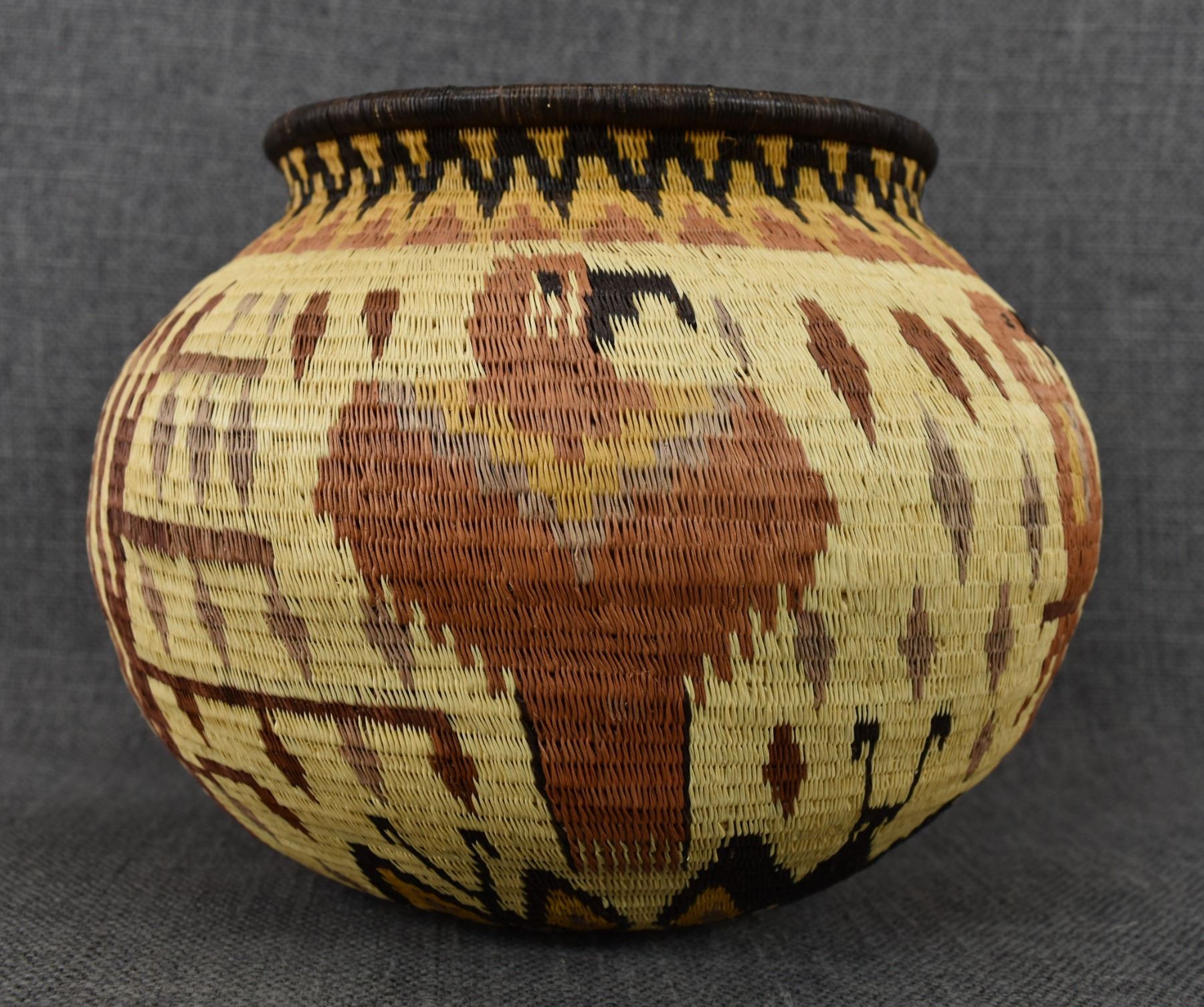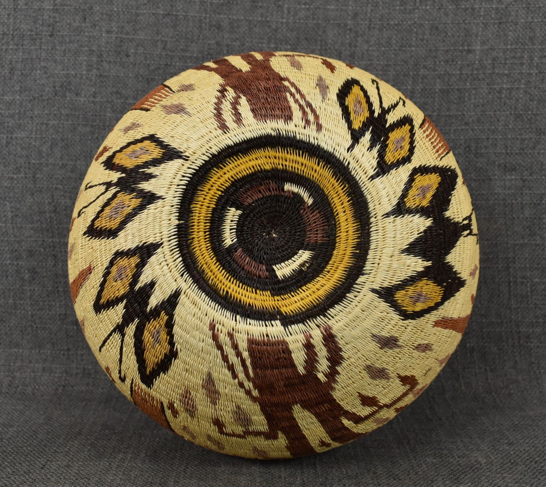 1980-90's Wounaan rainforest, hand woven polychrome parrot, butterfly and floral design 6.75" x 8.5"