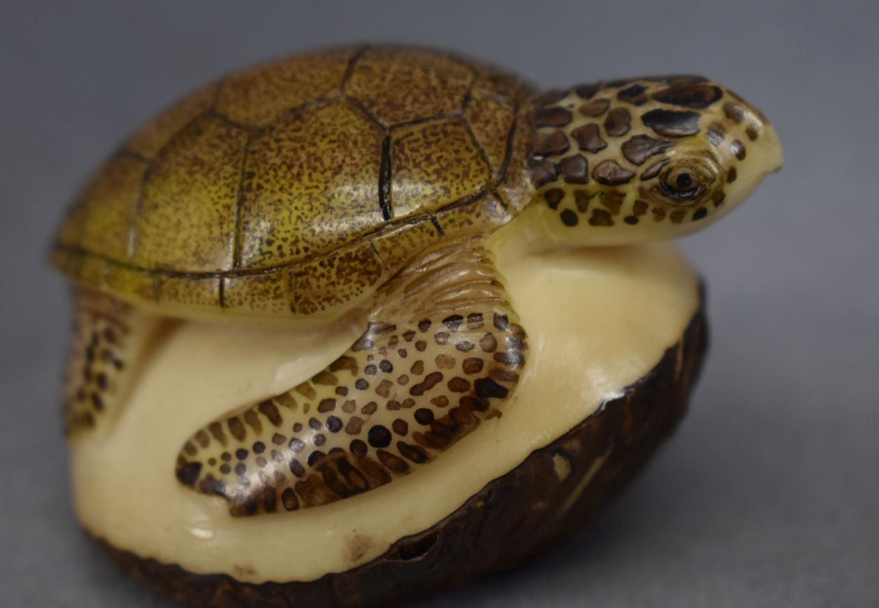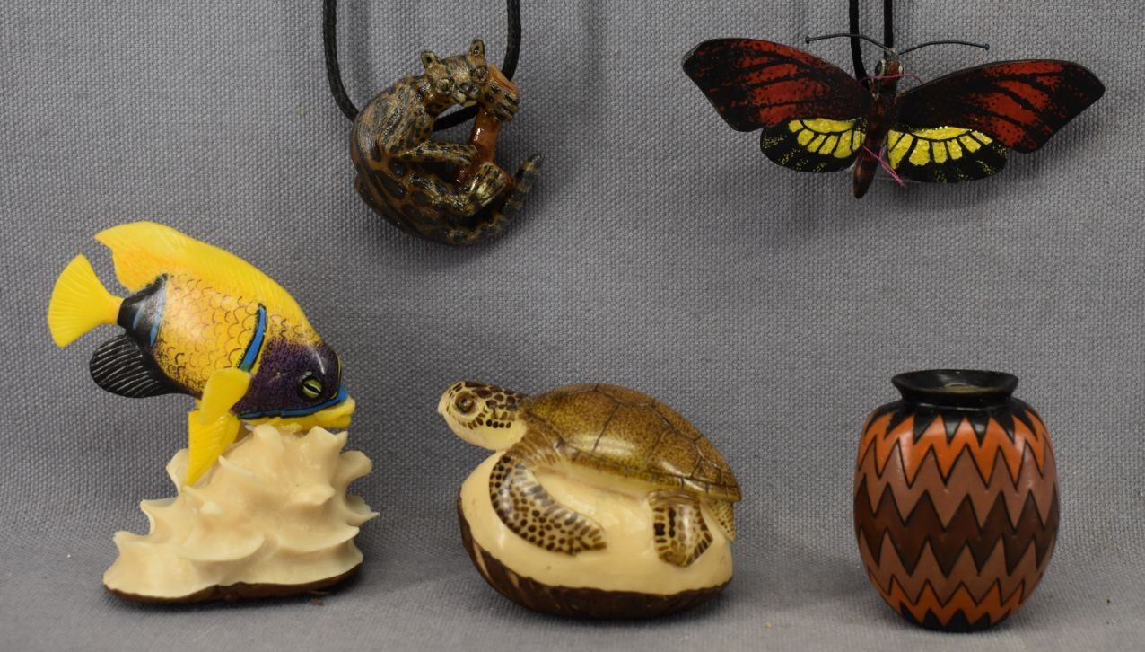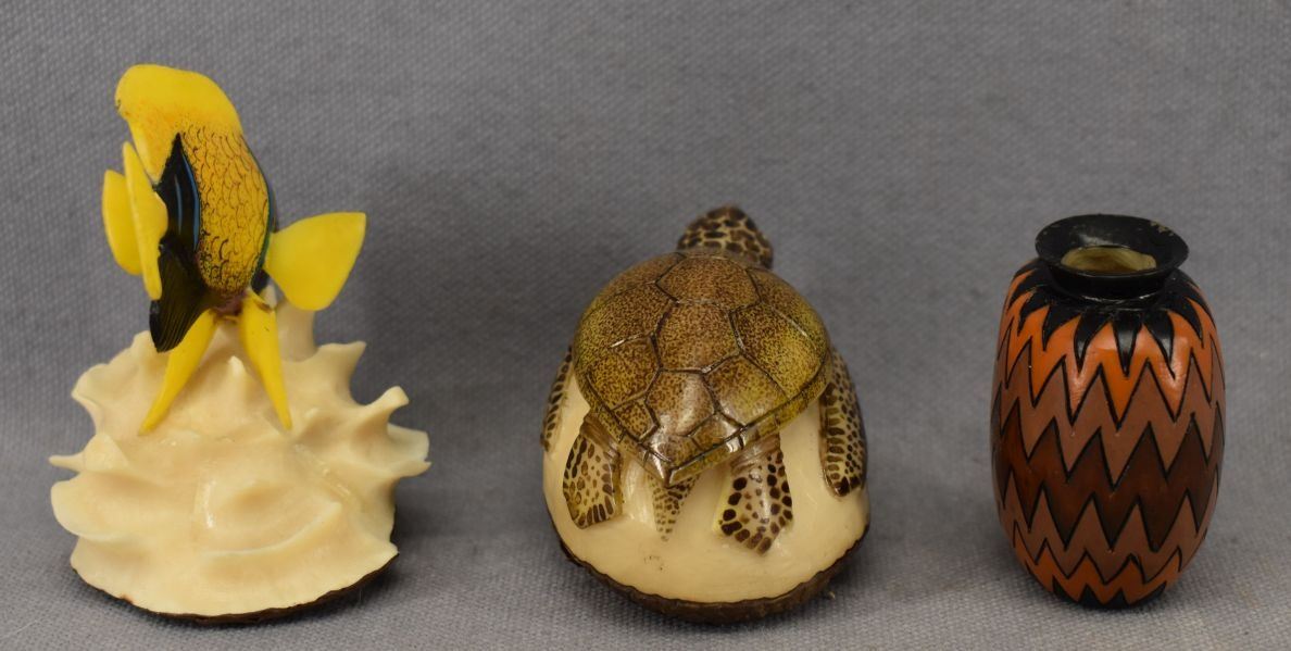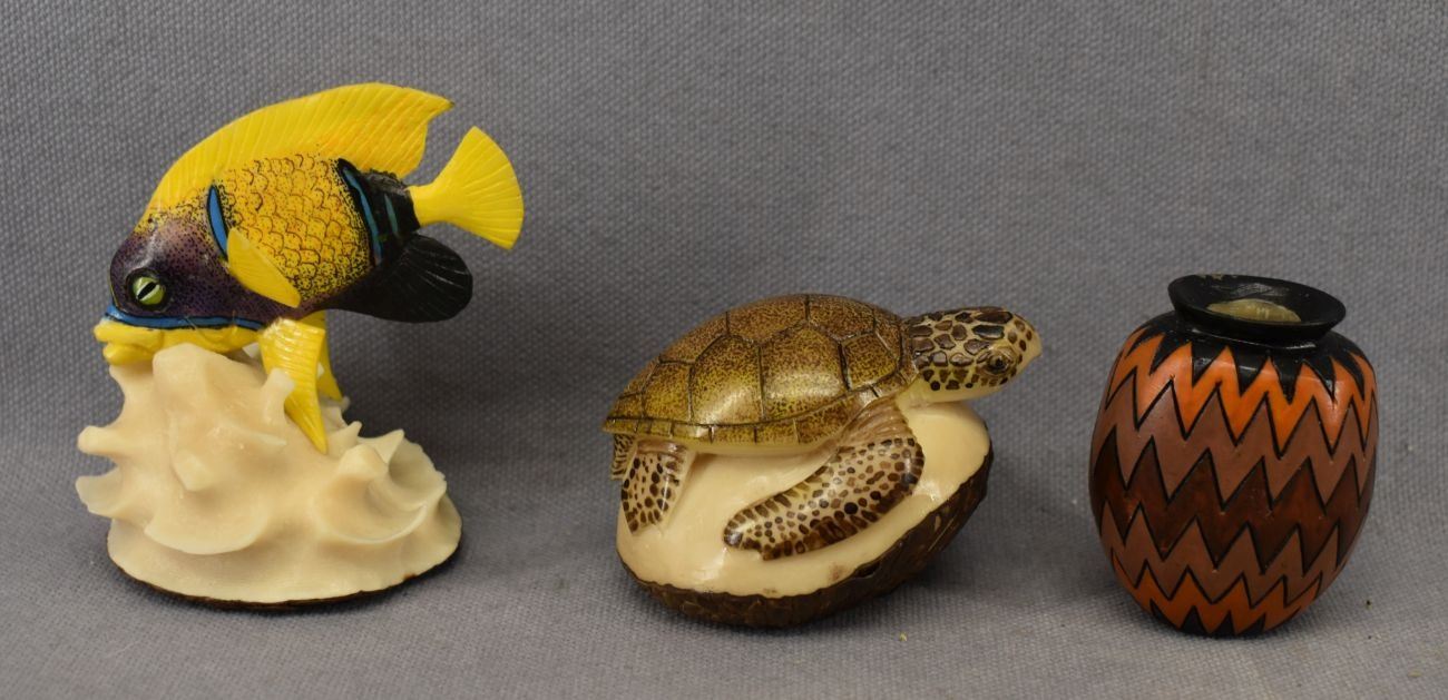 vintage hand carved tunga nuts by different artist. Largest is 3'' x 2.5'' The tagua nut is a dried seed also known as natural ivory or vegetable ivory,