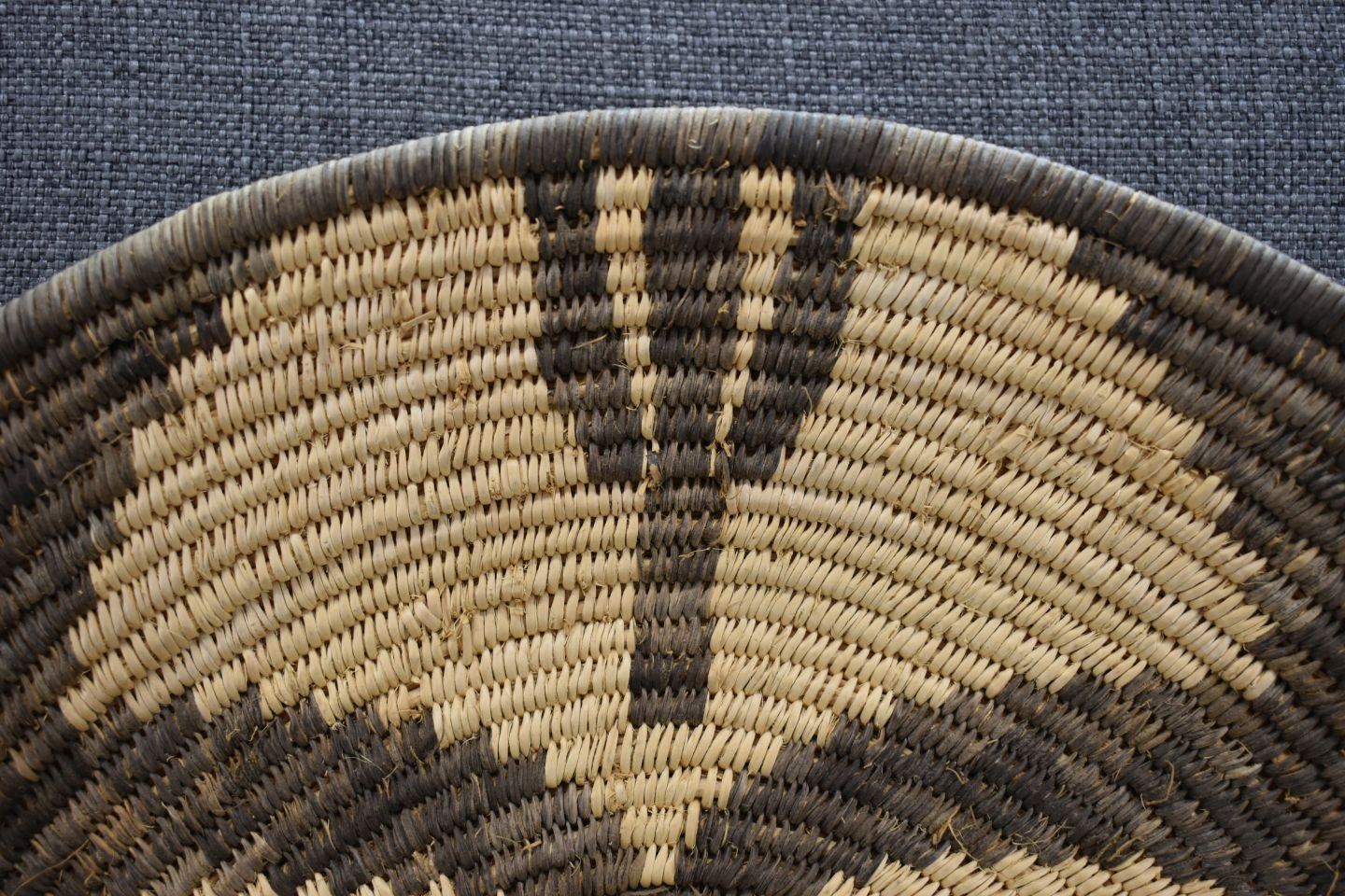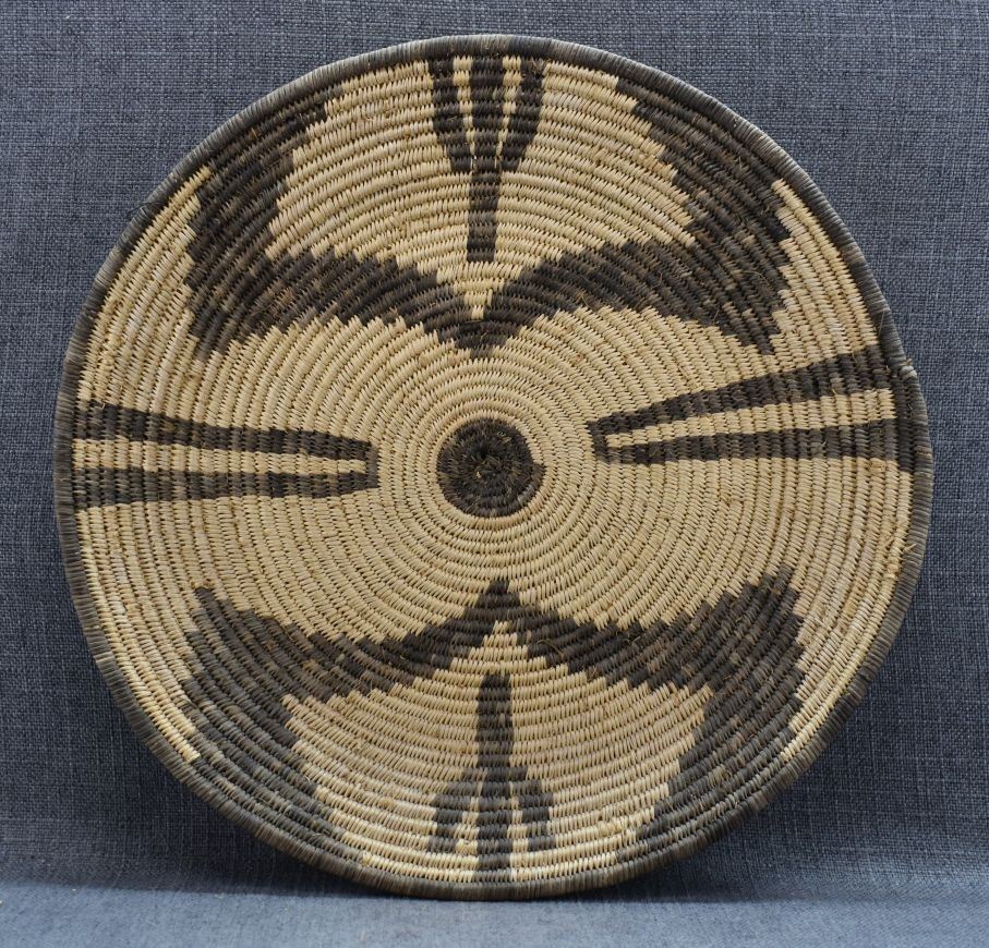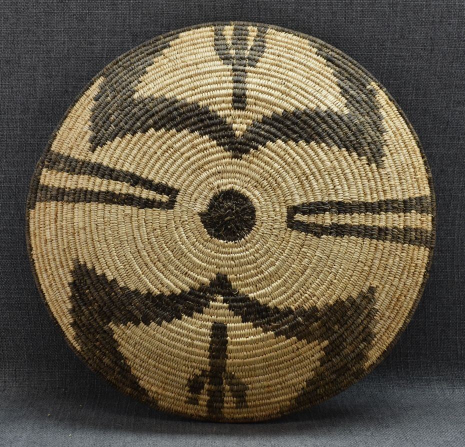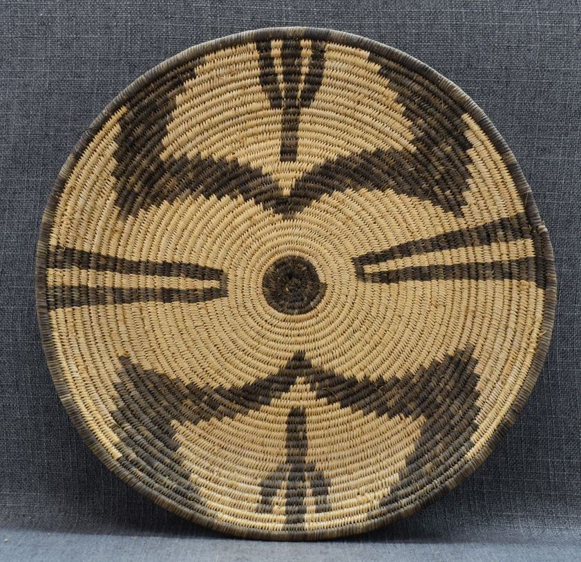 1960's Yavapai Apache. Hand woven design basketry bowl. 1.5'' x 15''
