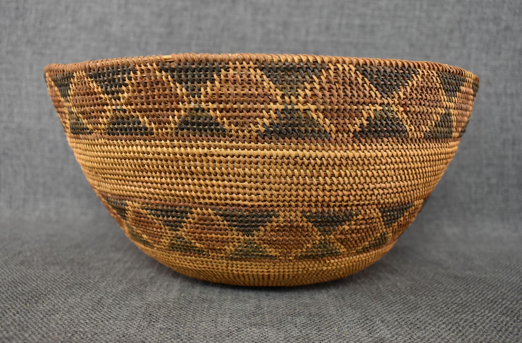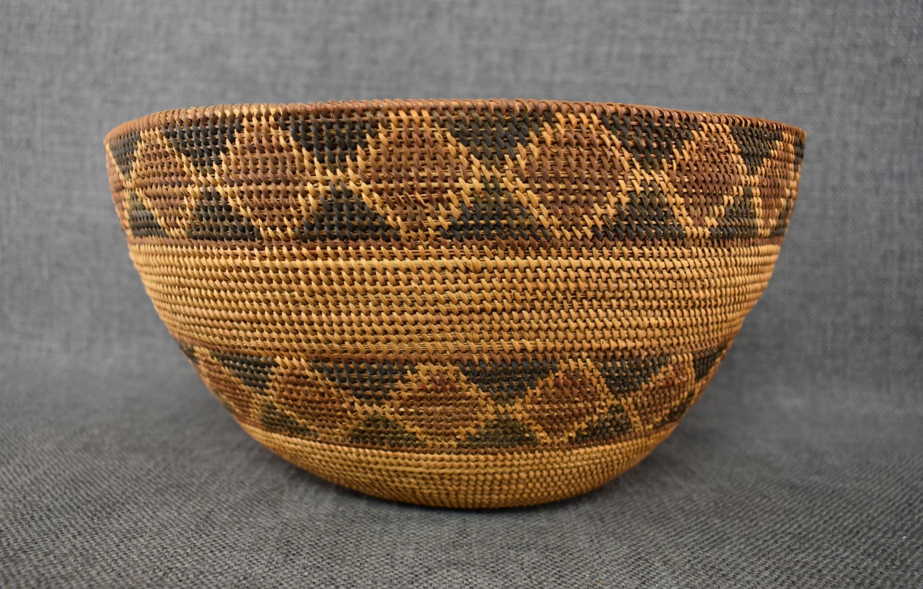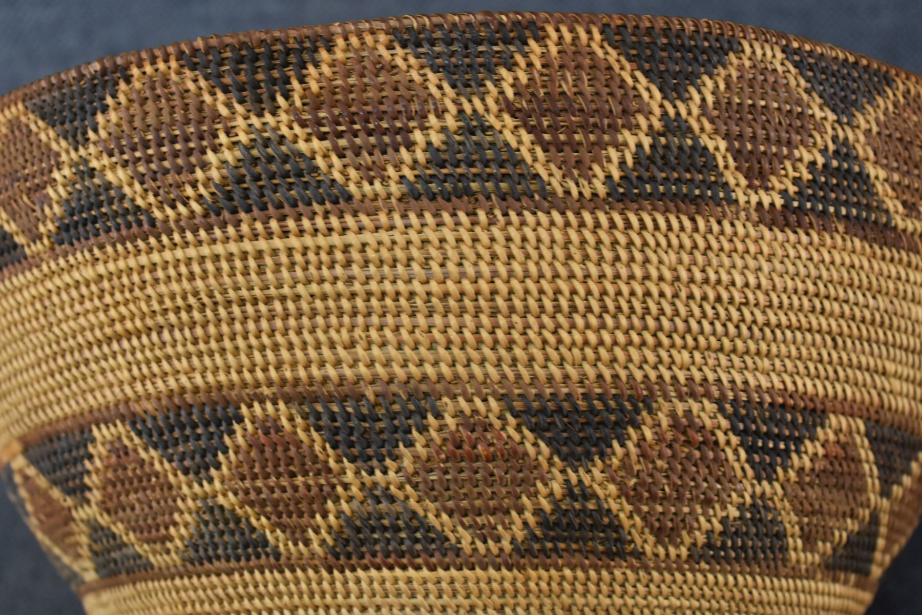1900's Yokuts, hand woven polychrome banded rattlesnake design 5" x 11"