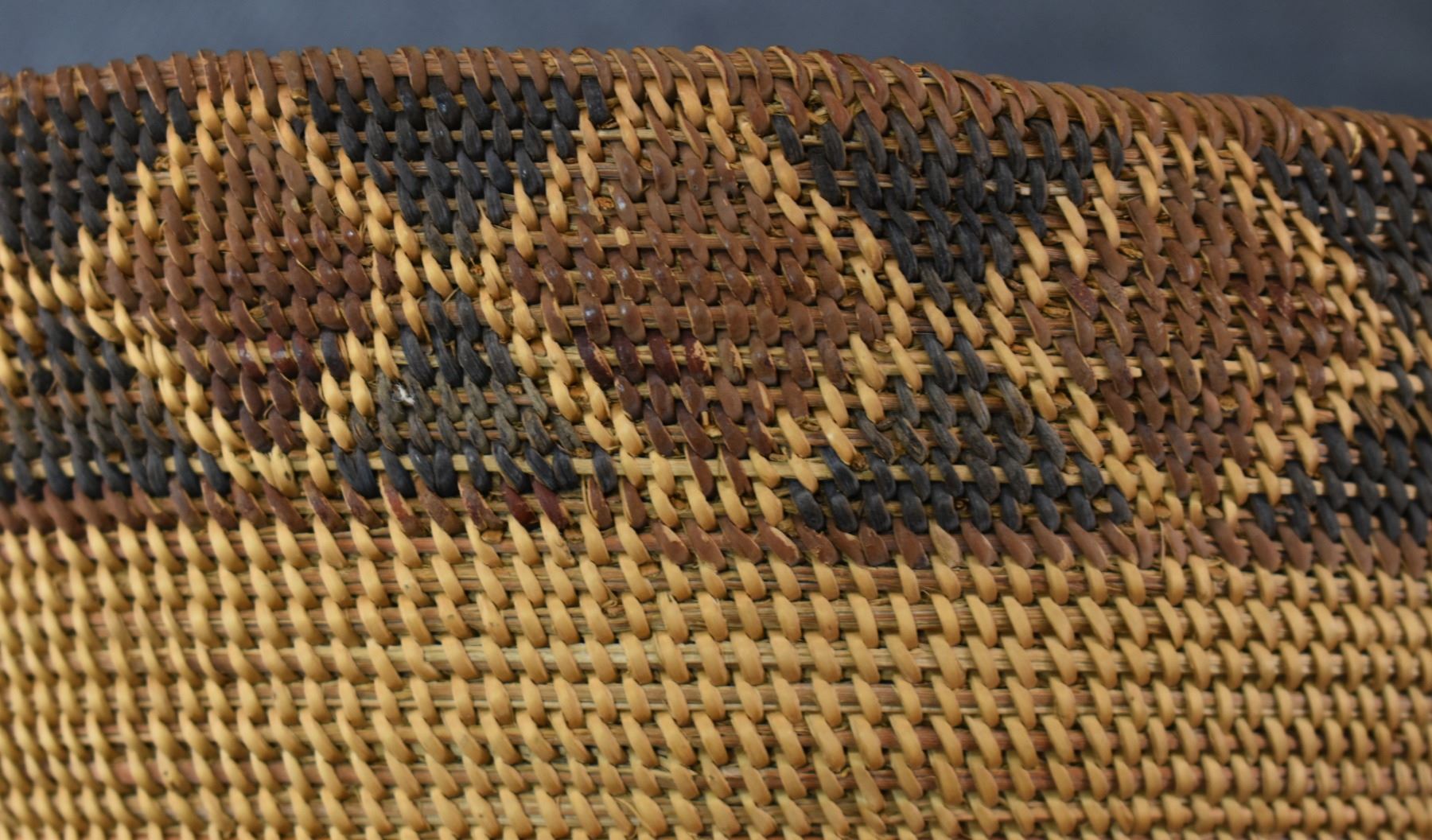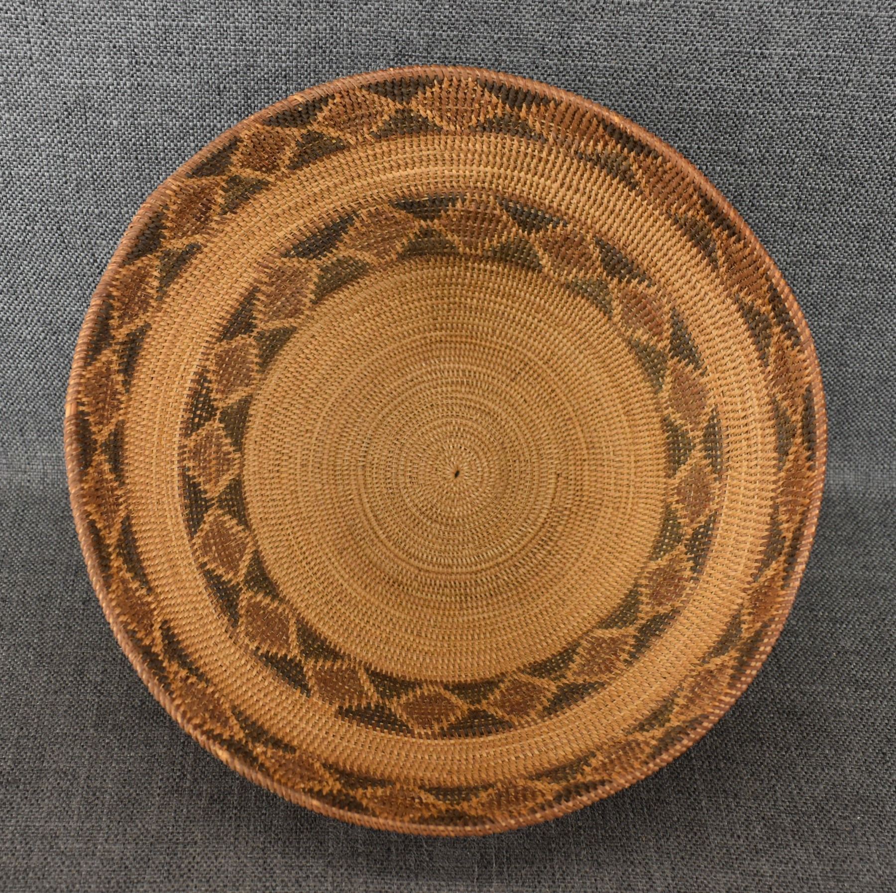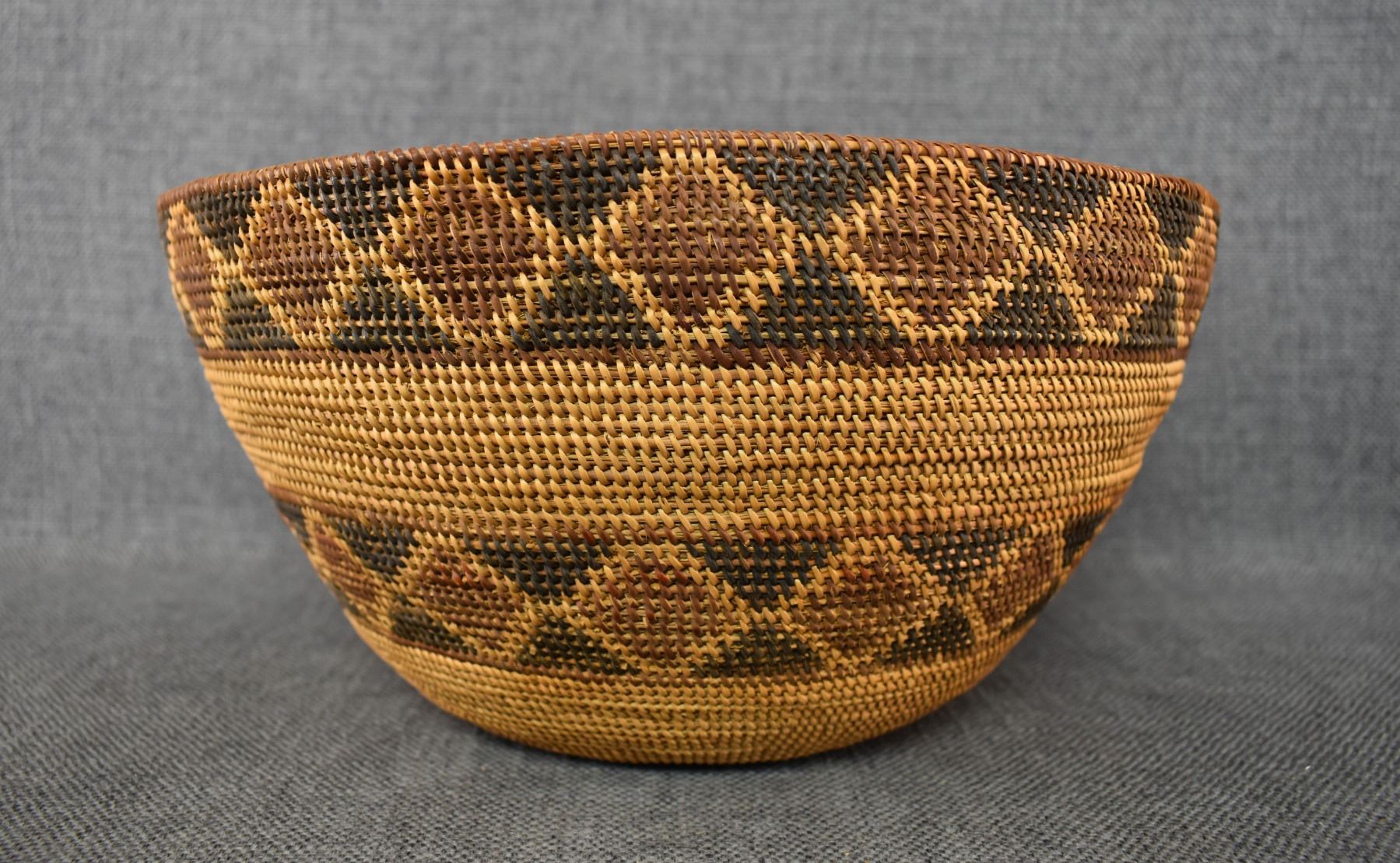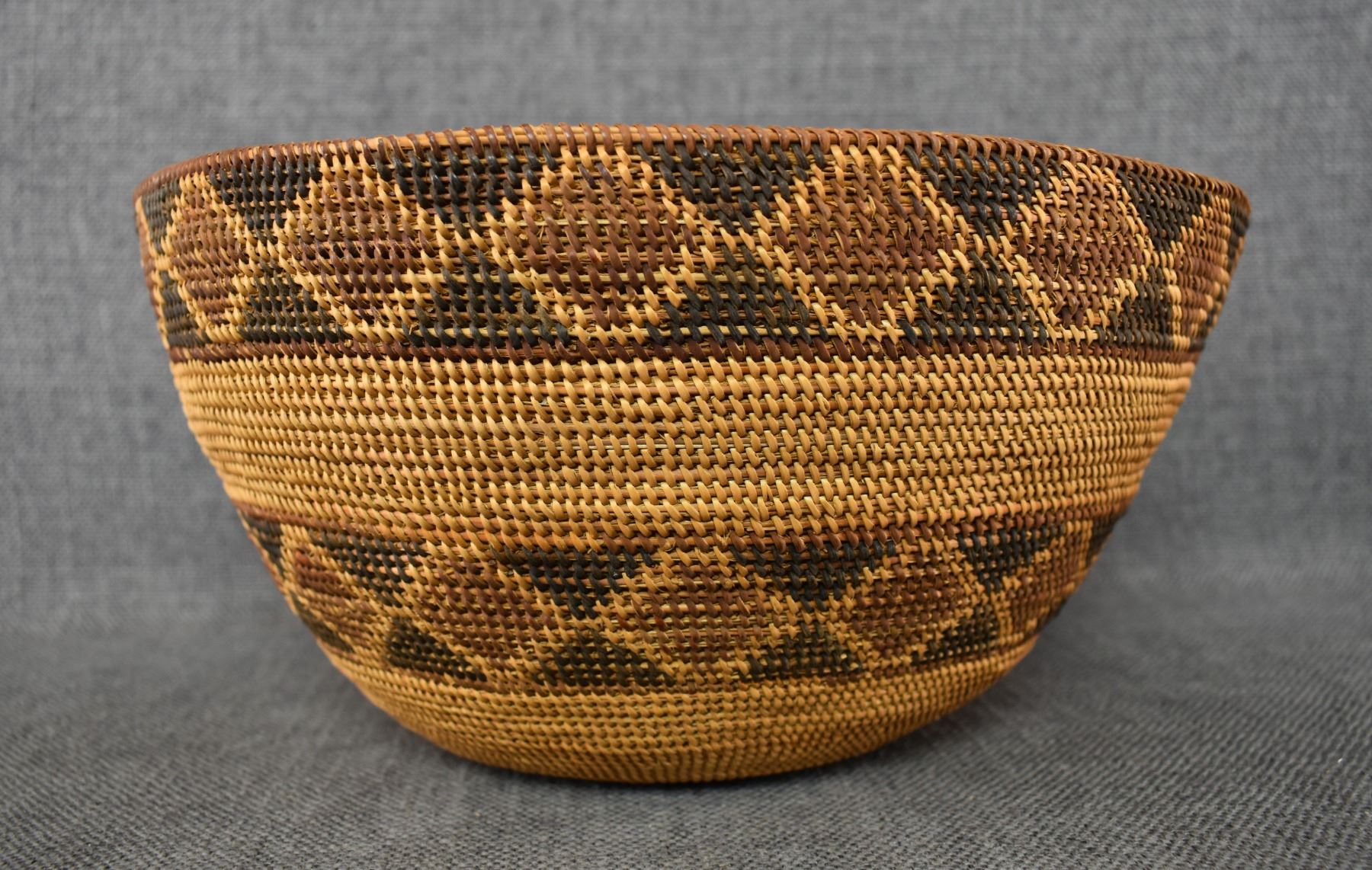1900's Yokuts, hand woven polychrome banded rattlesnake design 5" x 11"