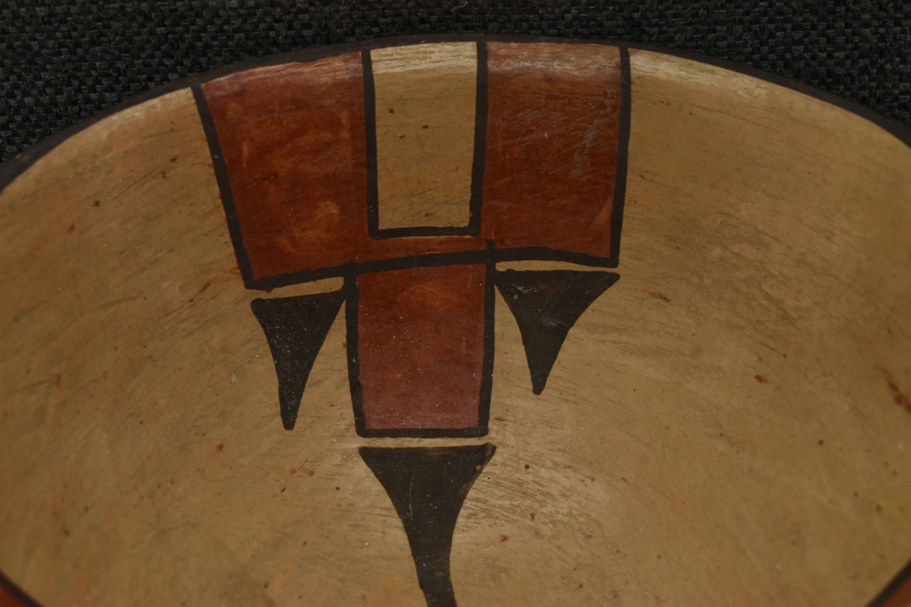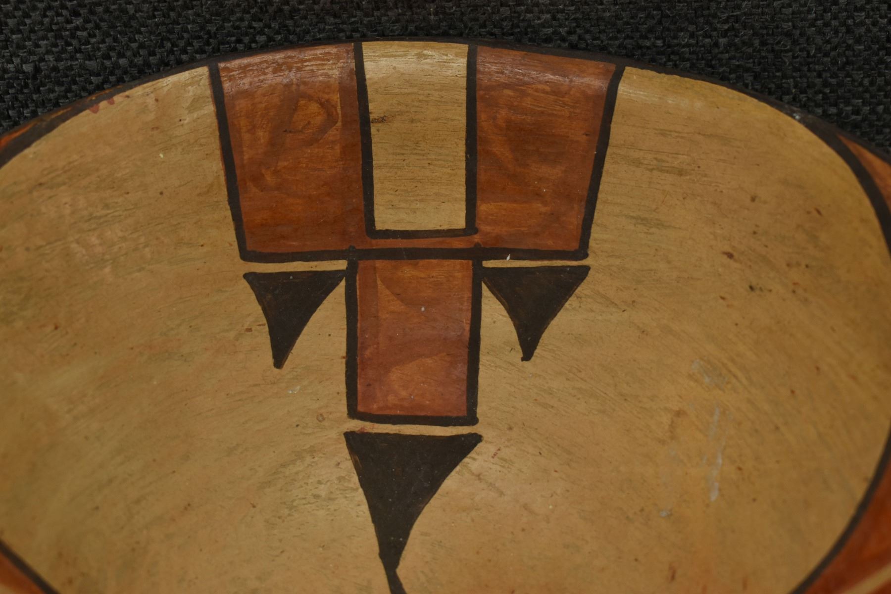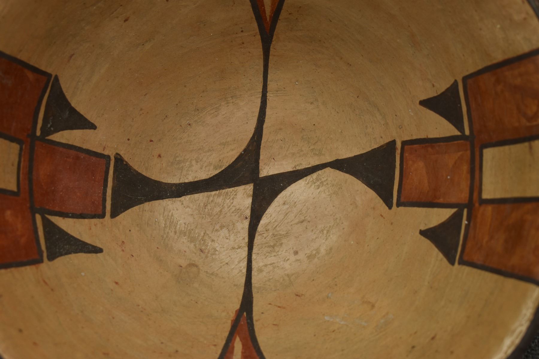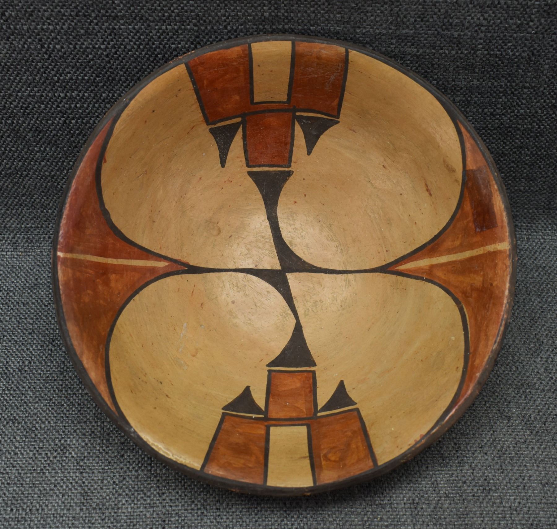 1950's Zia, Hand coiled and painted geometric polychrome design pottery bowl. 2.75'' x 8''